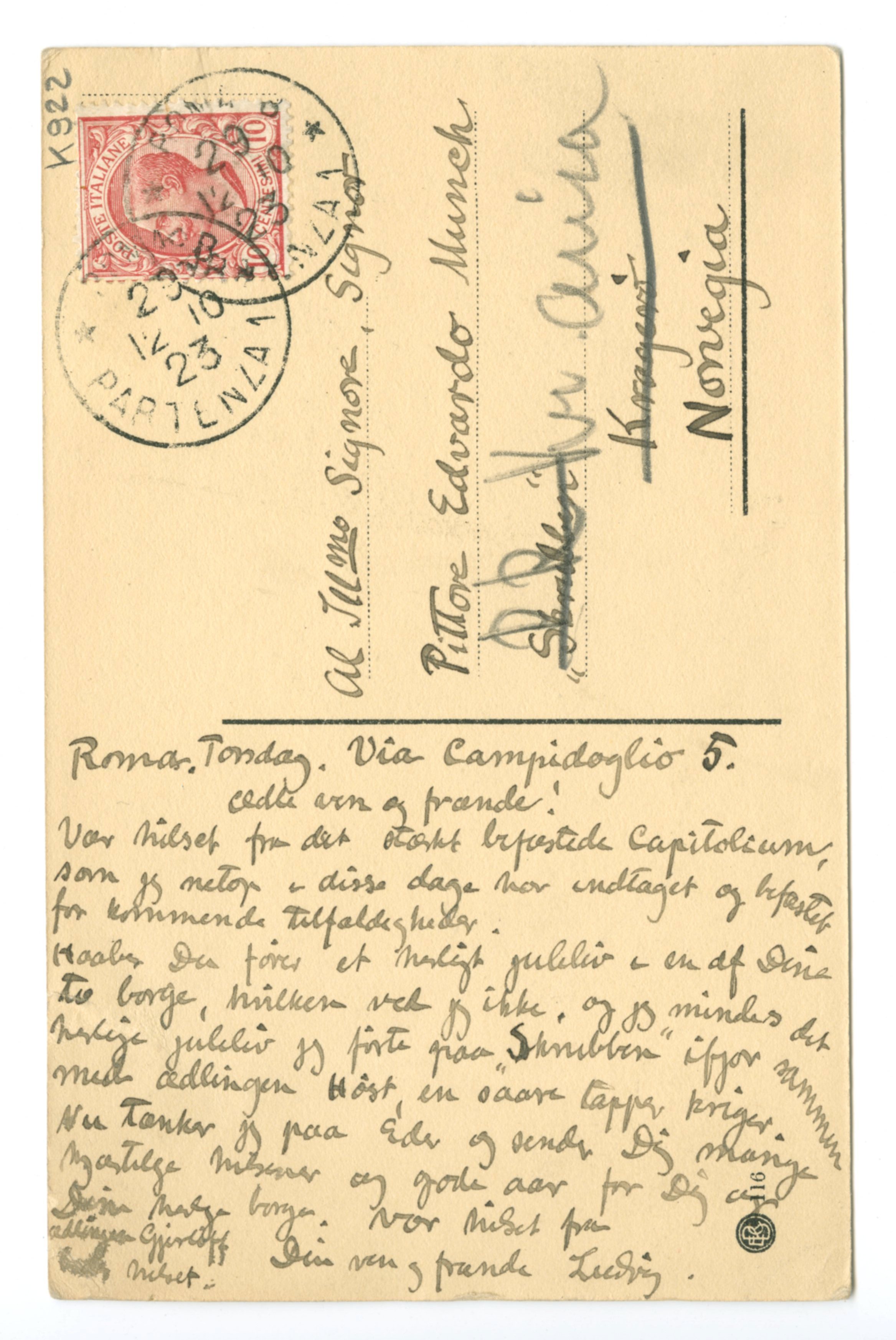 MM K 922, Munchmuseet. Datert 29.12.1910. Brev fra Ludvig Ravensberg.