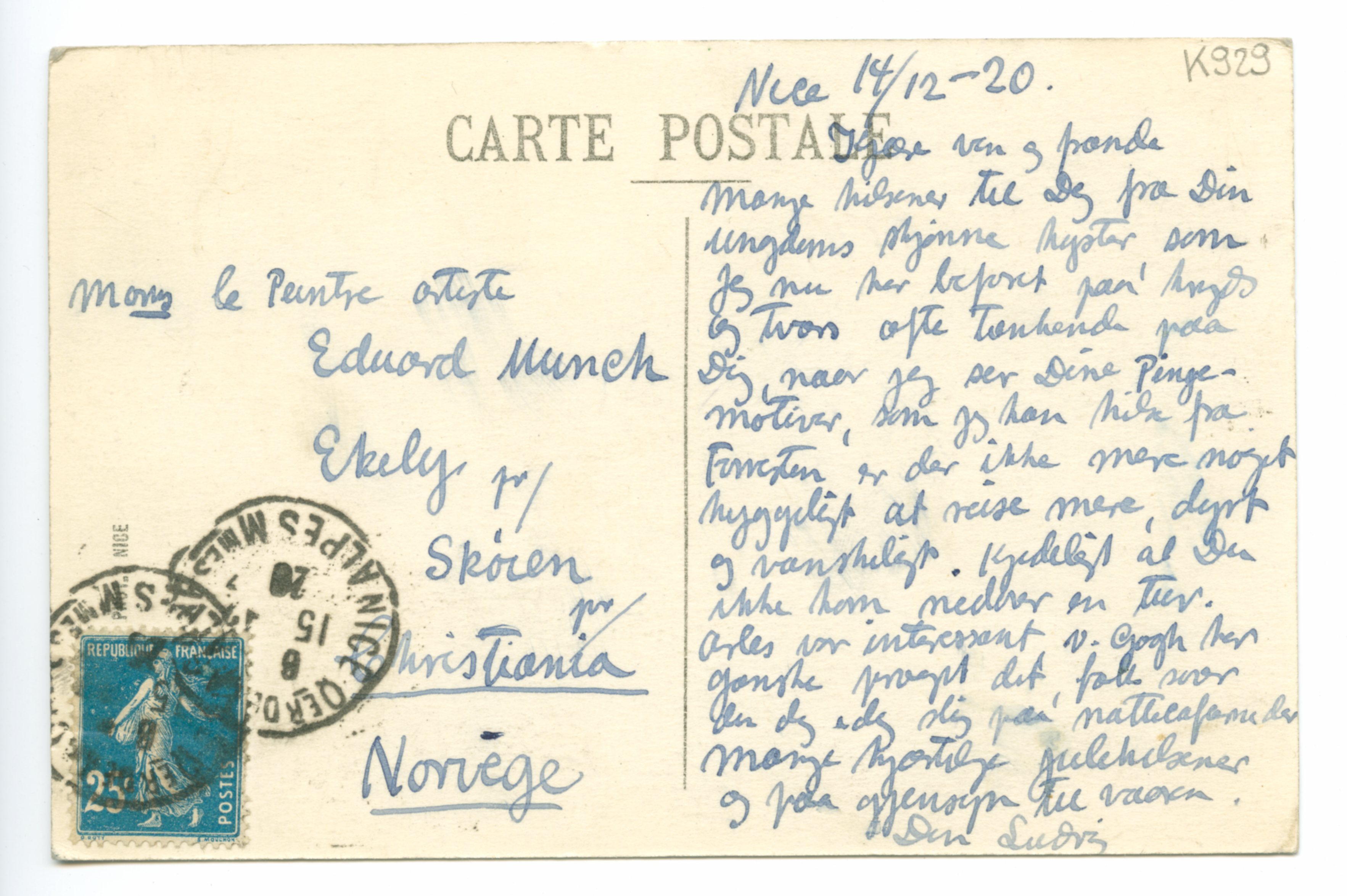 MM K 929, Munchmuseet. Datert 14.12.1920. Brev fra Ludvig Ravensberg.