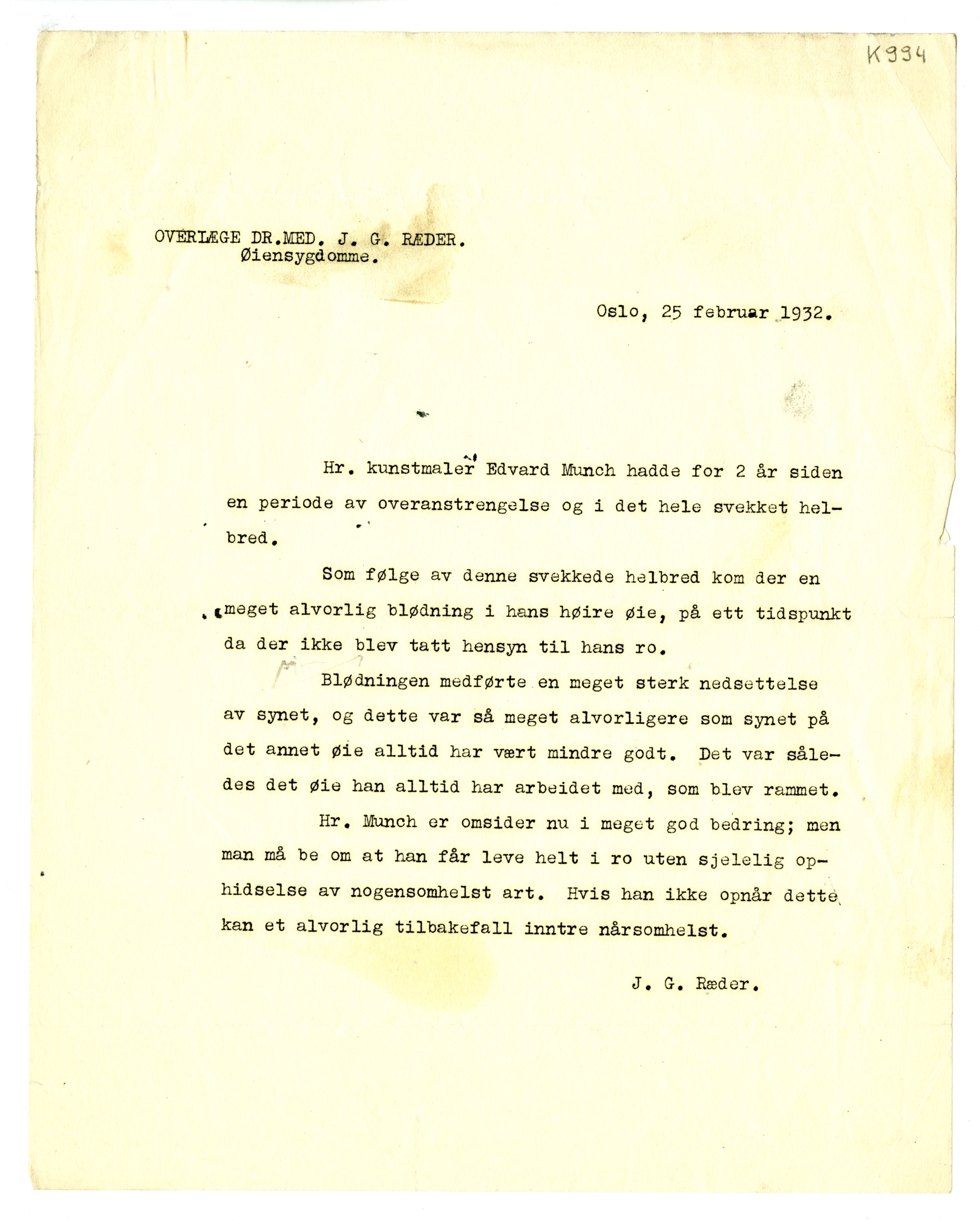MM K 994, Munchmuseet. Datert 25.02.1932. Brev fra Johan Ræder.