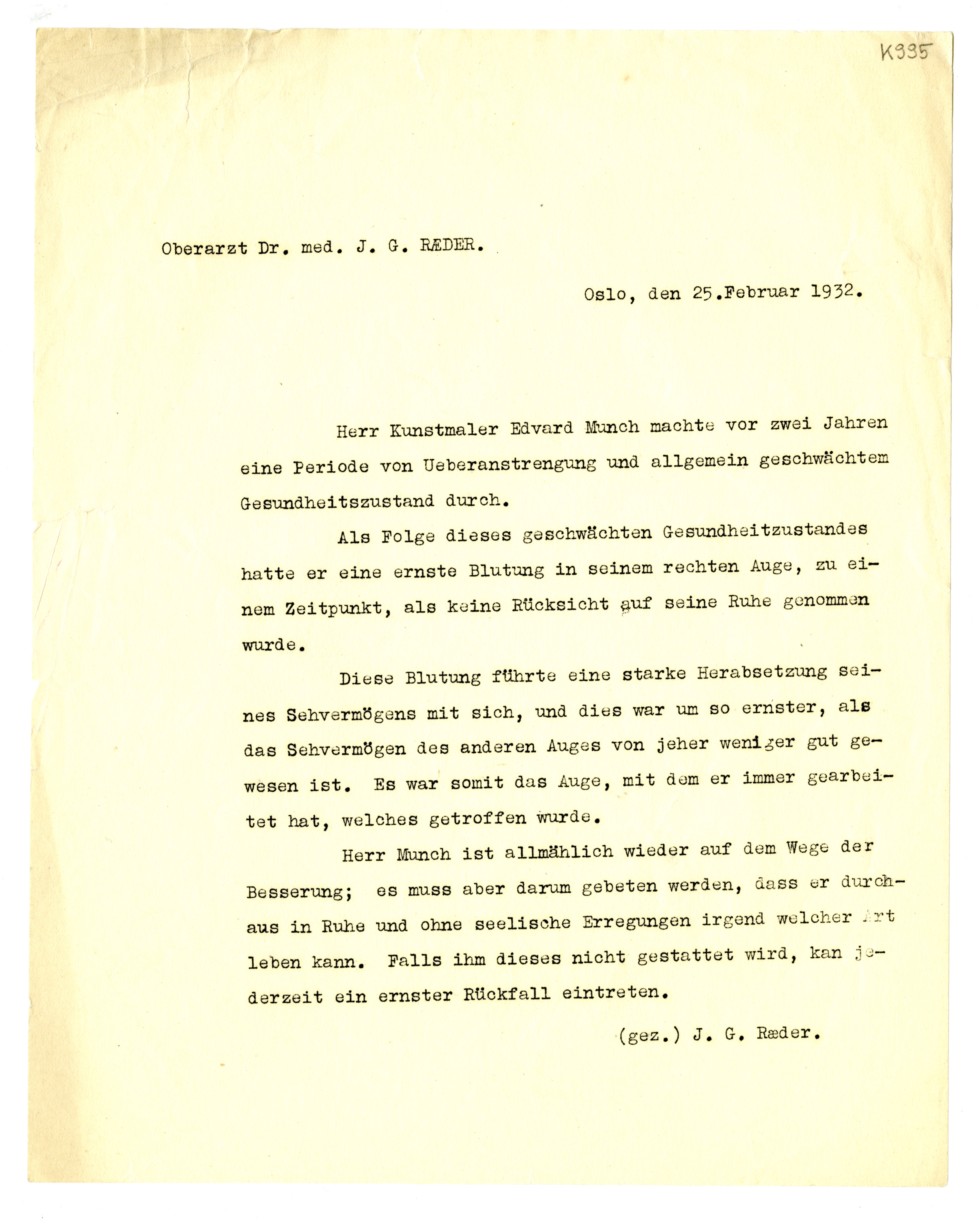 MM K 995, Munchmuseet. Datert 25.02.1932. Brev fra Johan Ræder.