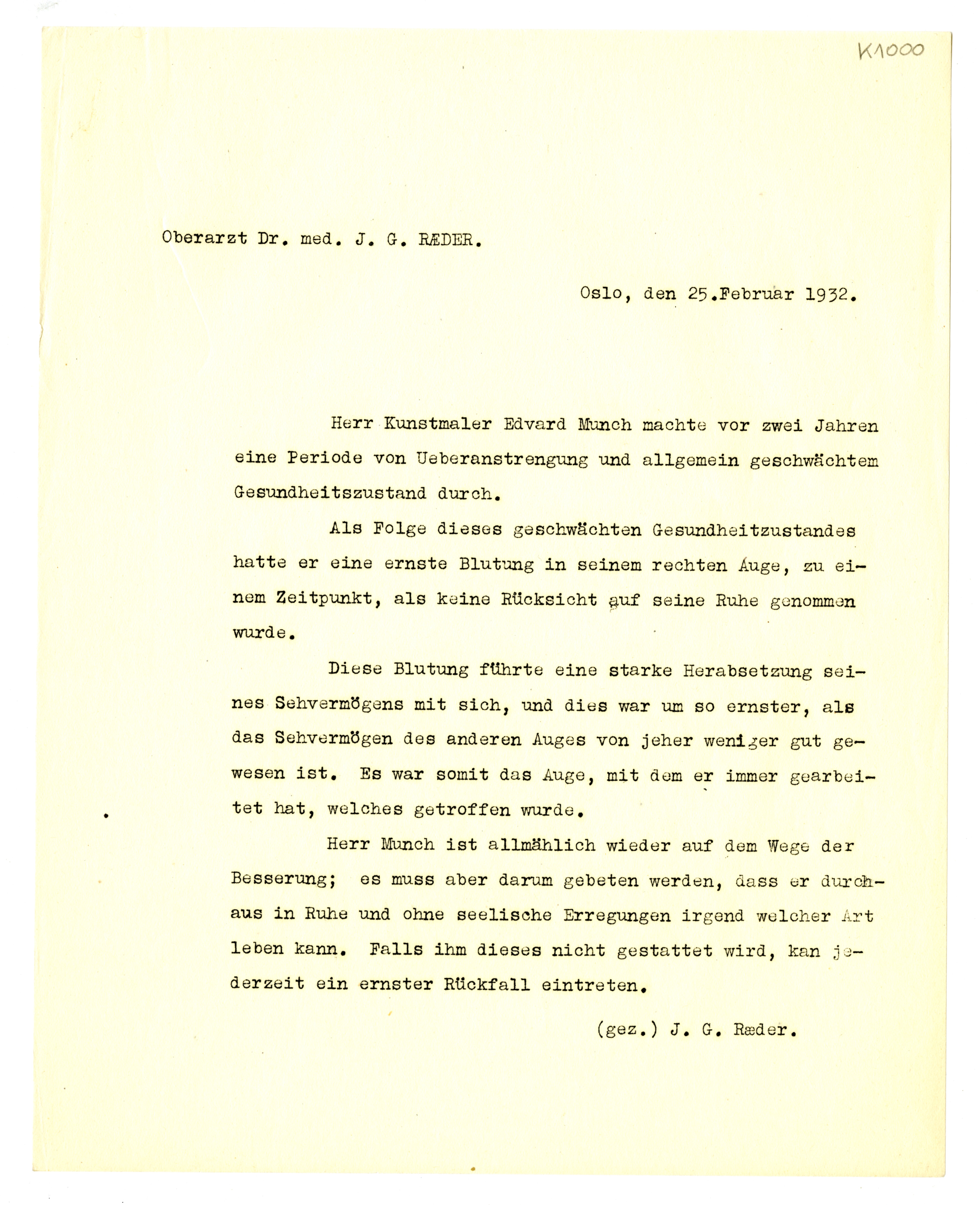 MM K 1000, Munchmuseet. Datert 25.02.1932. Brev fra Johan Ræder.