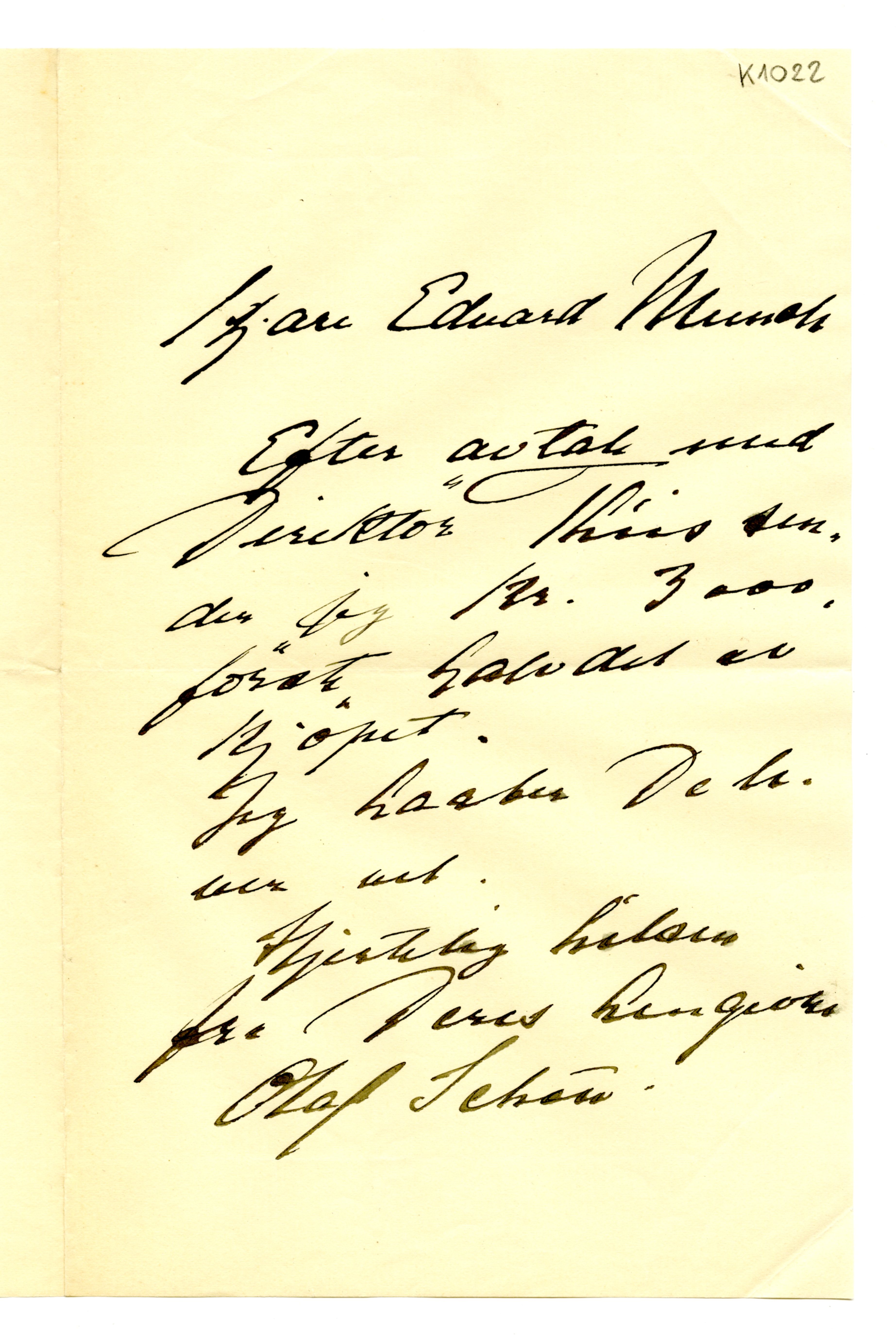 MM K 1022, Munchmuseet. Ikke datert. Brev fra Olaf Schou.
