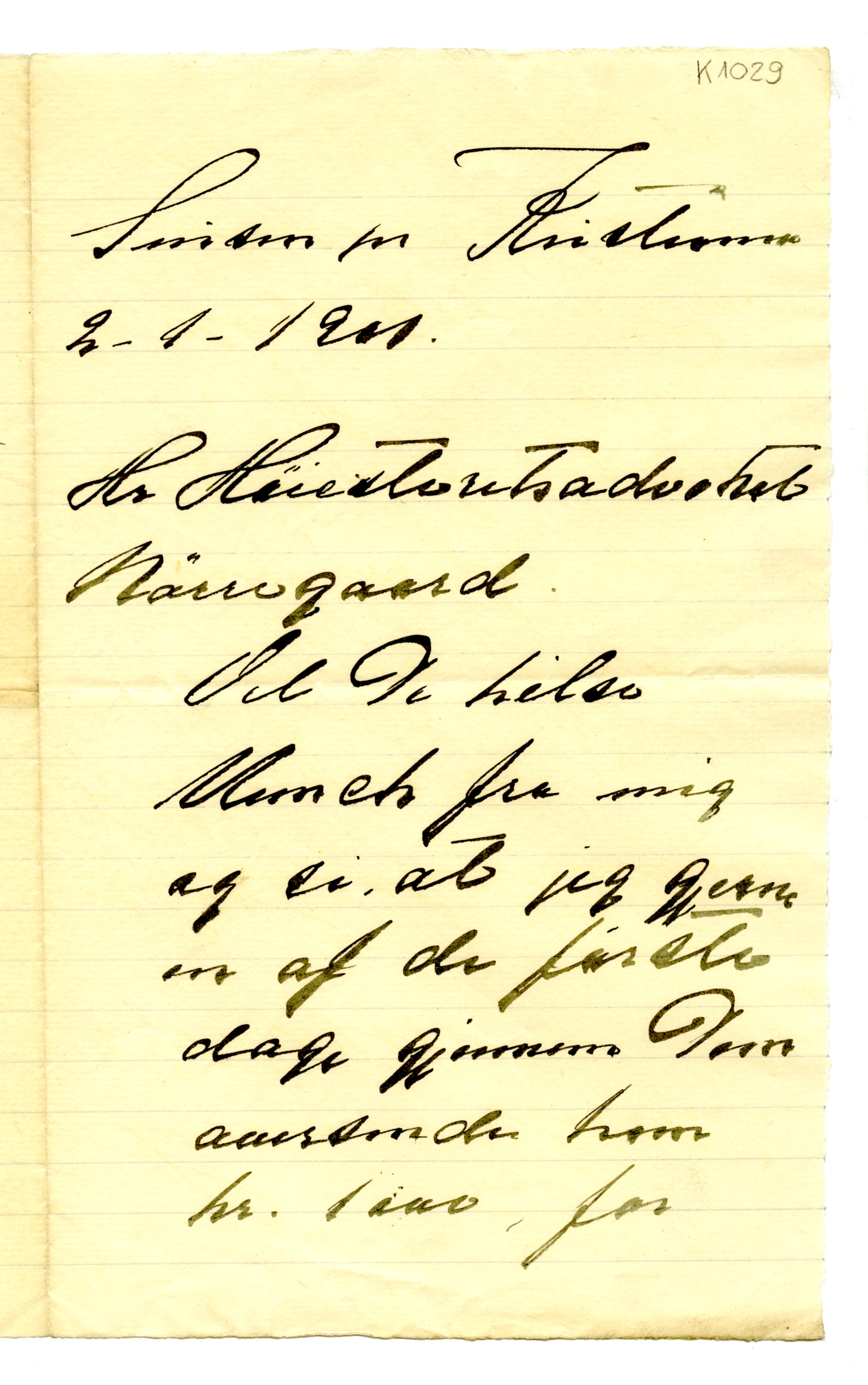 MM K 1029, Munchmuseet. Datert 02.01.1900. Brev fra Olaf Schou, Olaf Schou.