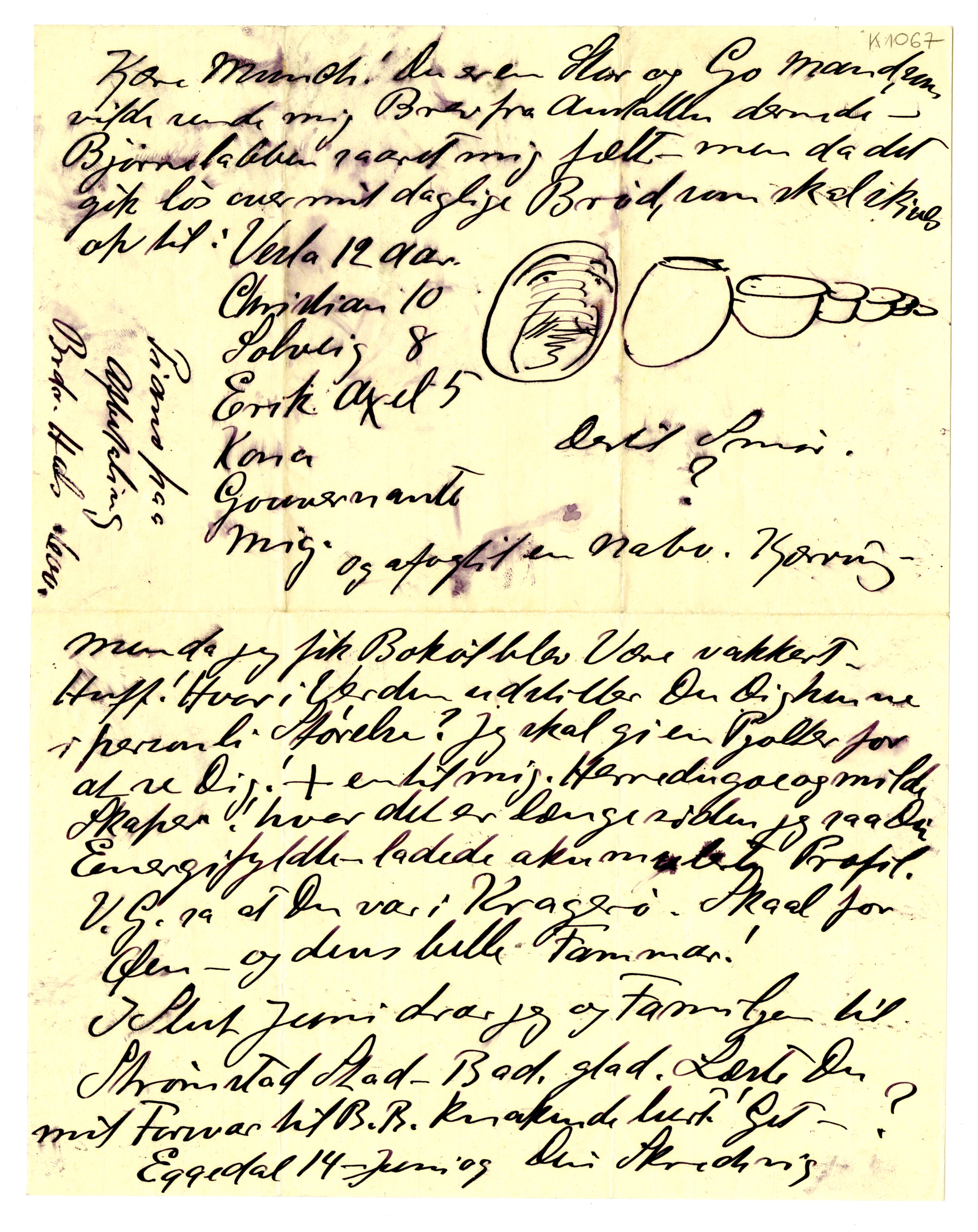 MM K 1067, Munchmuseet. Datert 14.06.1909. Brev fra Christian Skredsvig.