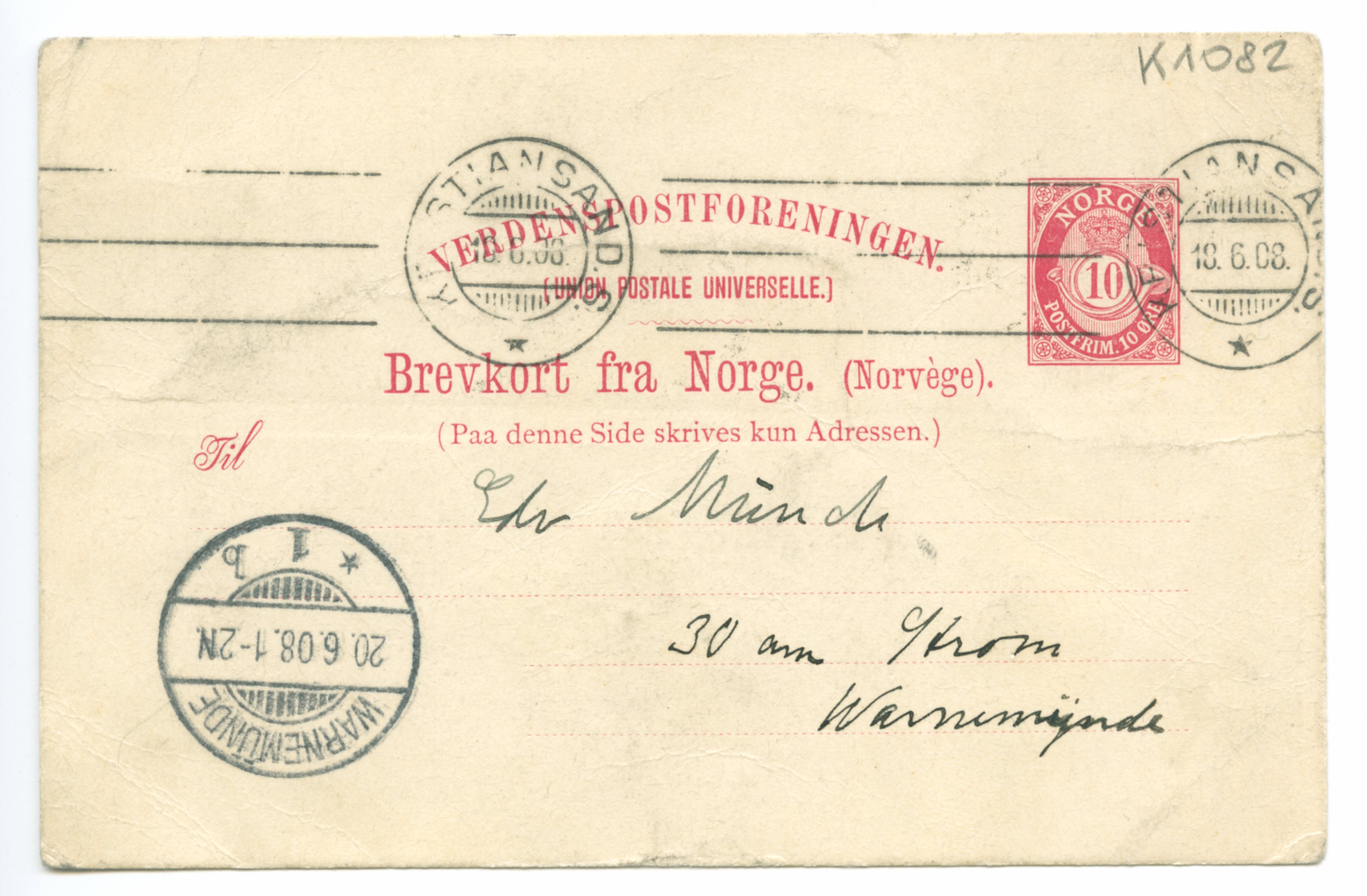 MM K 1082, Munchmuseet. Datert 18.06.1908. Brev fra Torvald Stang.