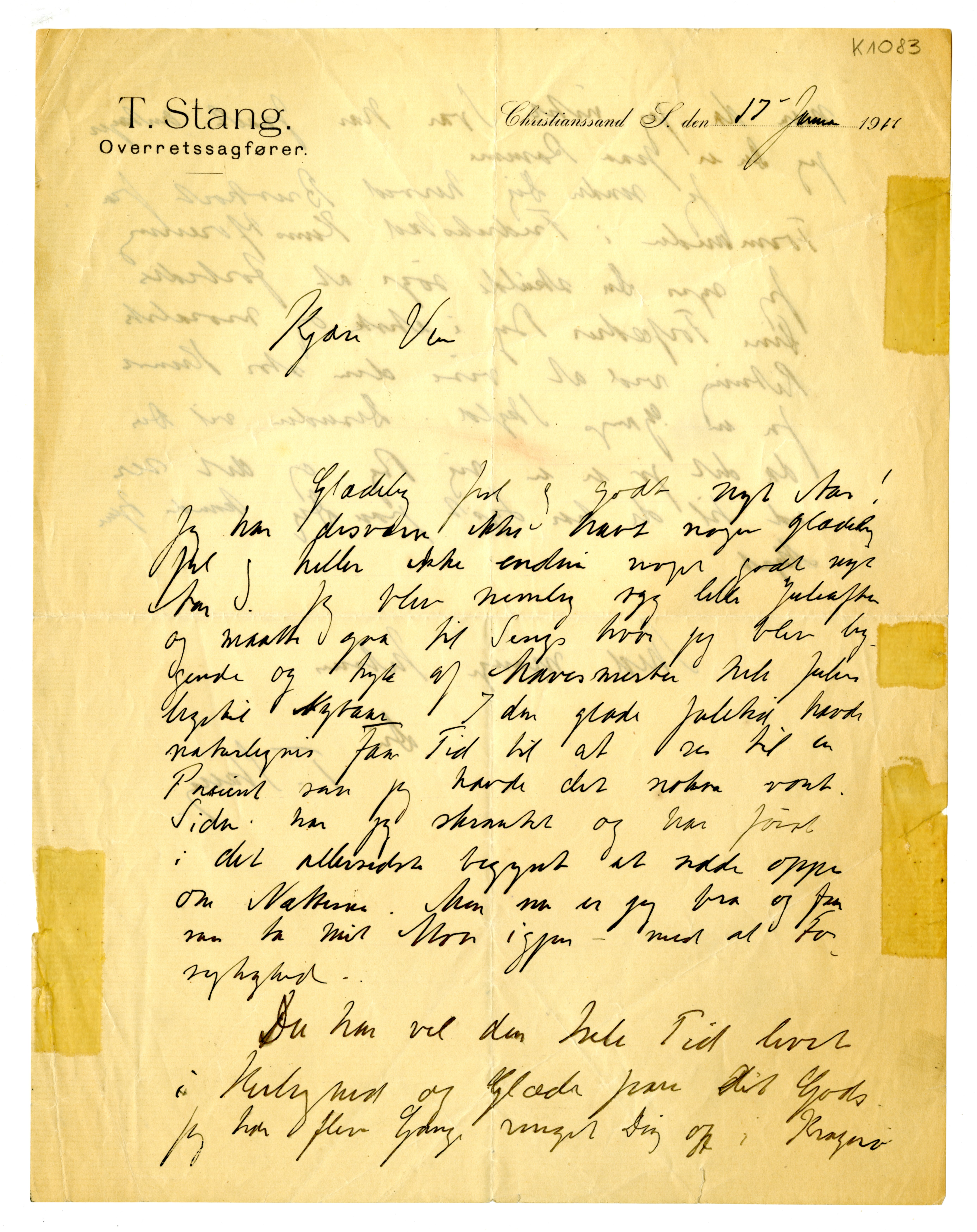 MM K 1083, Munchmuseet. Datert 17.01.1911. Brev fra Torvald Stang.