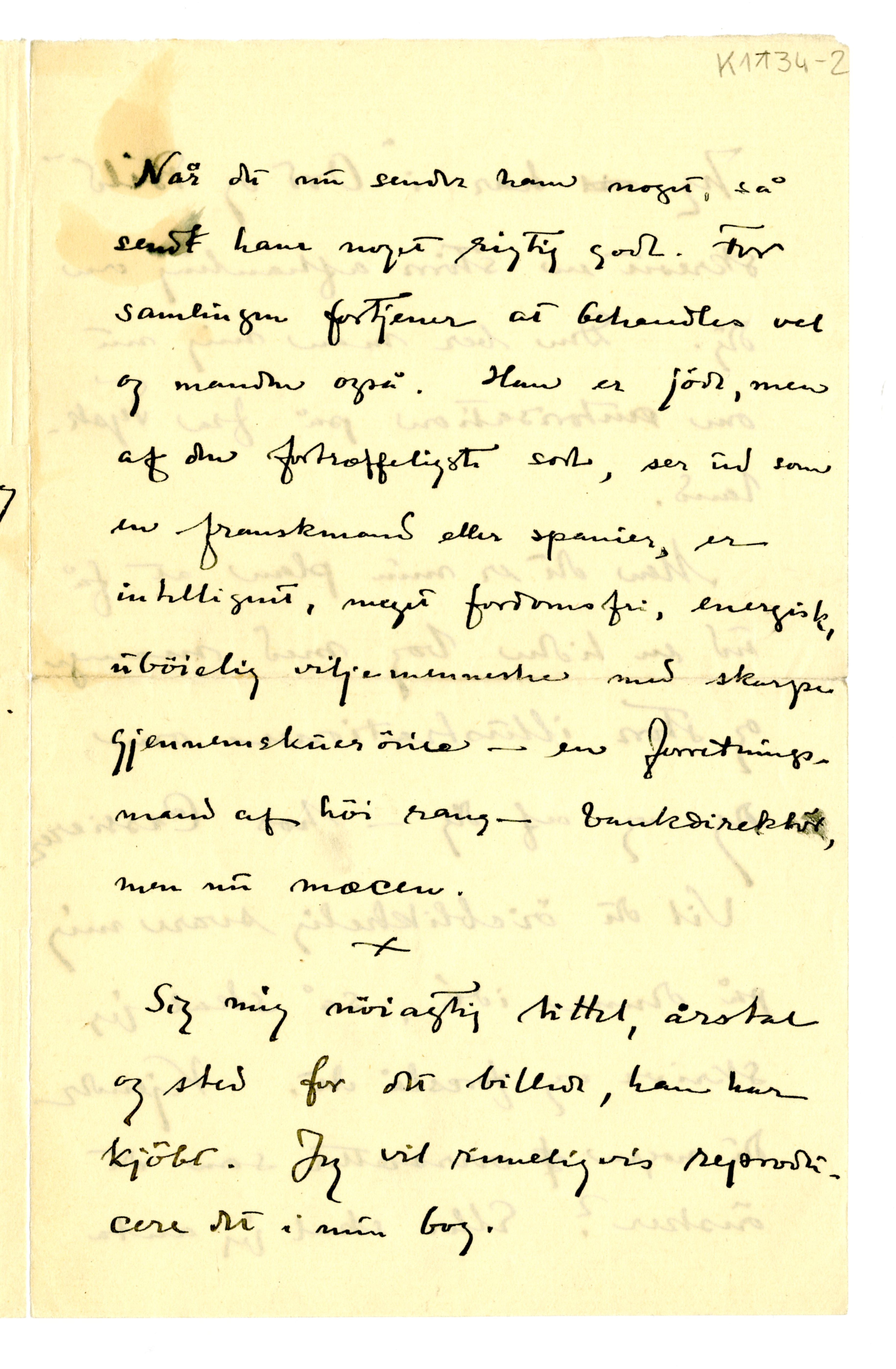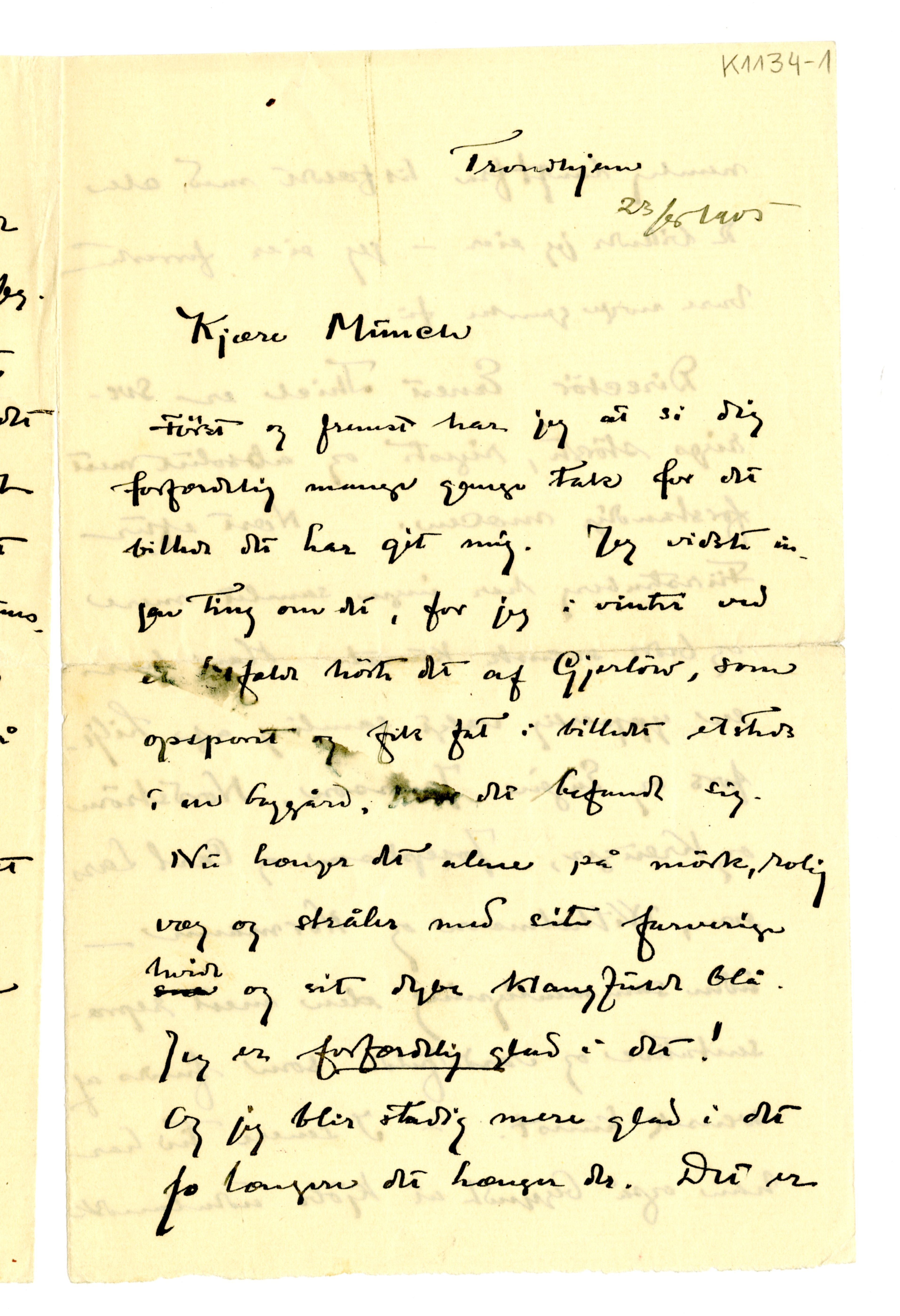 MM K 1134, Munchmuseet. Datert 23.08.1905. Brev fra Jens Thiis.