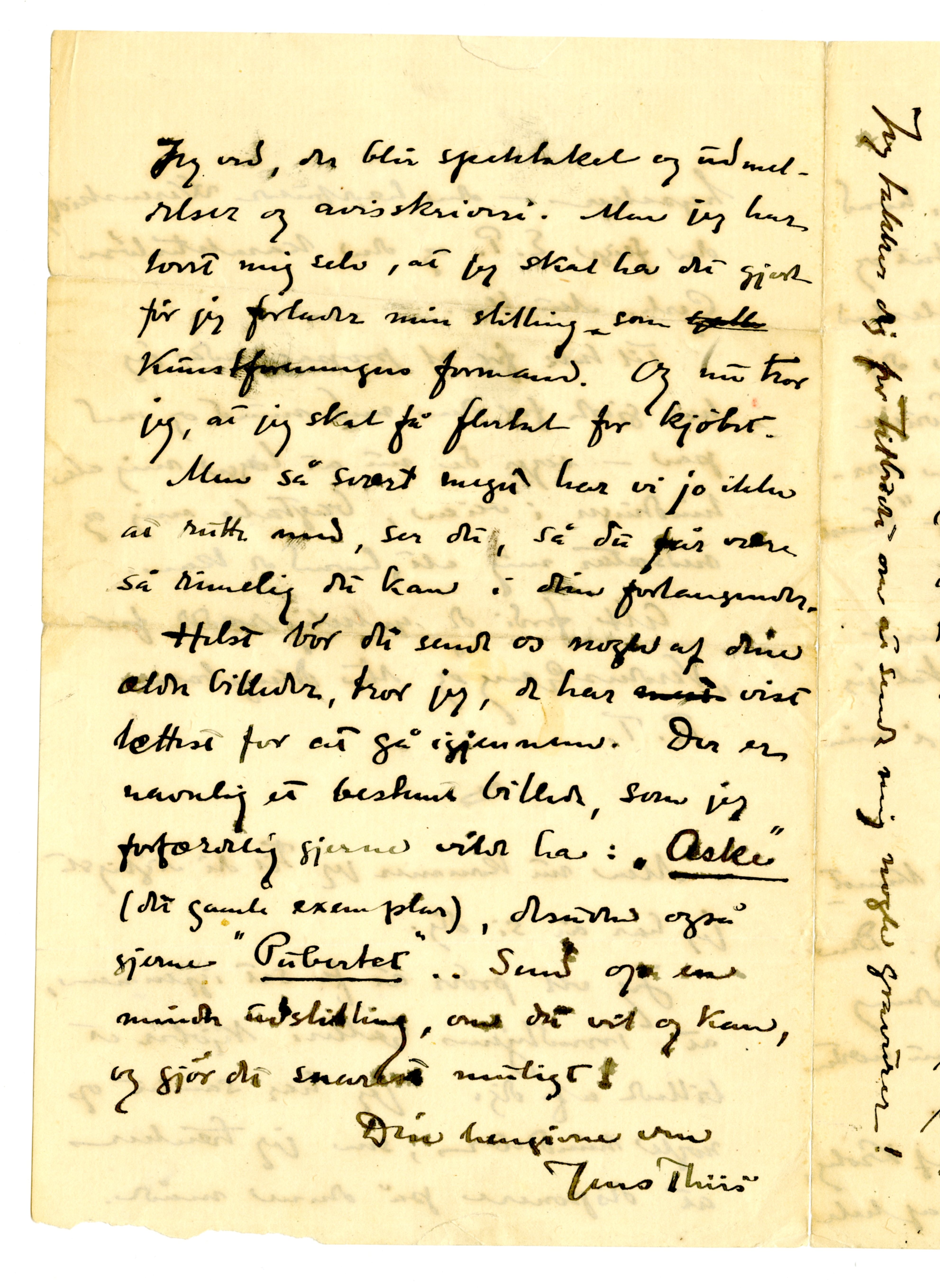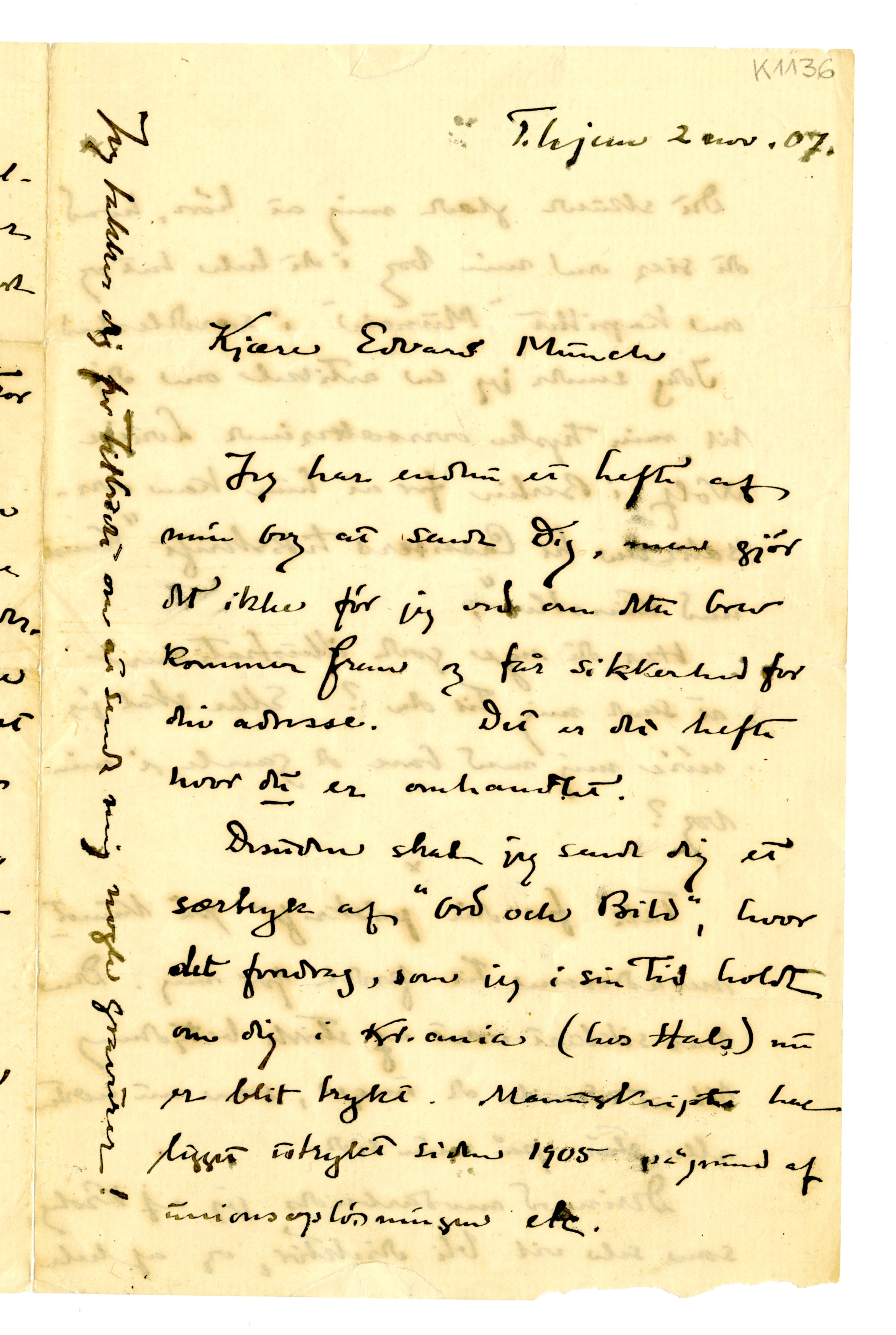 MM K 1136, Munchmuseet. Datert 02.11.1907. Brev fra Jens Thiis.