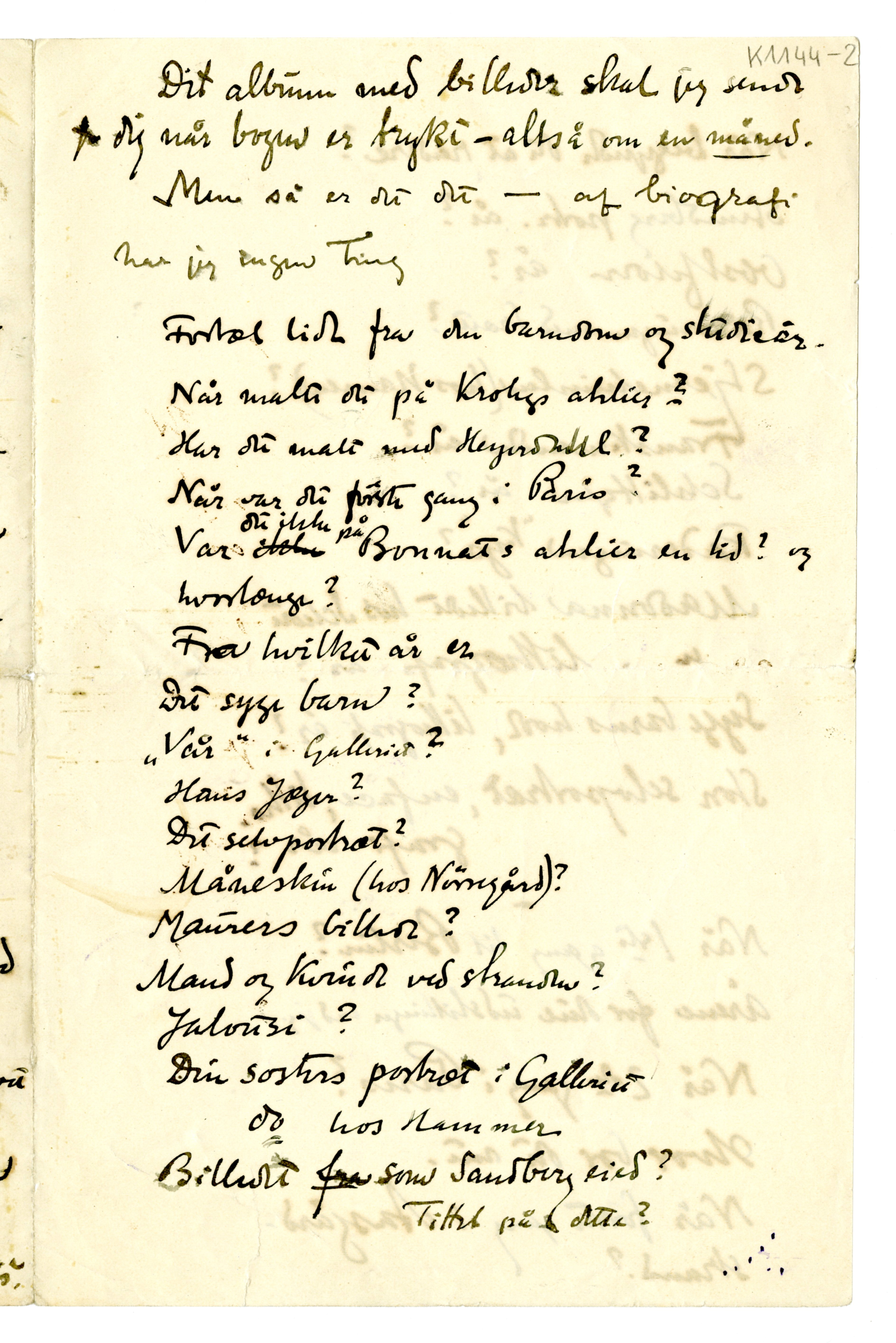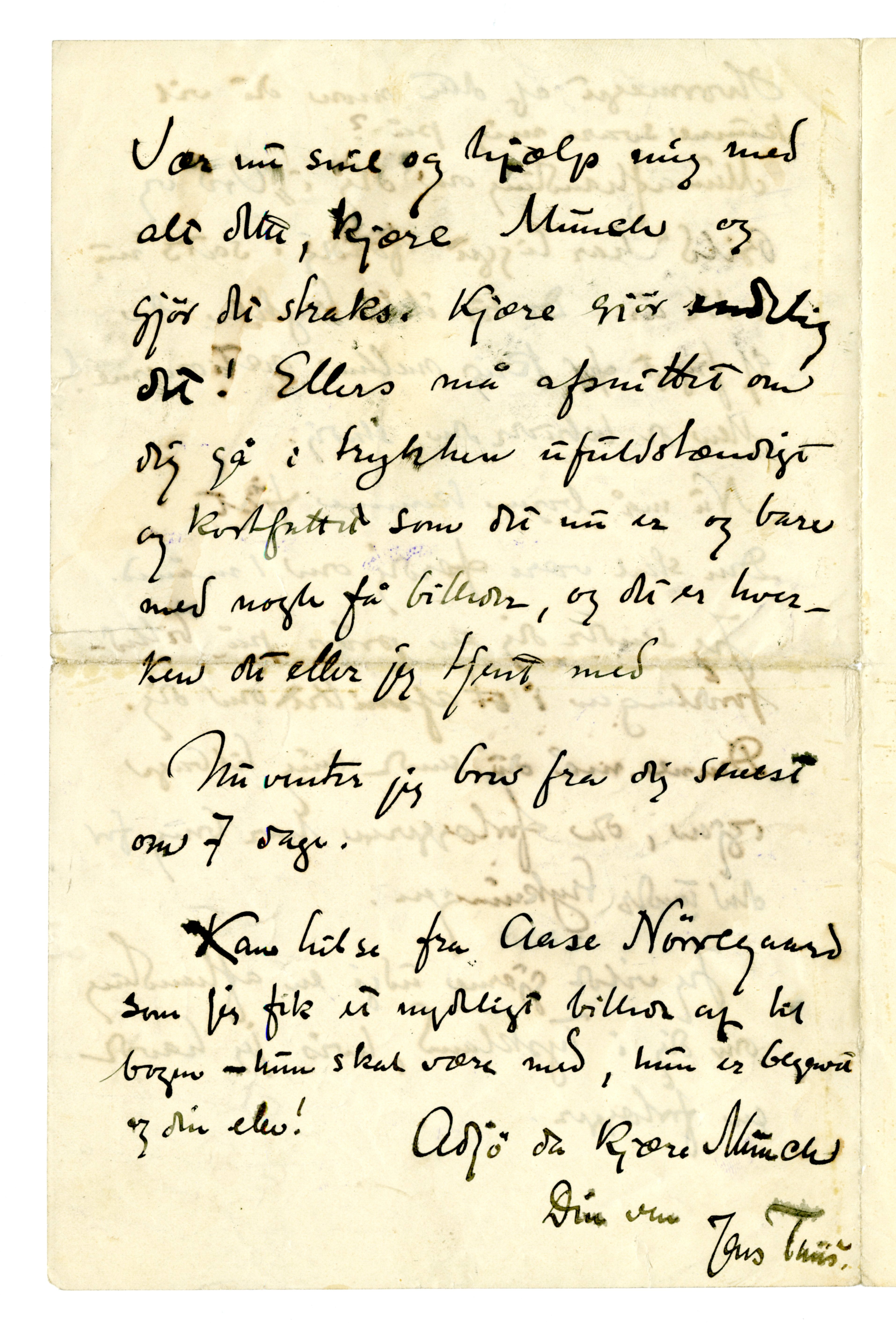MM K 1144, Munchmuseet. Ikke datert. Brev fra Jens Thiis.