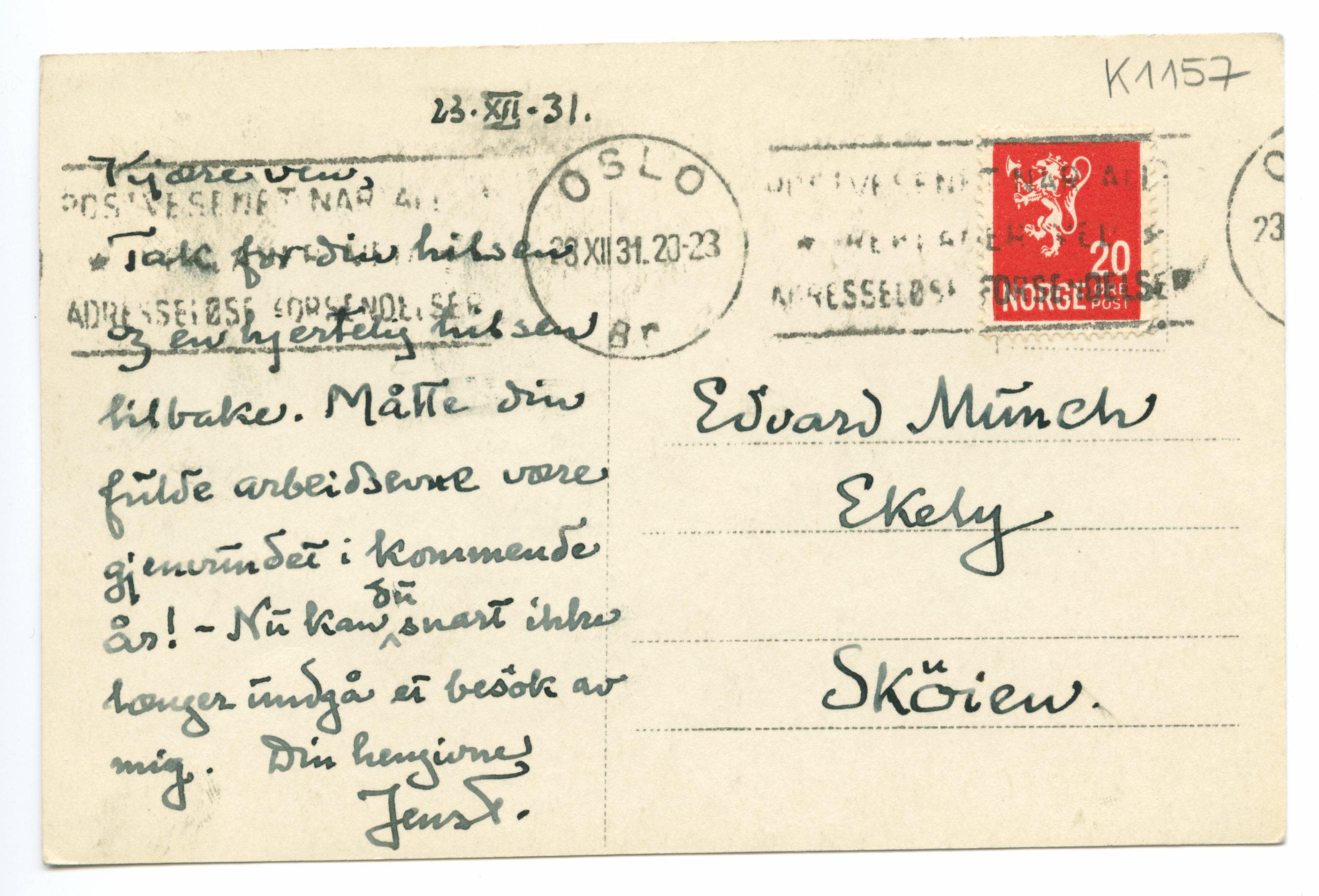 MM K 1157, Munchmuseet. Datert 23.12.1931. Brev fra Jens Thiis.