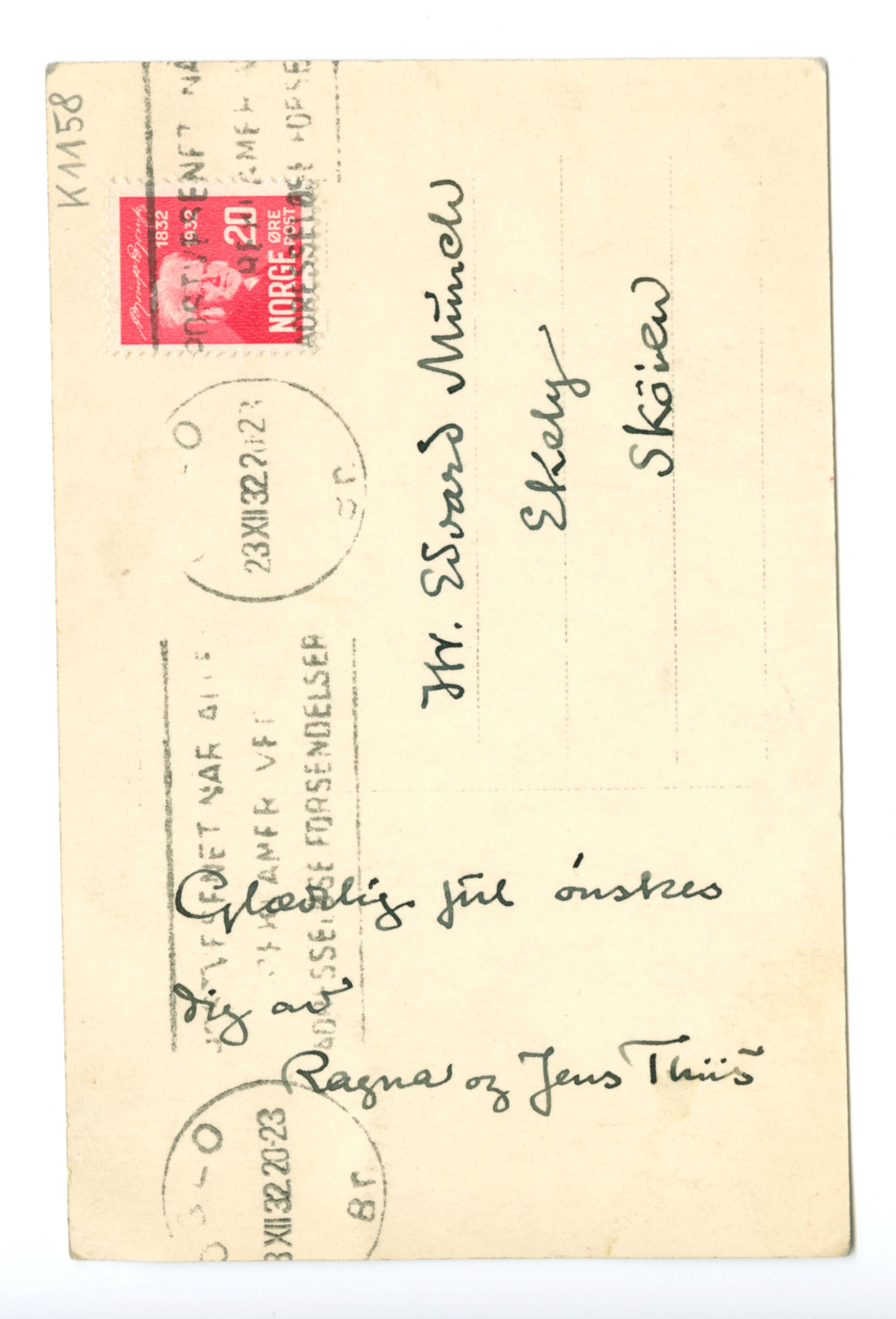 MM K 1158, Munchmuseet. Datert 23.12.1932. Brev fra Jens Thiis, Ragna Thiis.