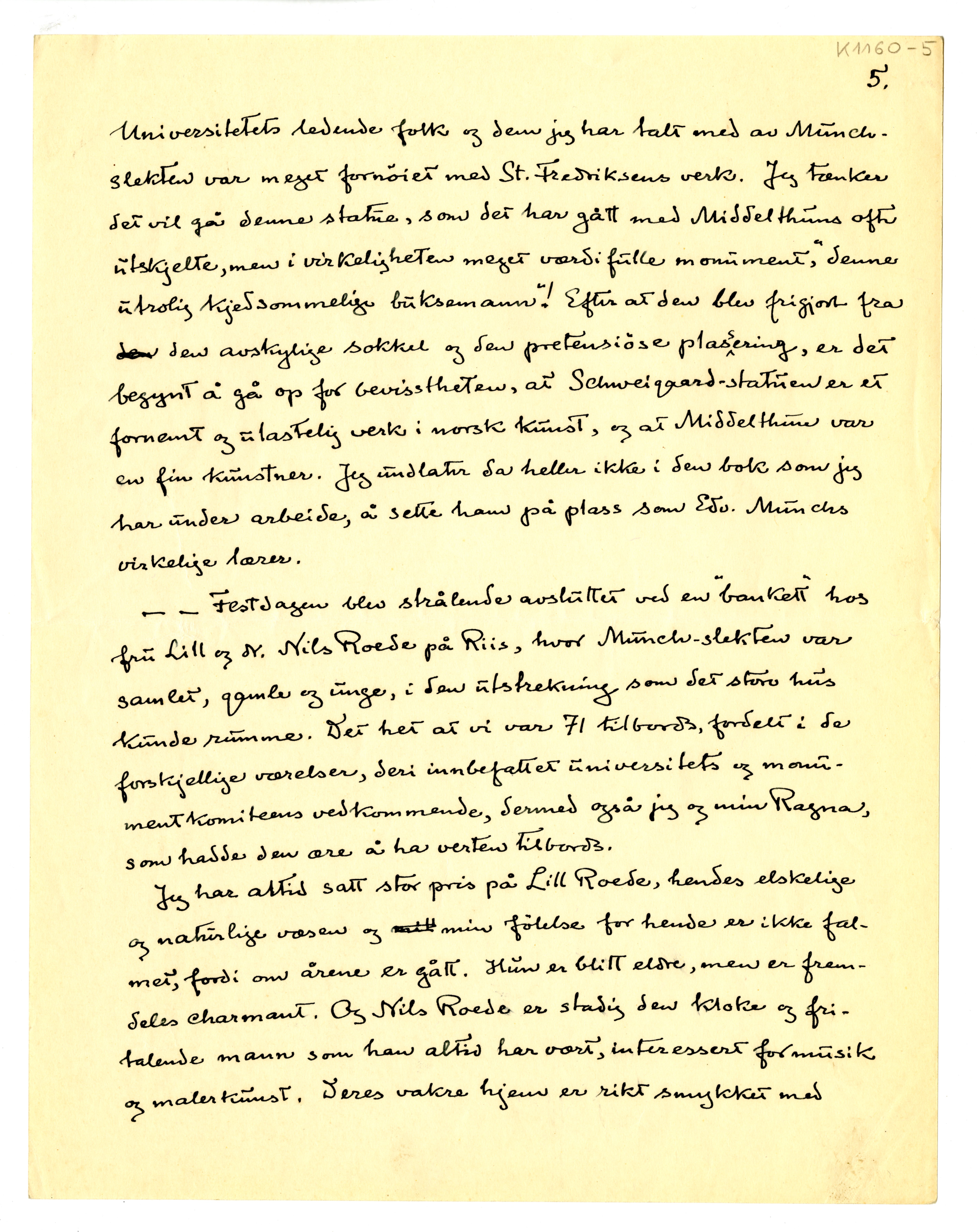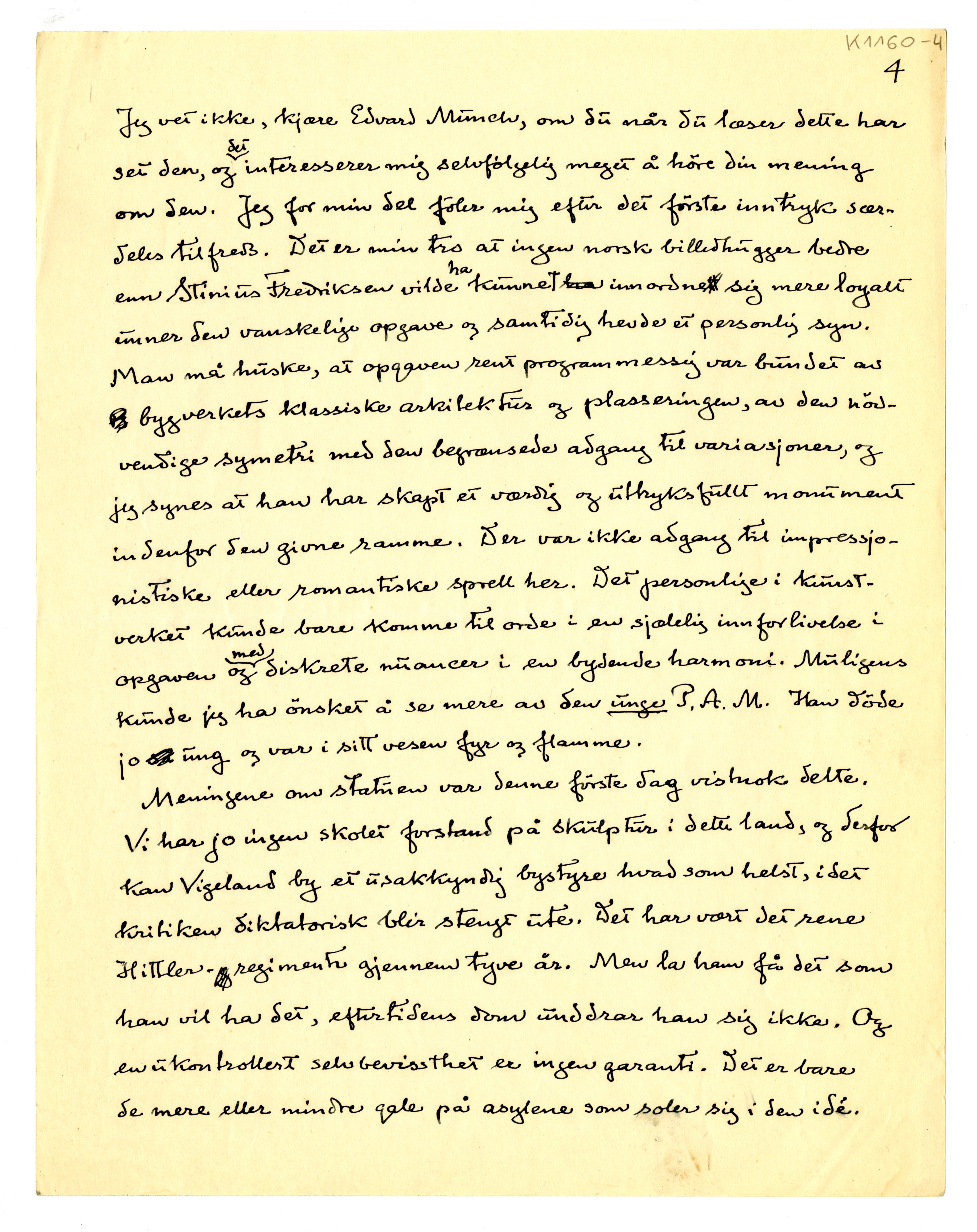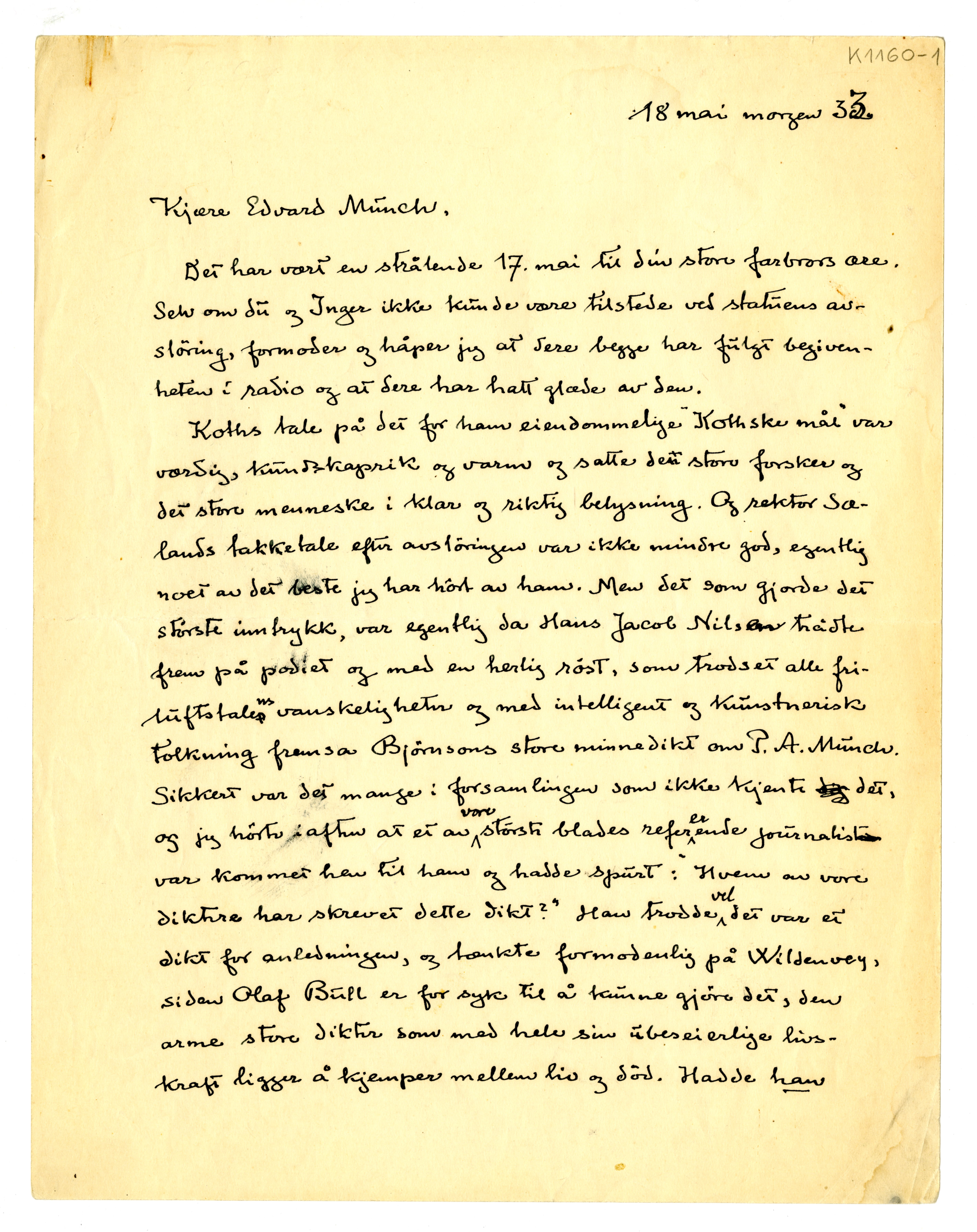 MM K 1160, Munchmuseet. Datert 18.05.1933. Brev fra Jens Thiis.