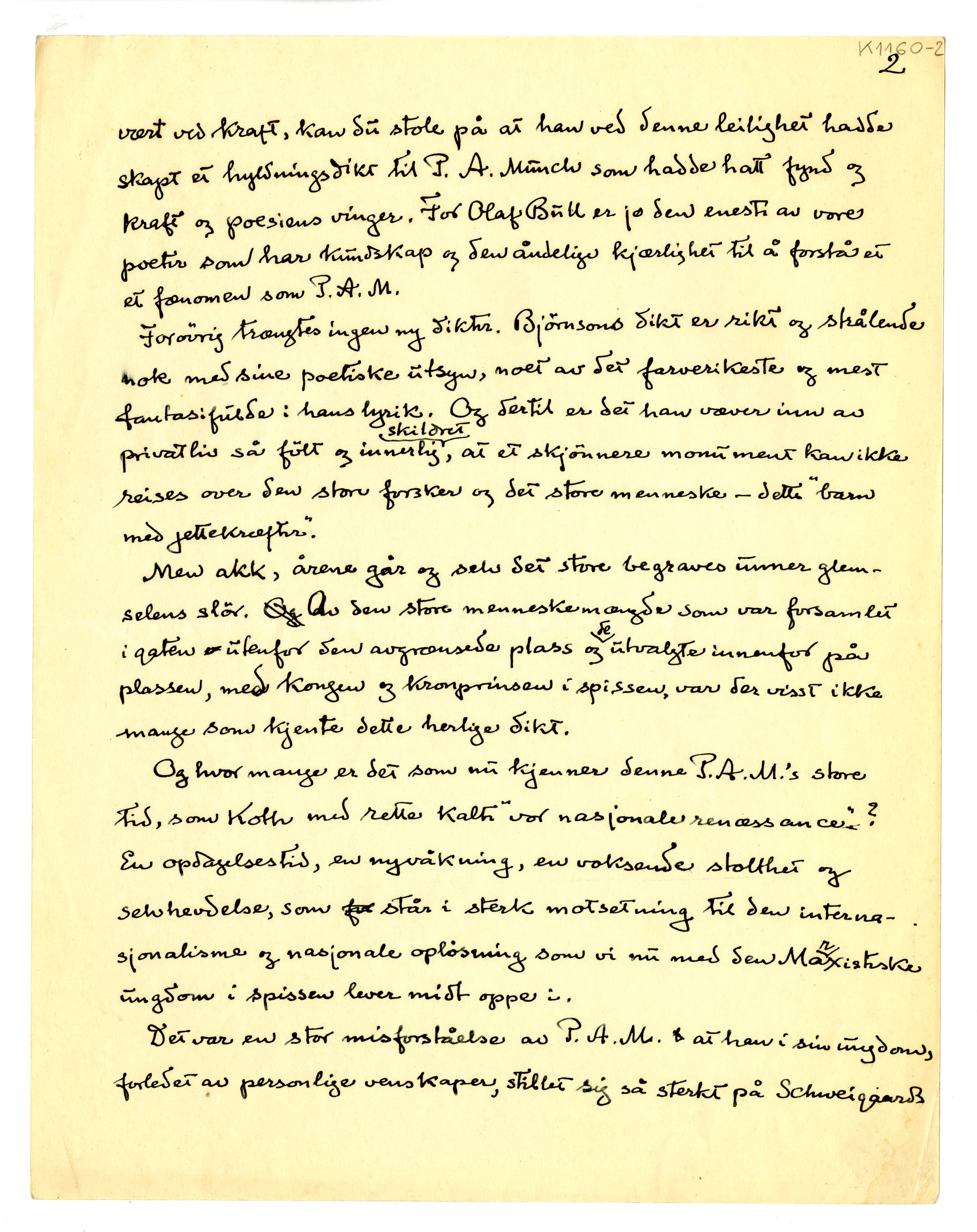 tolkning fremsa Bjørnsons store minnedikt om P.A. Munch.