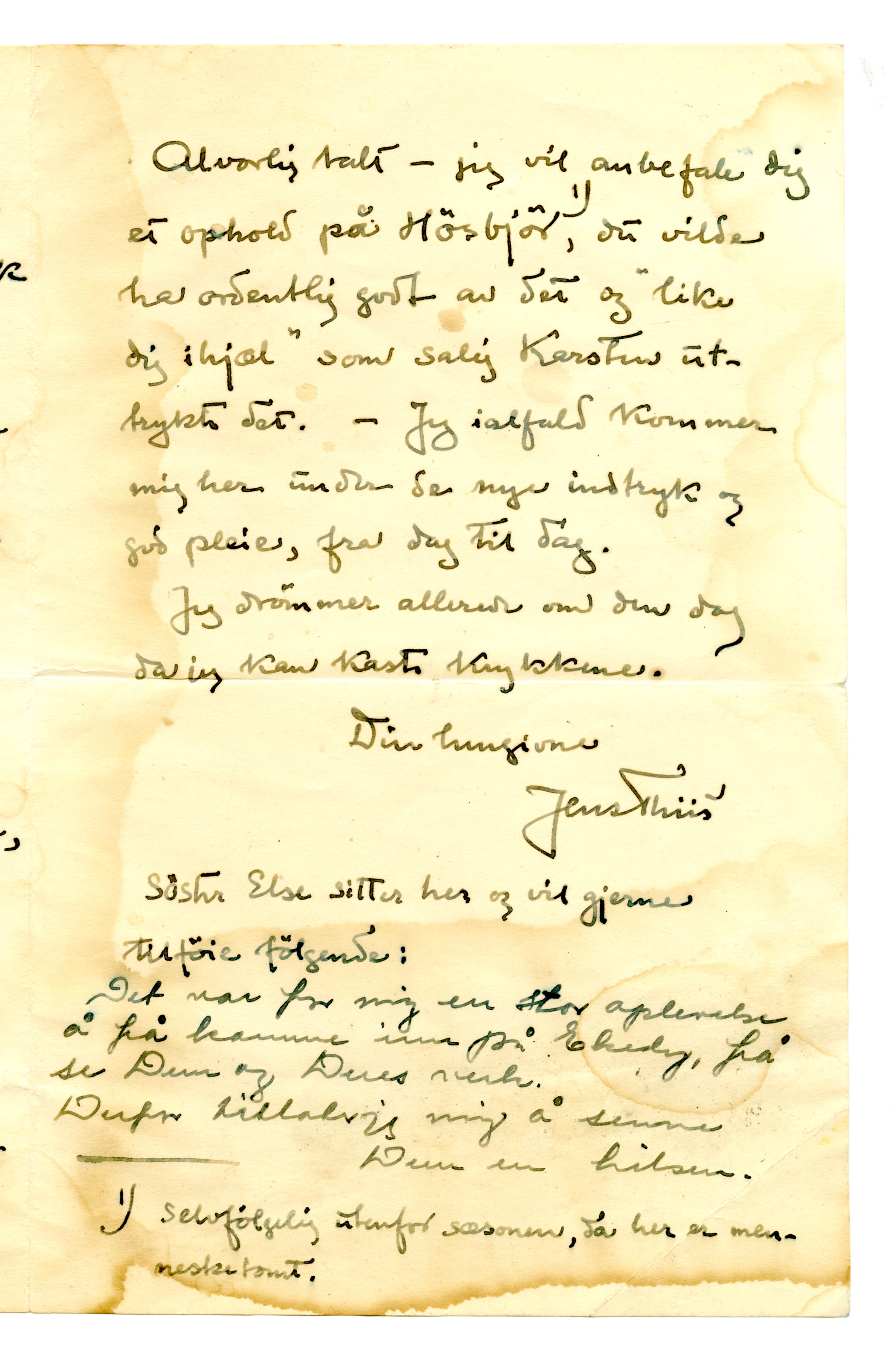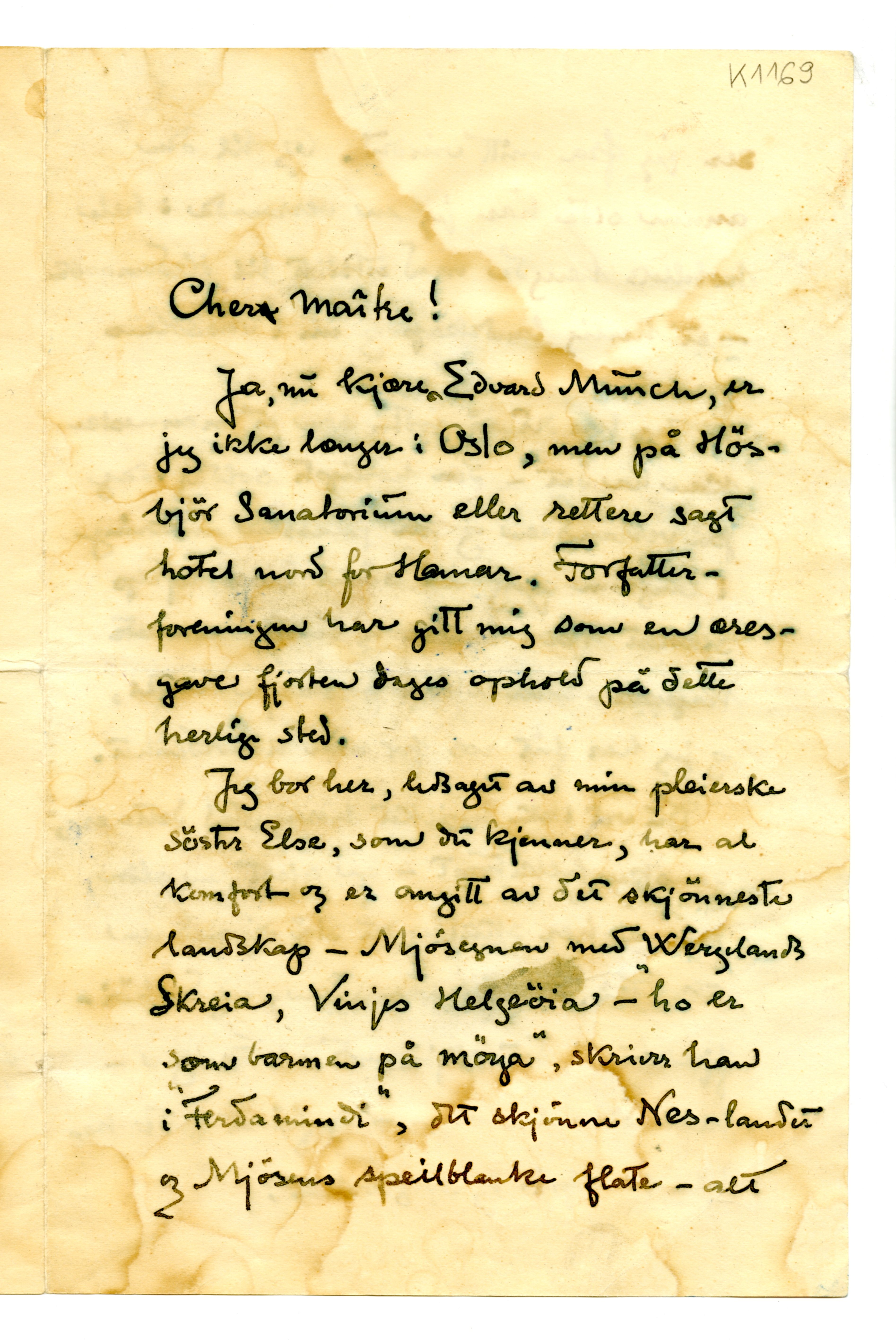 MM K 1169, Munchmuseet. Ikke datert. Brev fra Jens Thiis.