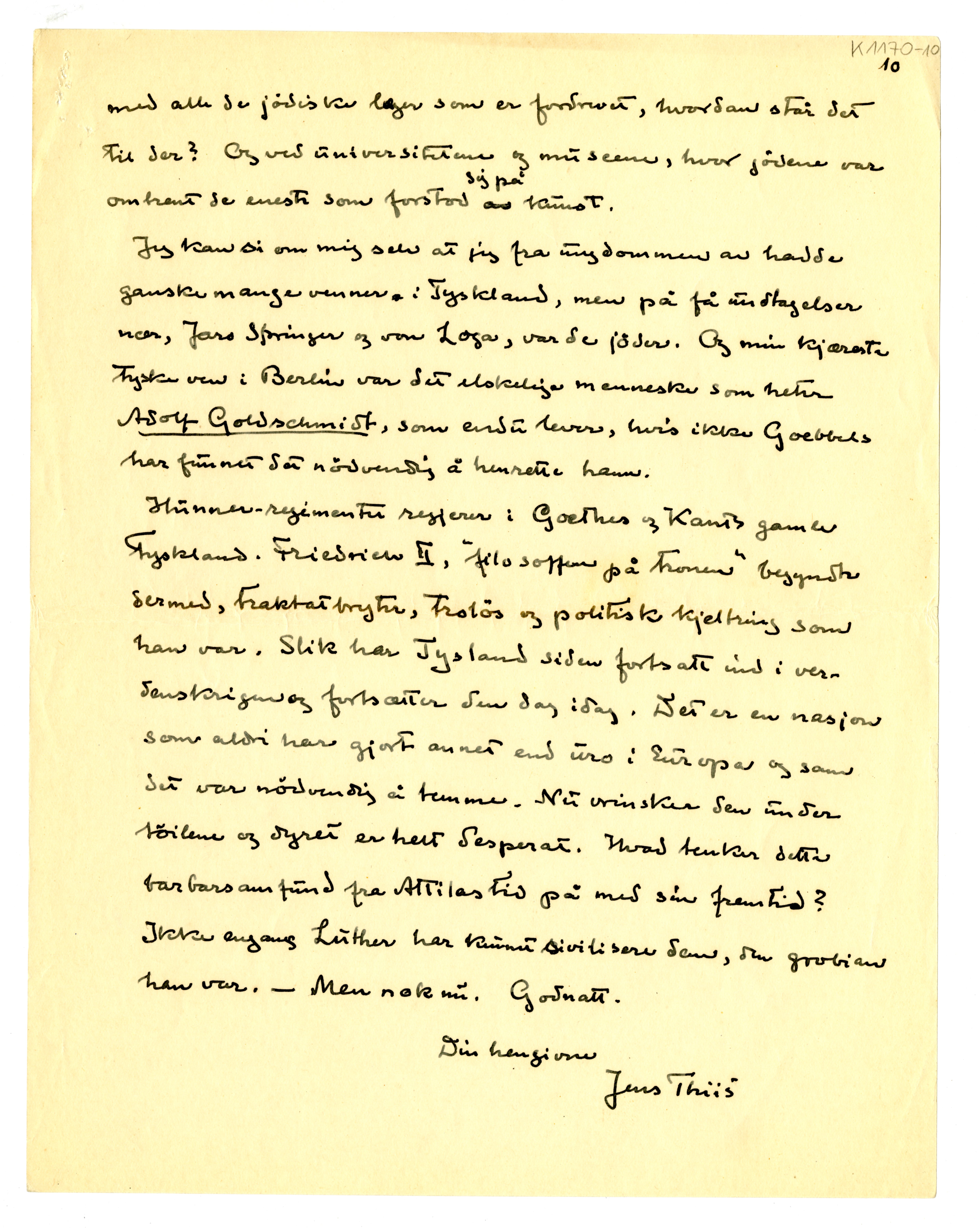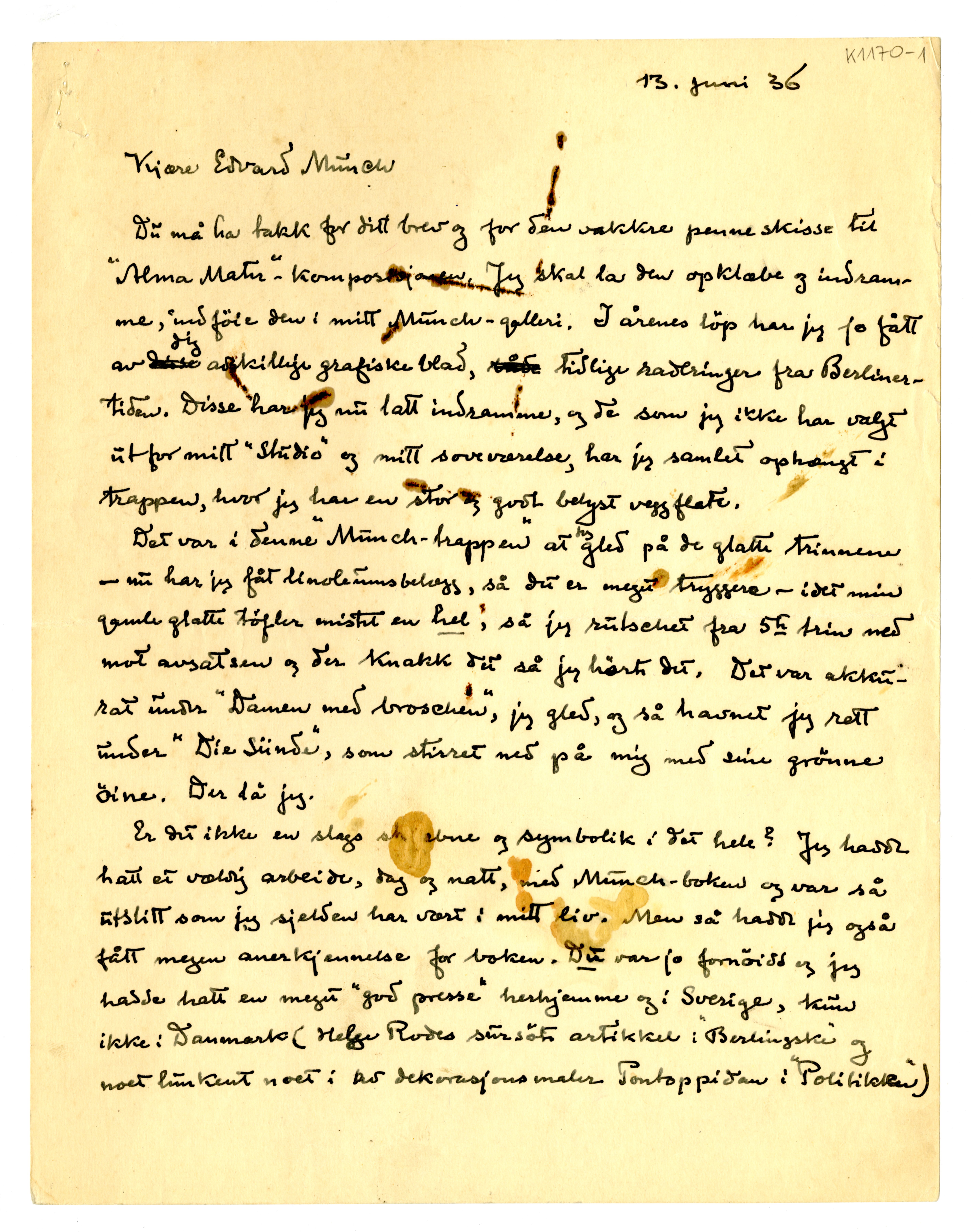 MM K 1170, Munchmuseet. Ikke datert. Brev fra Jens Thiis.
