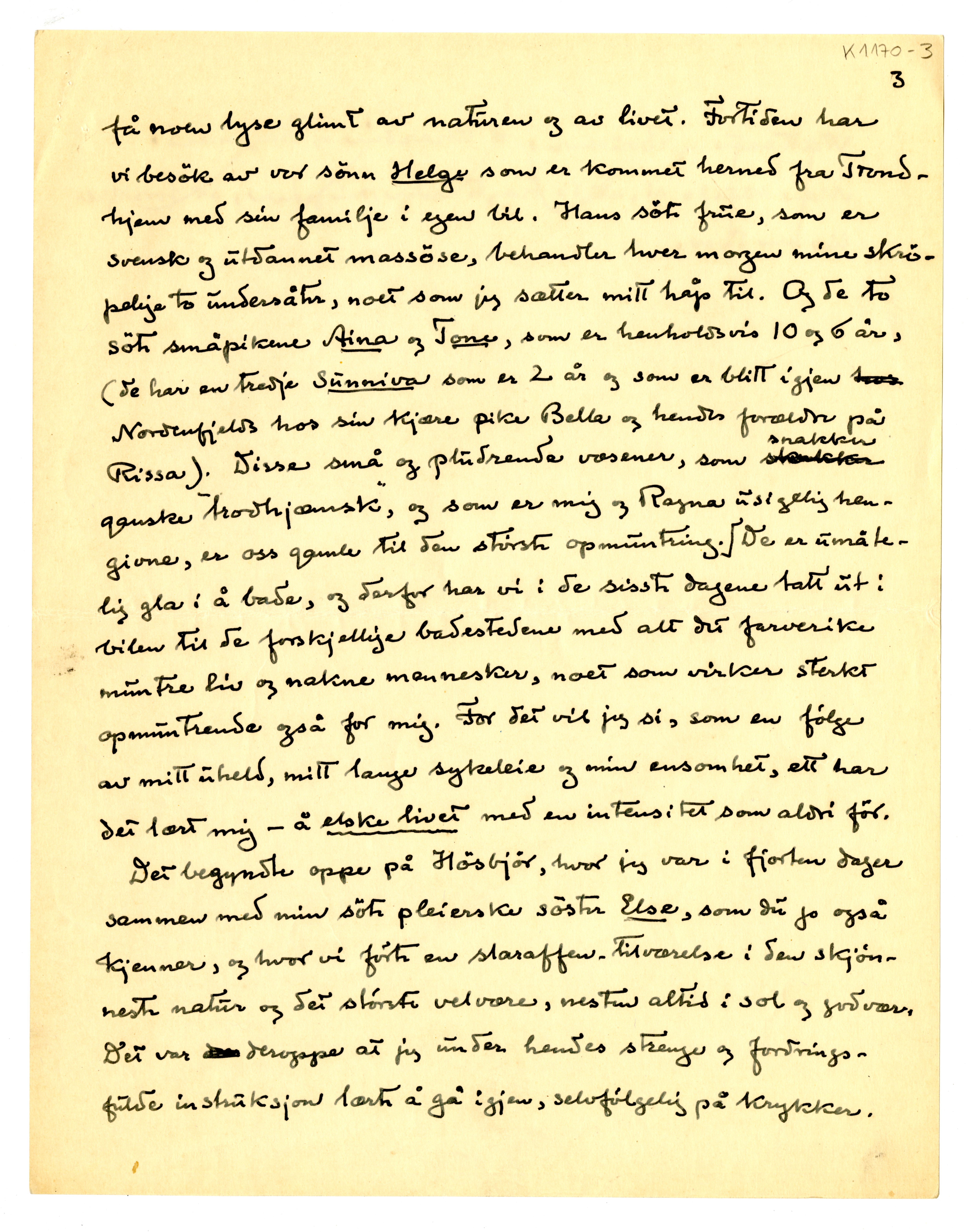 av mitt uheld, mitt lange sykeleie og min ensomhet, ett har