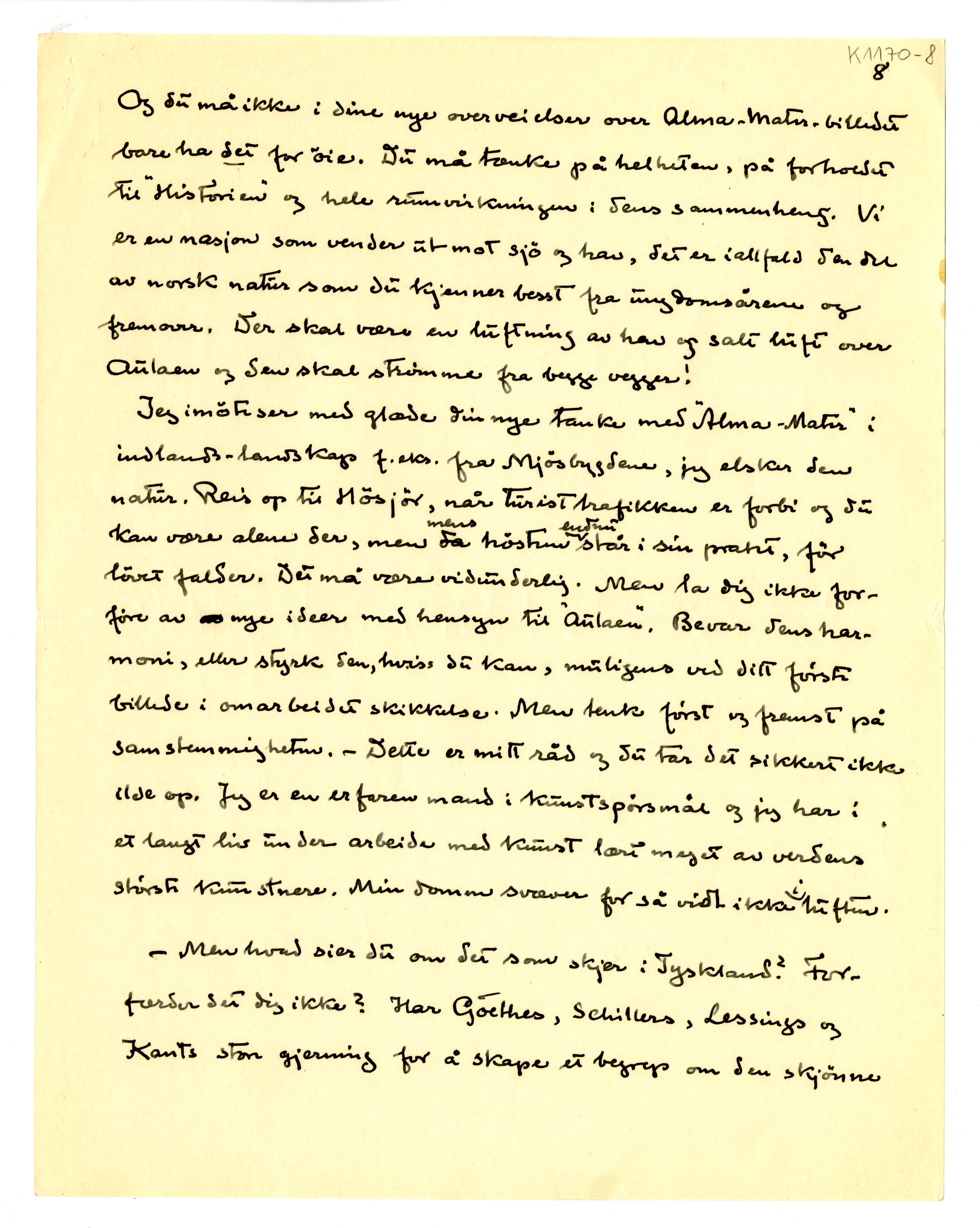 Og du må ikke i dine nye overveielser over Alma-Mater-billedet