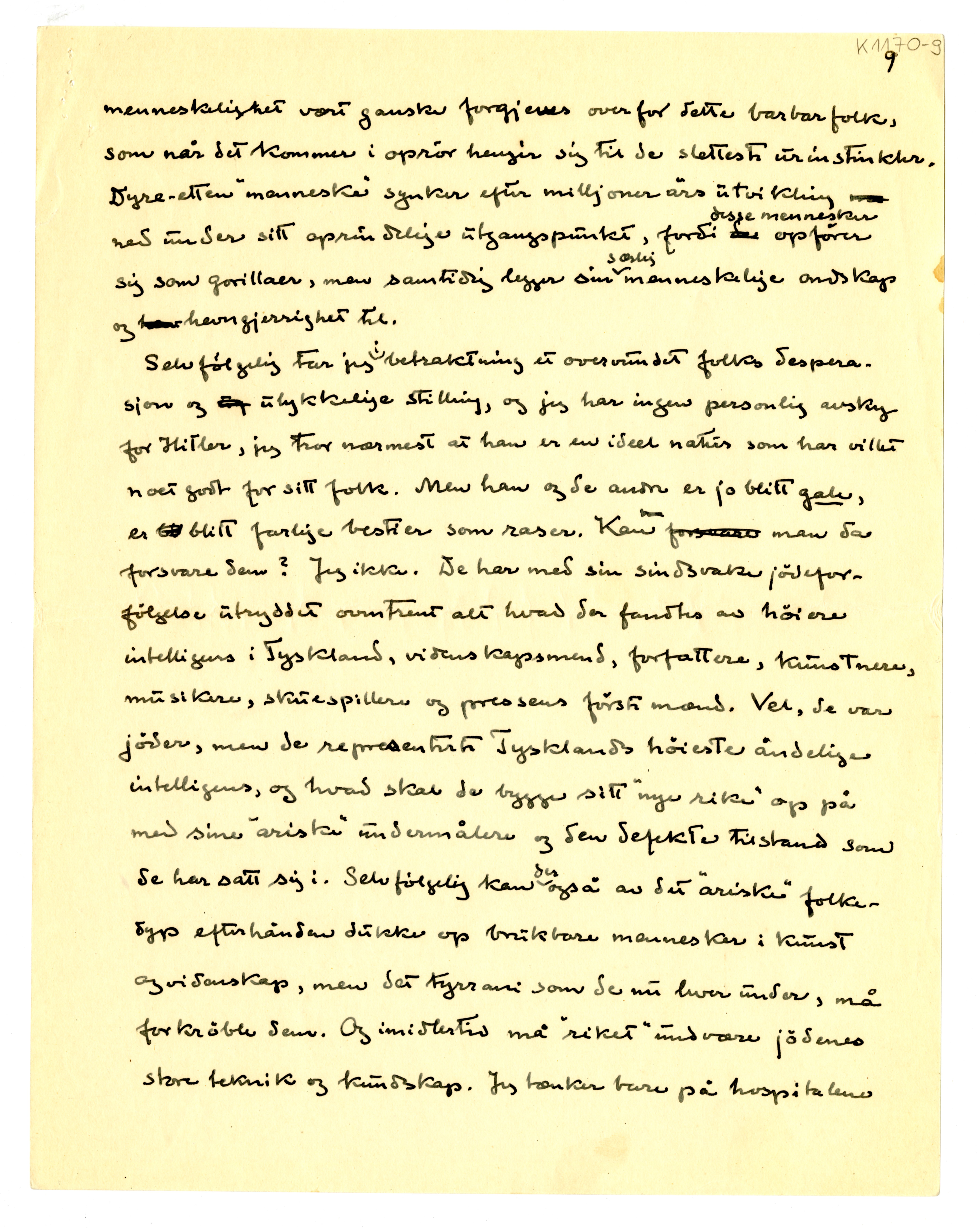 sig som gorillaer, men samtidig legger sin \særlig/ menneskelige ondskap