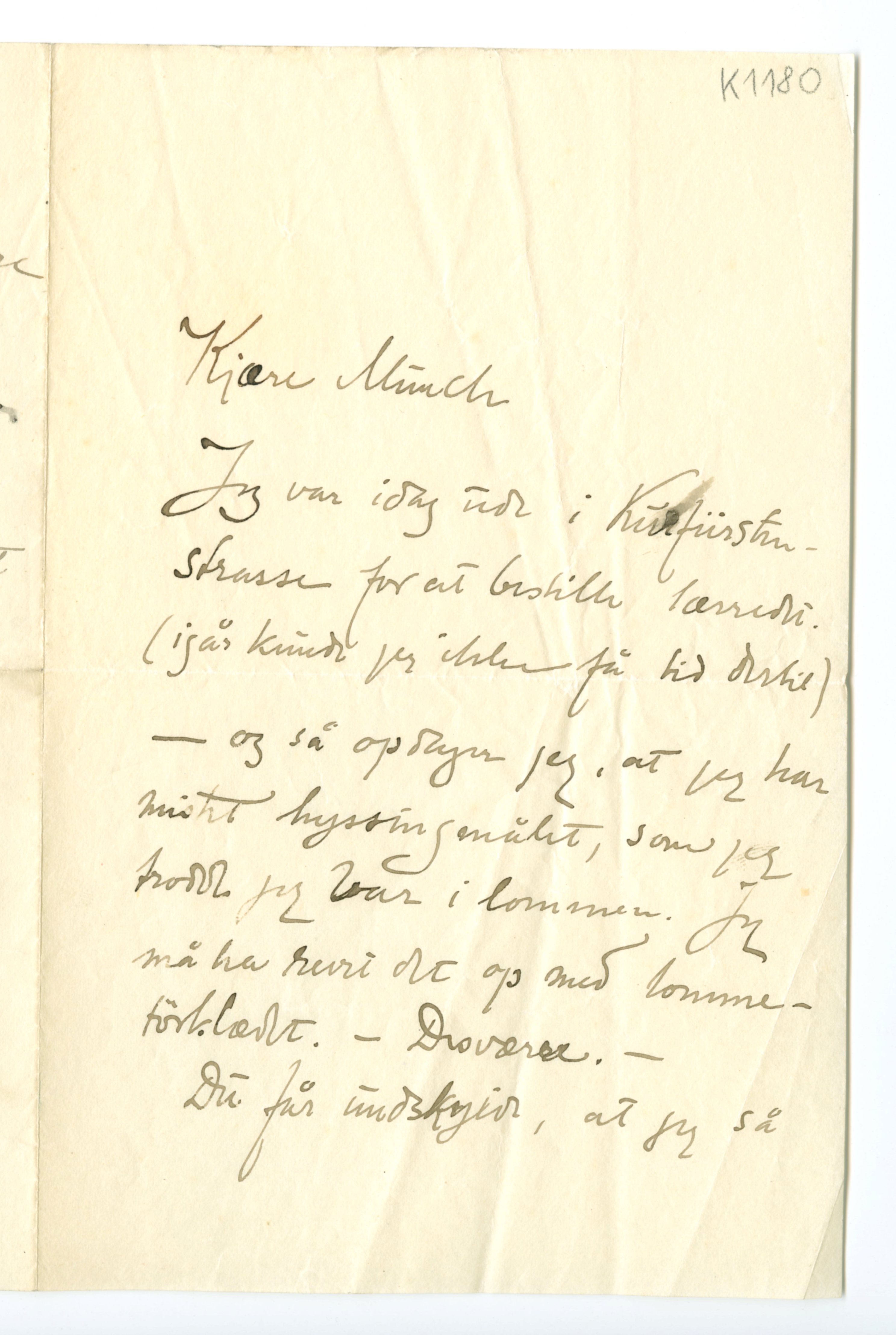 MM K 1180, Munchmuseet. Ikke datert. Brev fra Jens Thiis.