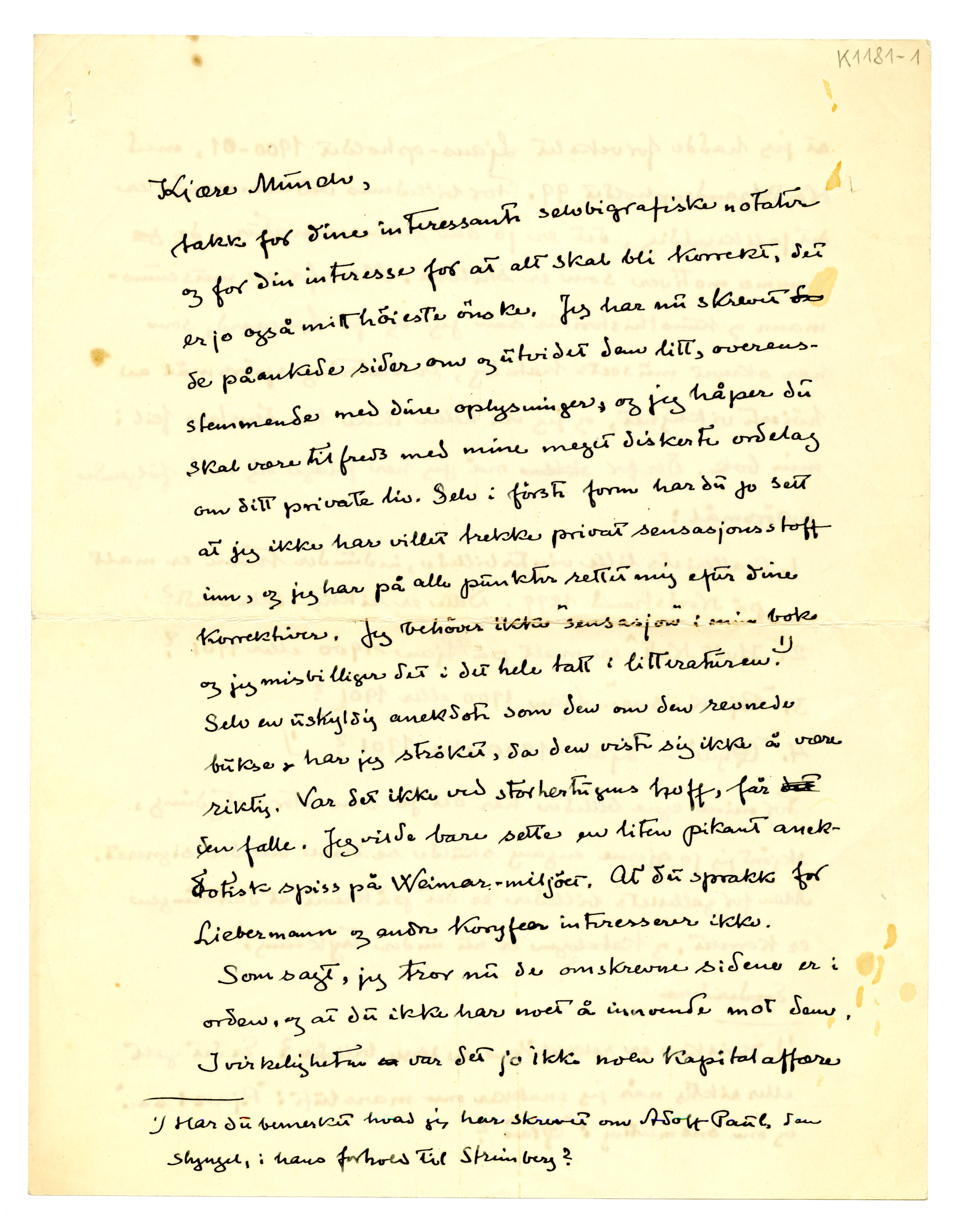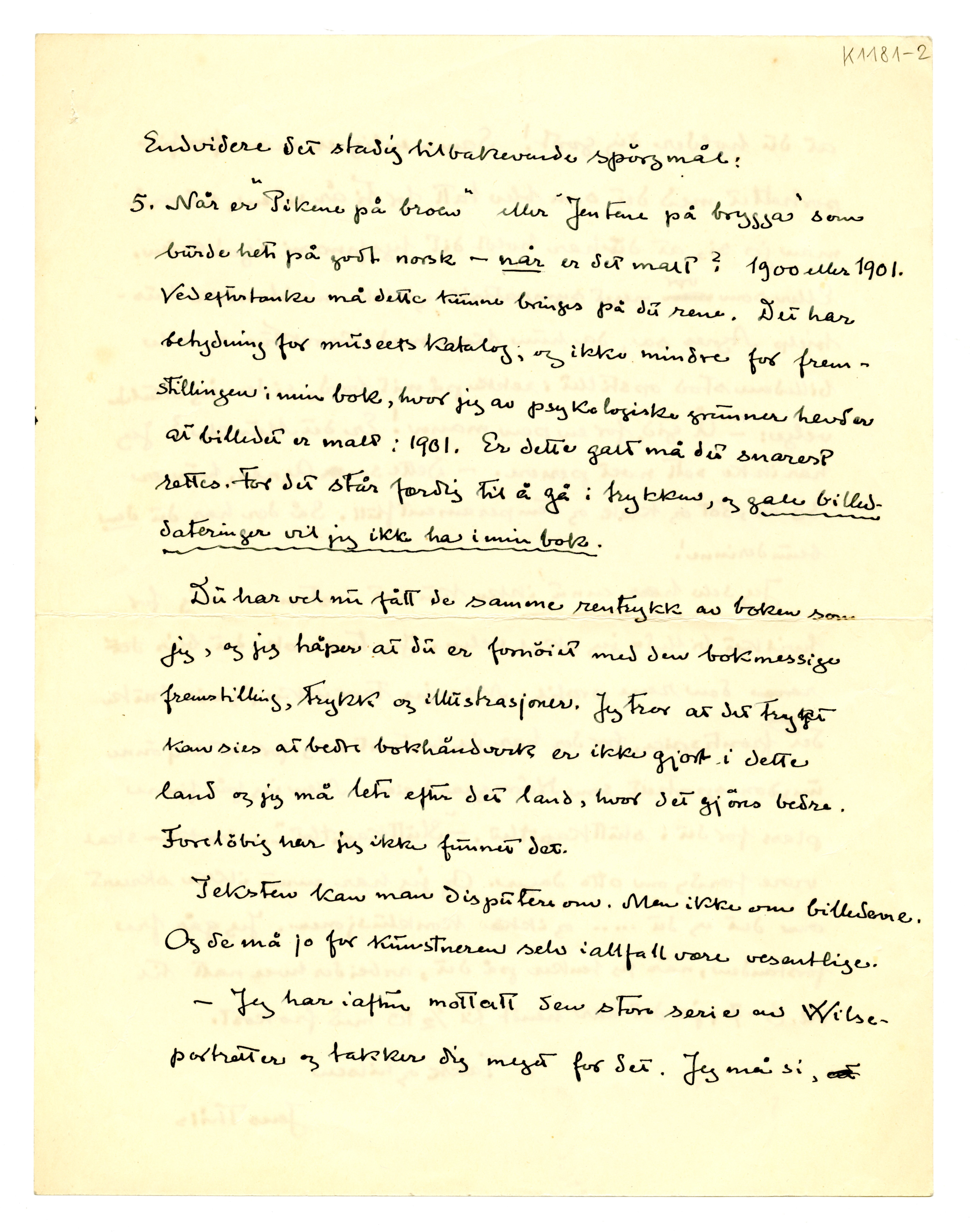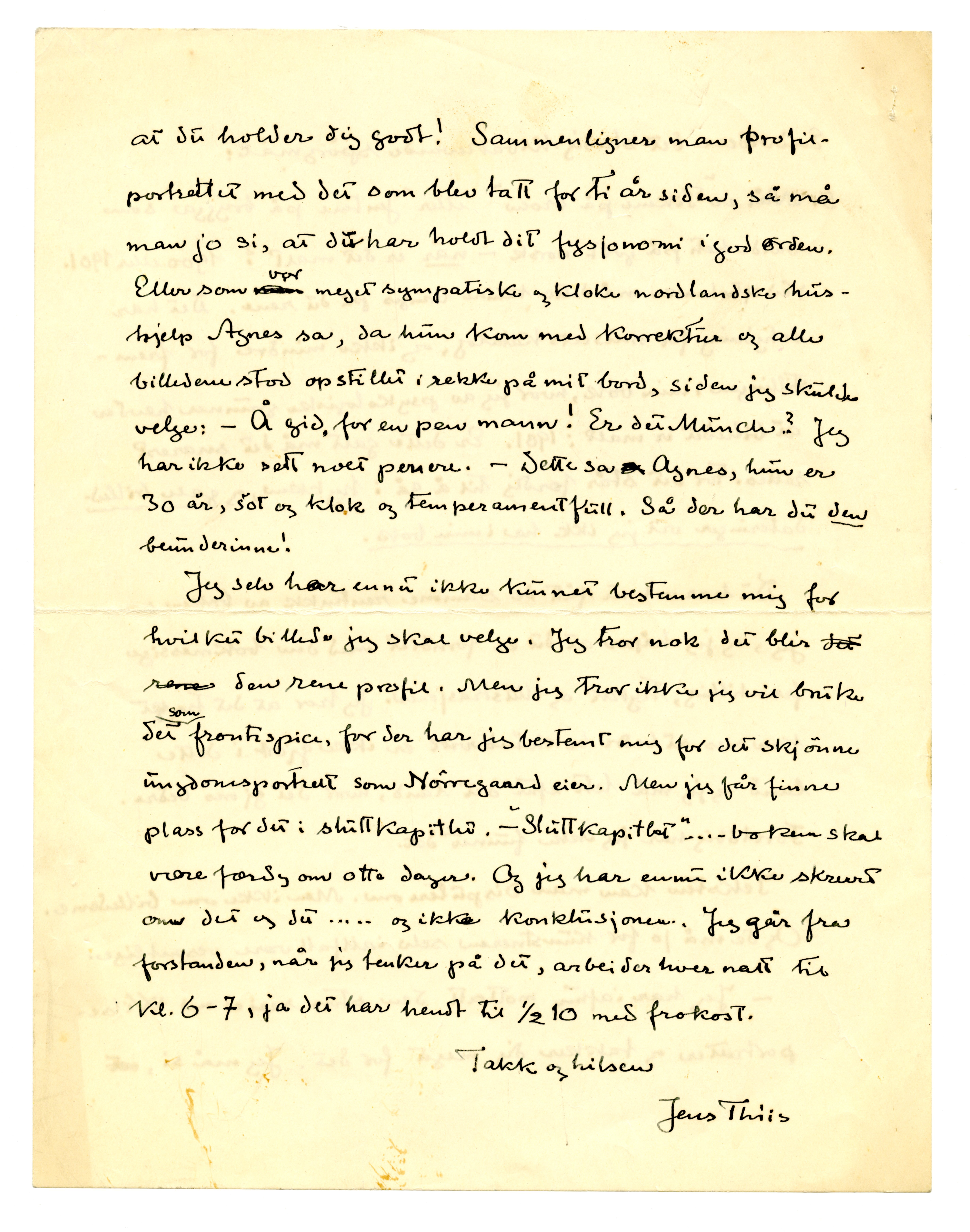 MM K 1181, Munchmuseet. Ikke datert. Brev fra Jens Thiis.