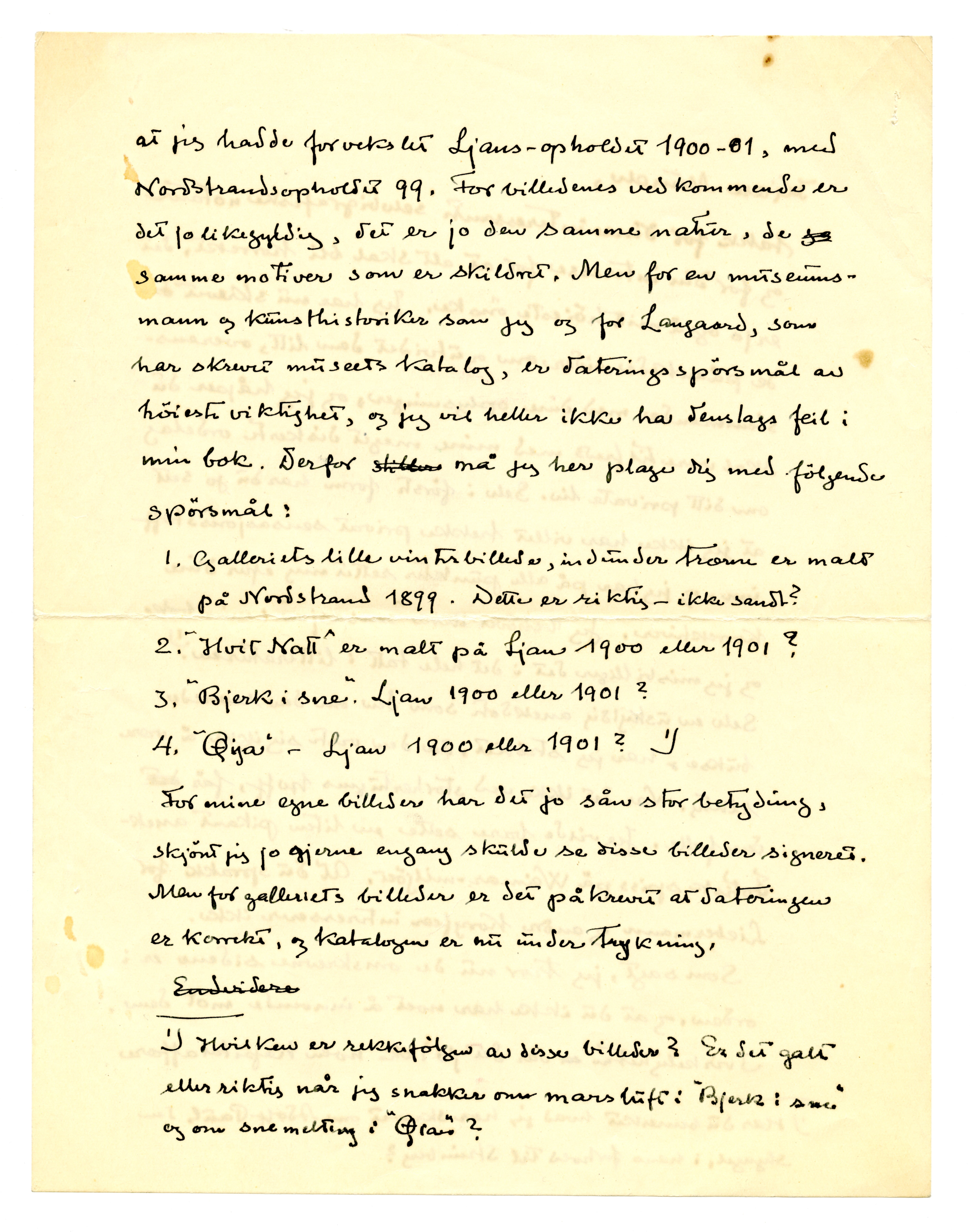 på Nordstrand 1899. Dette er riktig – ikke sandt? - 2. «Hvit Natt» er malt på Ljan 1900 eller 1901?
