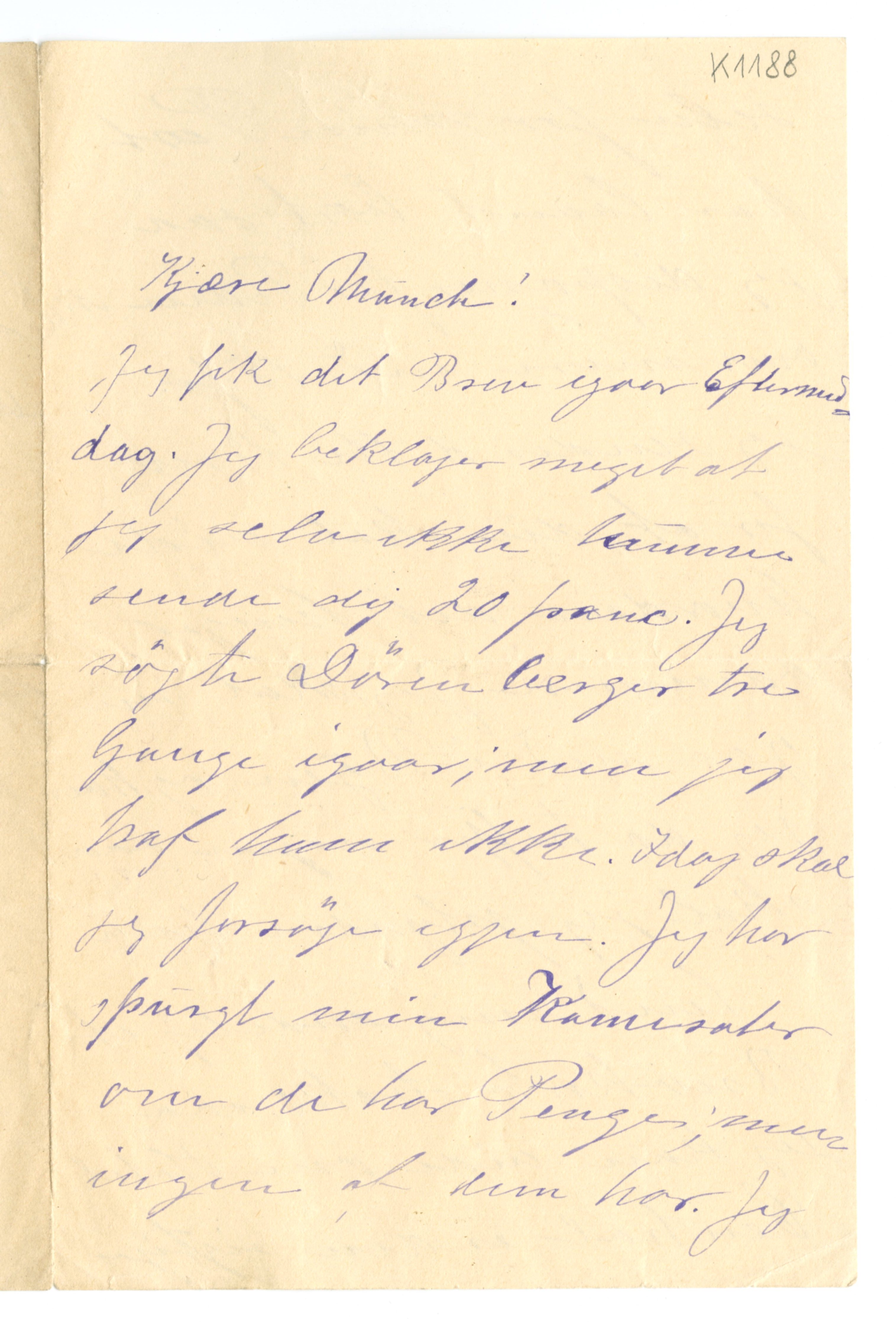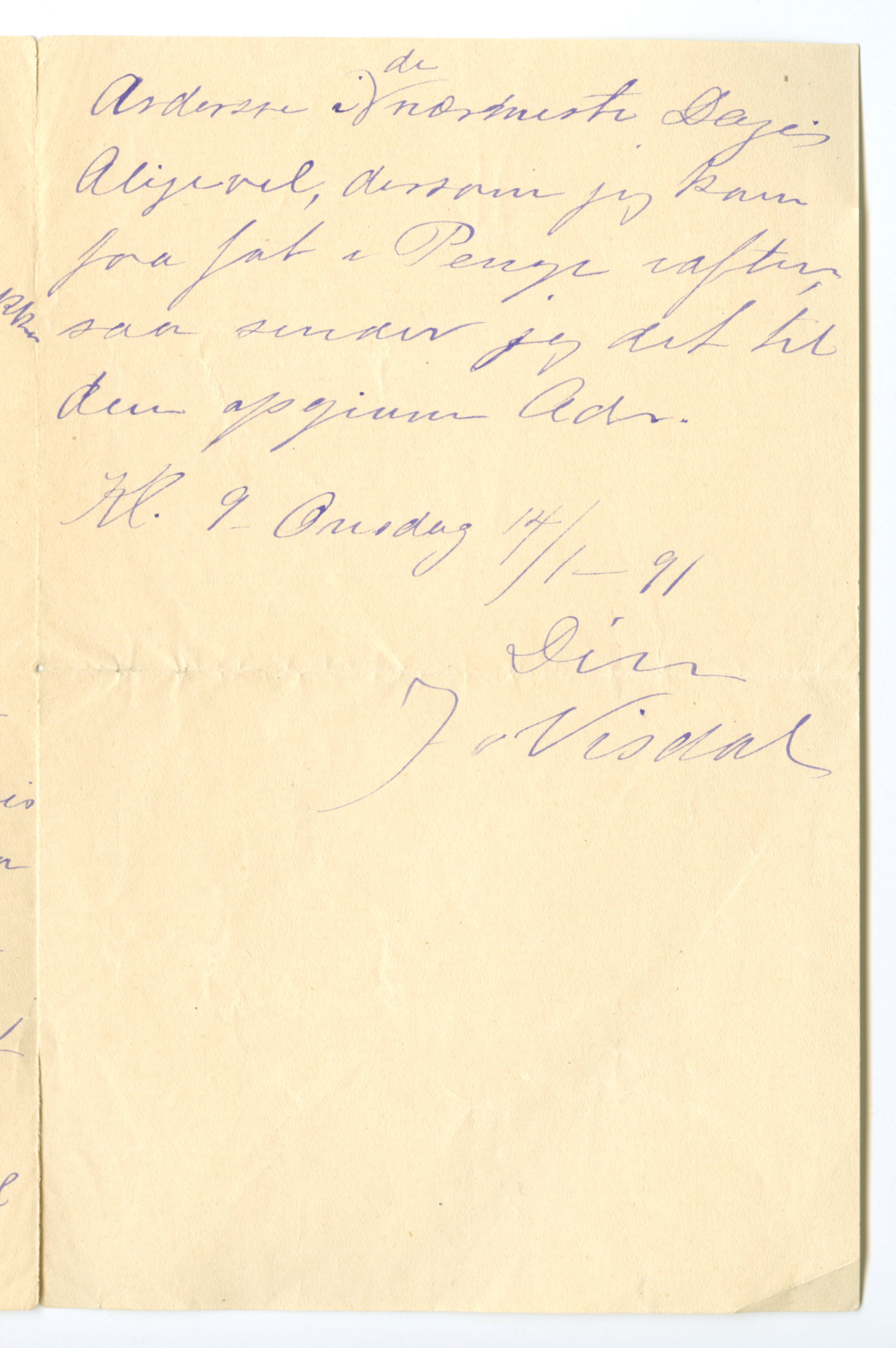MM K 1188, Munchmuseet. Datert 14.01.1891. Brev fra Jo Visdal.