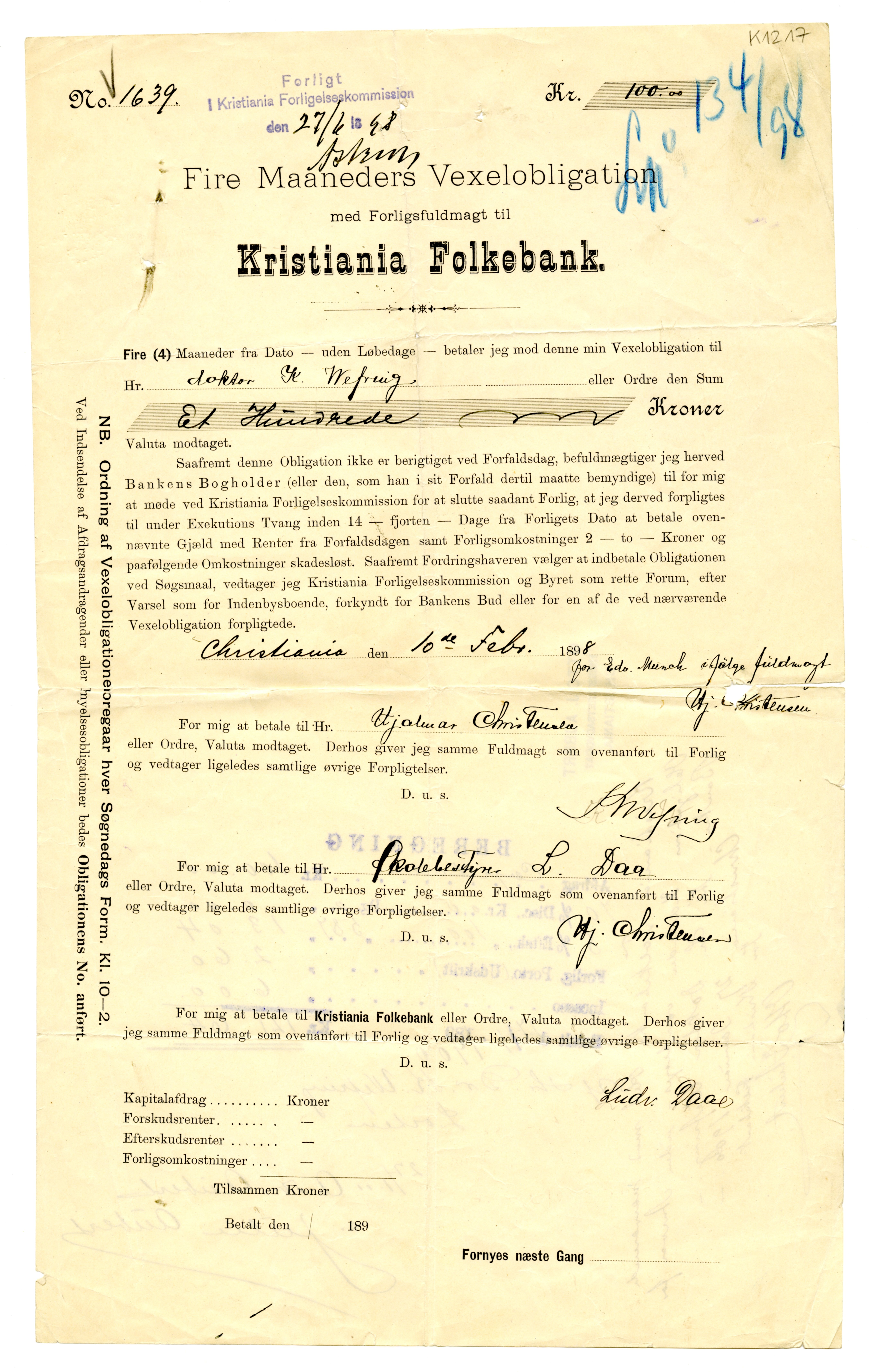 MM K 1217, Munchmuseet. Datert 27.01.1900. Brev fra Karl Wefring.