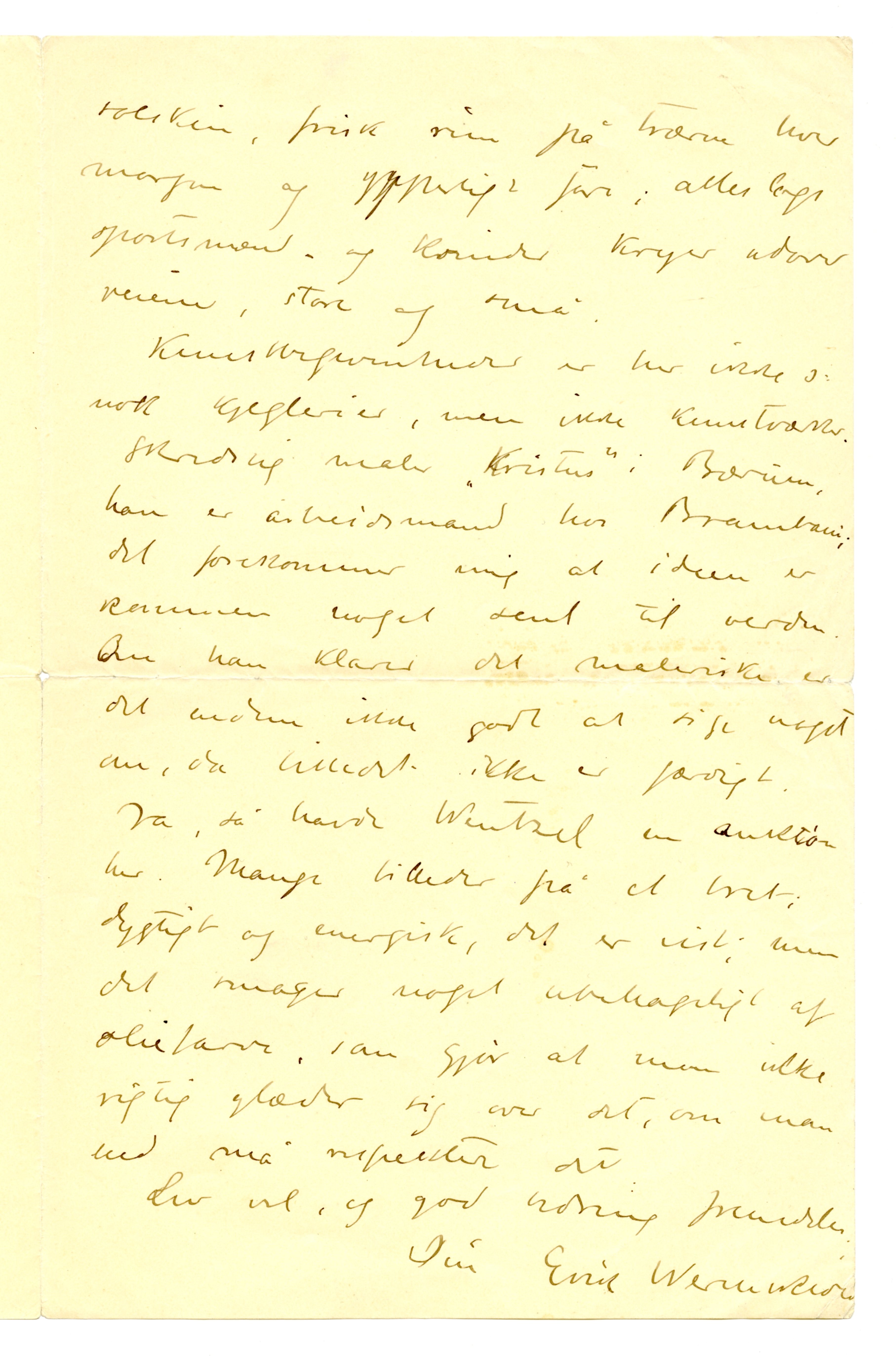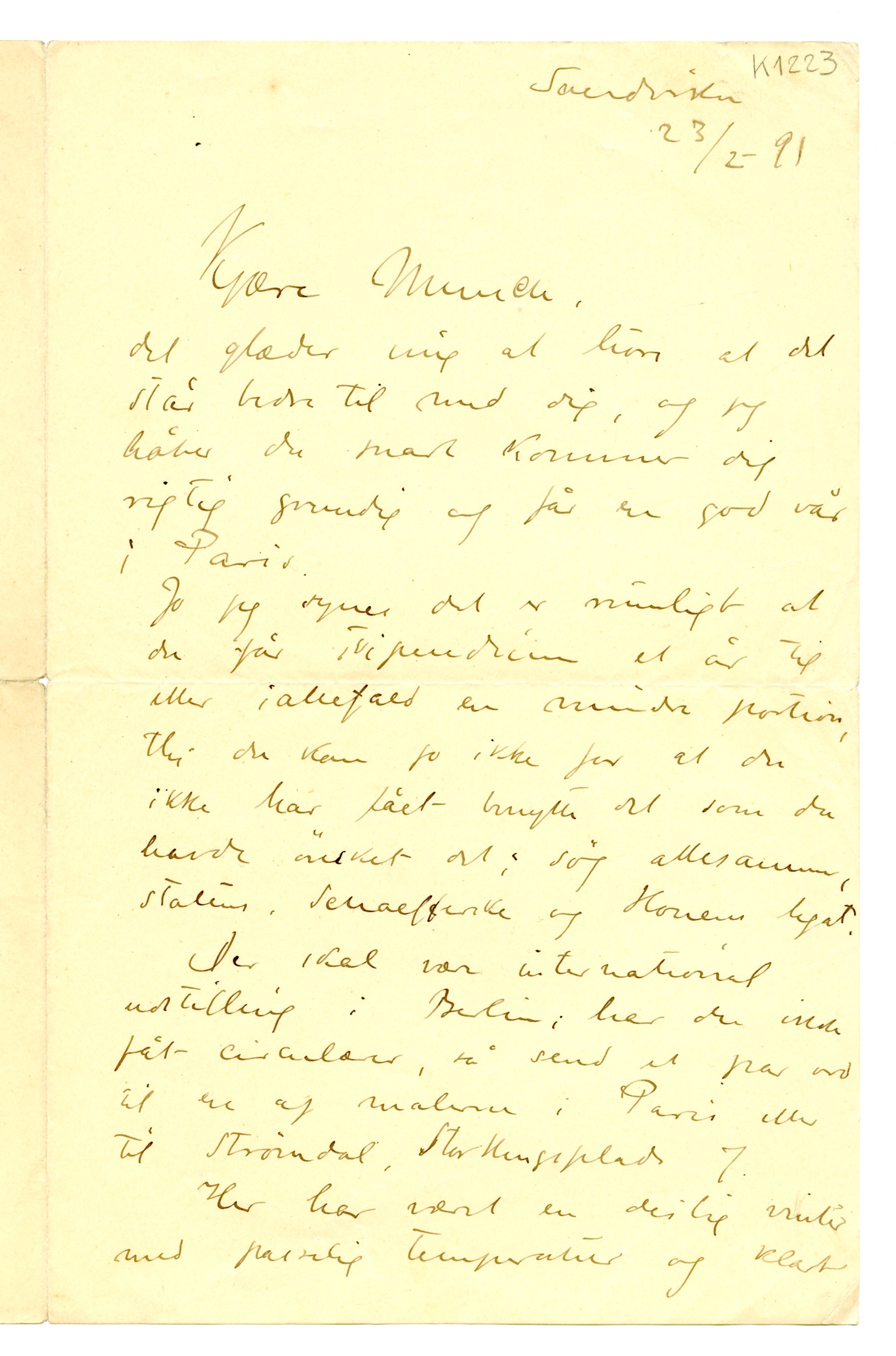 MM K 1223, Munchmuseet. Datert 23.02.1891. Brev fra Erik Werenskiold.