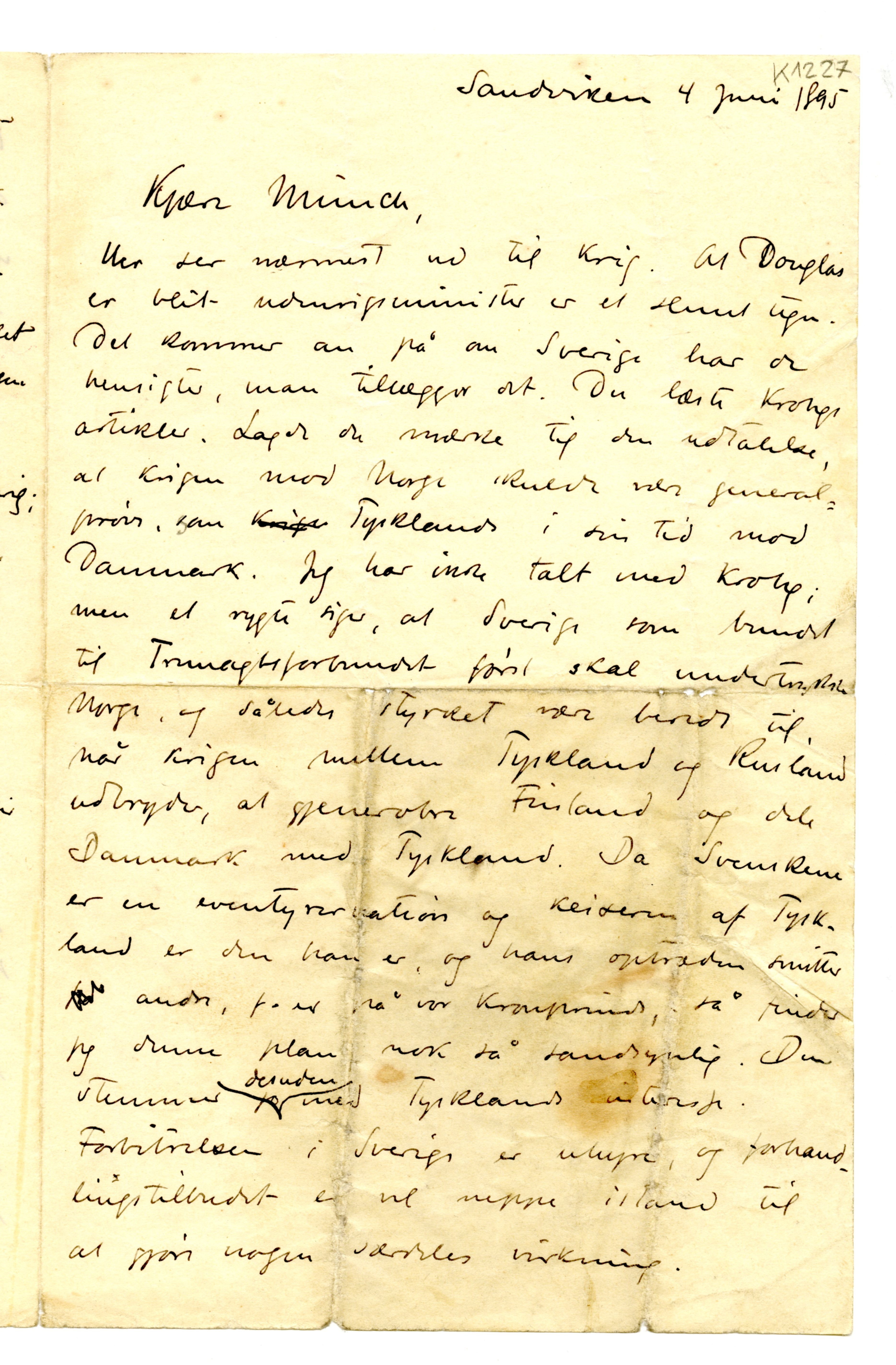 MM K 1227, Munchmuseet. Datert 04.06.1895. Brev fra Erik Werenskiold.