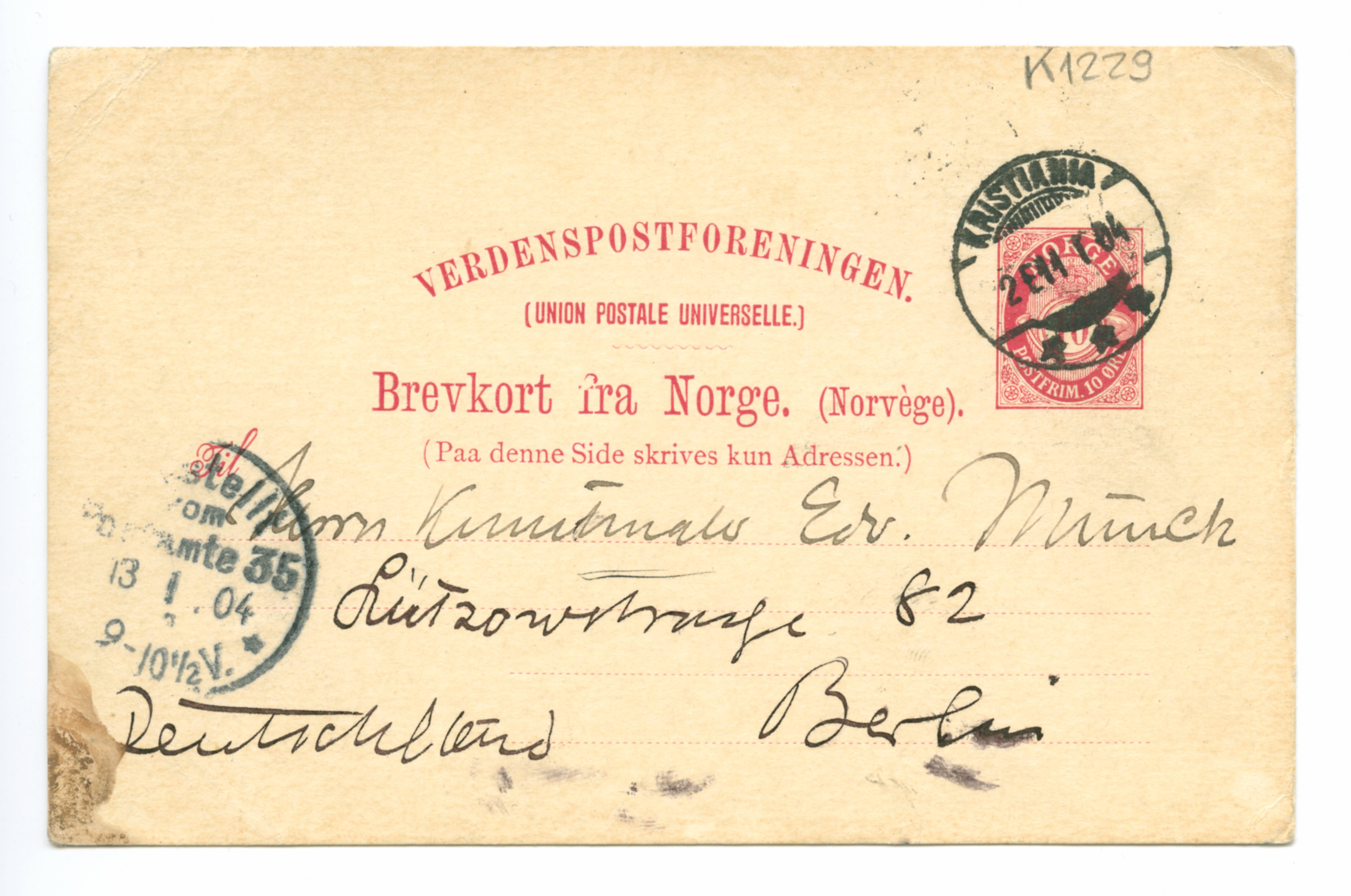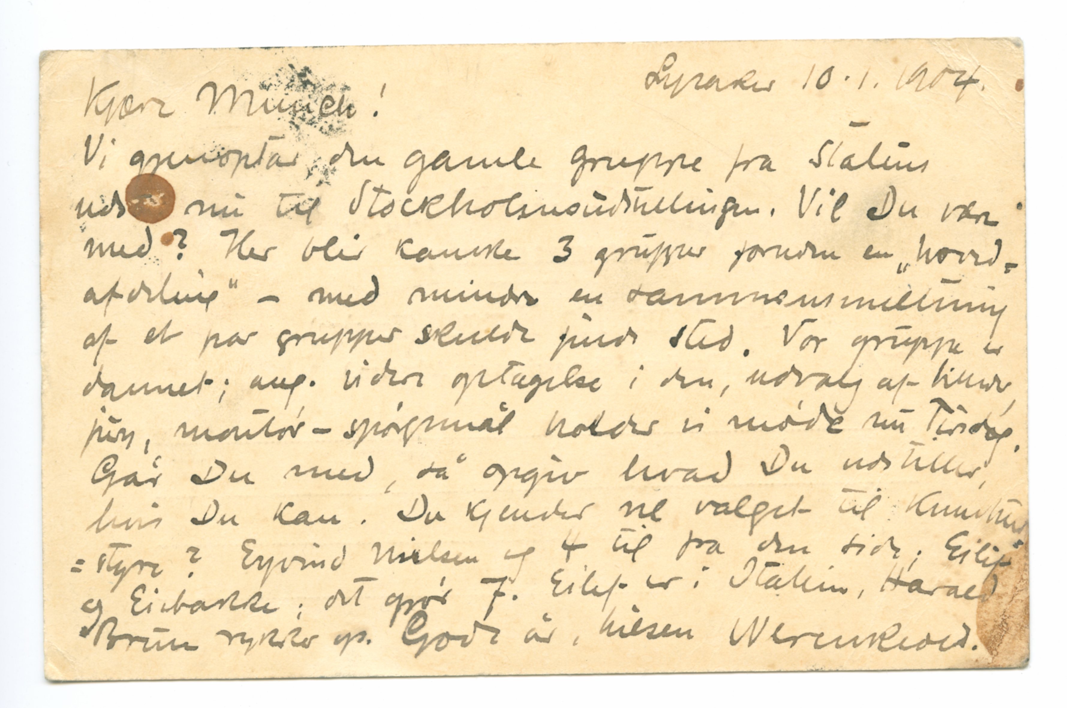 MM K 1229, Munchmuseet. Datert 10.01.1904. Brev fra Erik Werenskiold.
