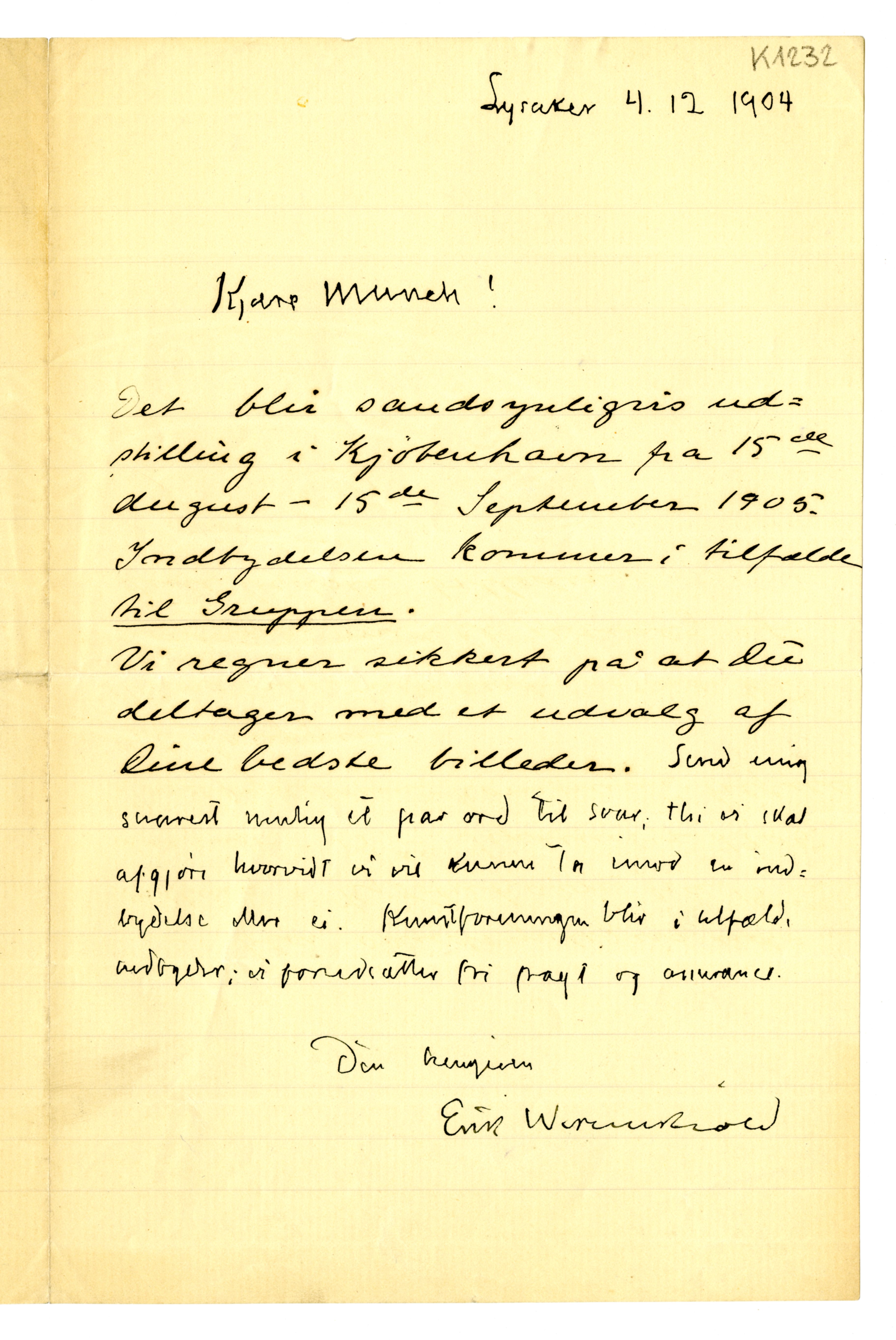 MM K 1232, Munchmuseet. Datert 04.12.1904. Brev fra Erik Werenskiold.