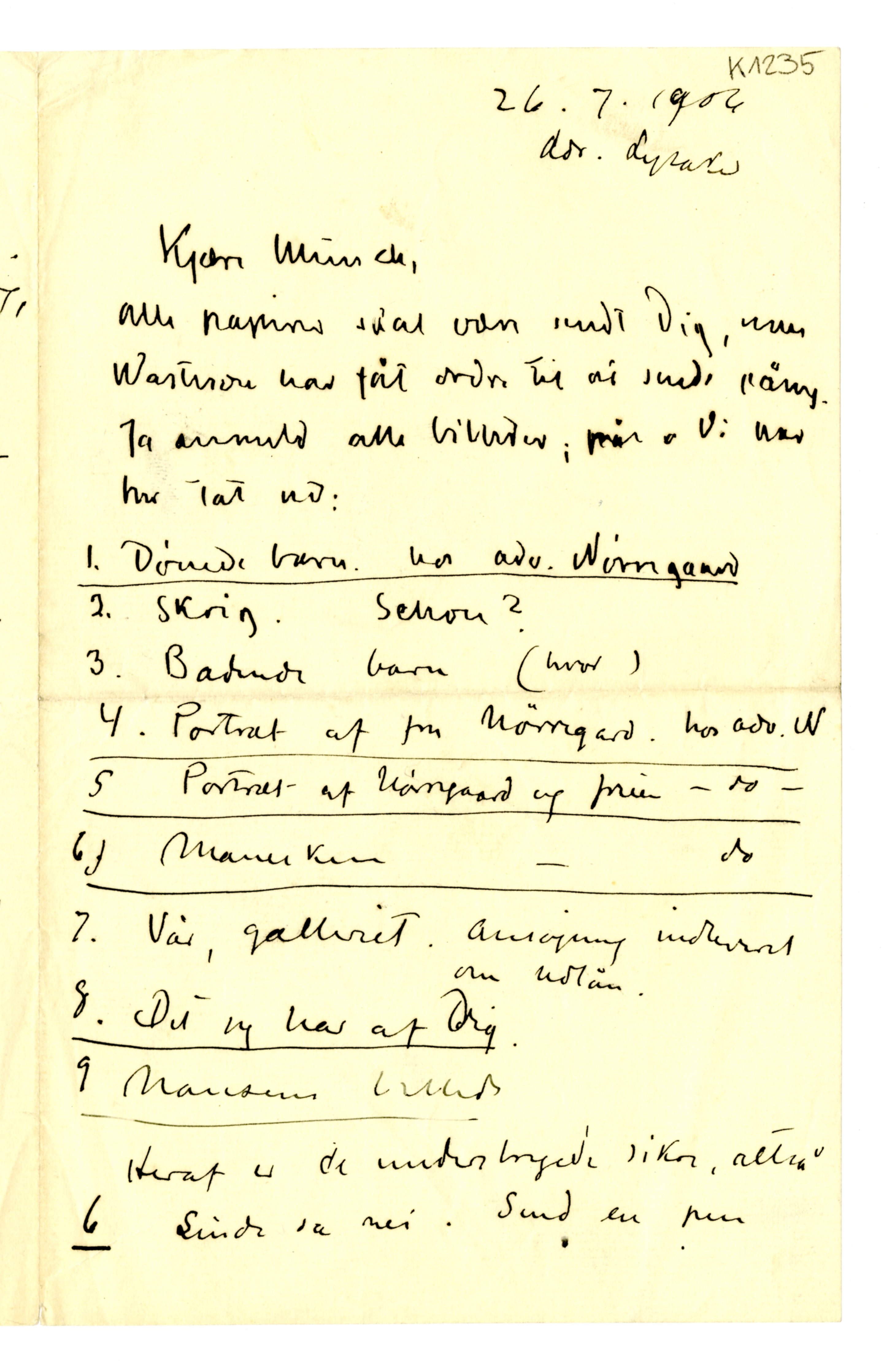 MM K 1235, Munchmuseet. Datert 26.07.1906. Brev fra Erik Werenskiold.