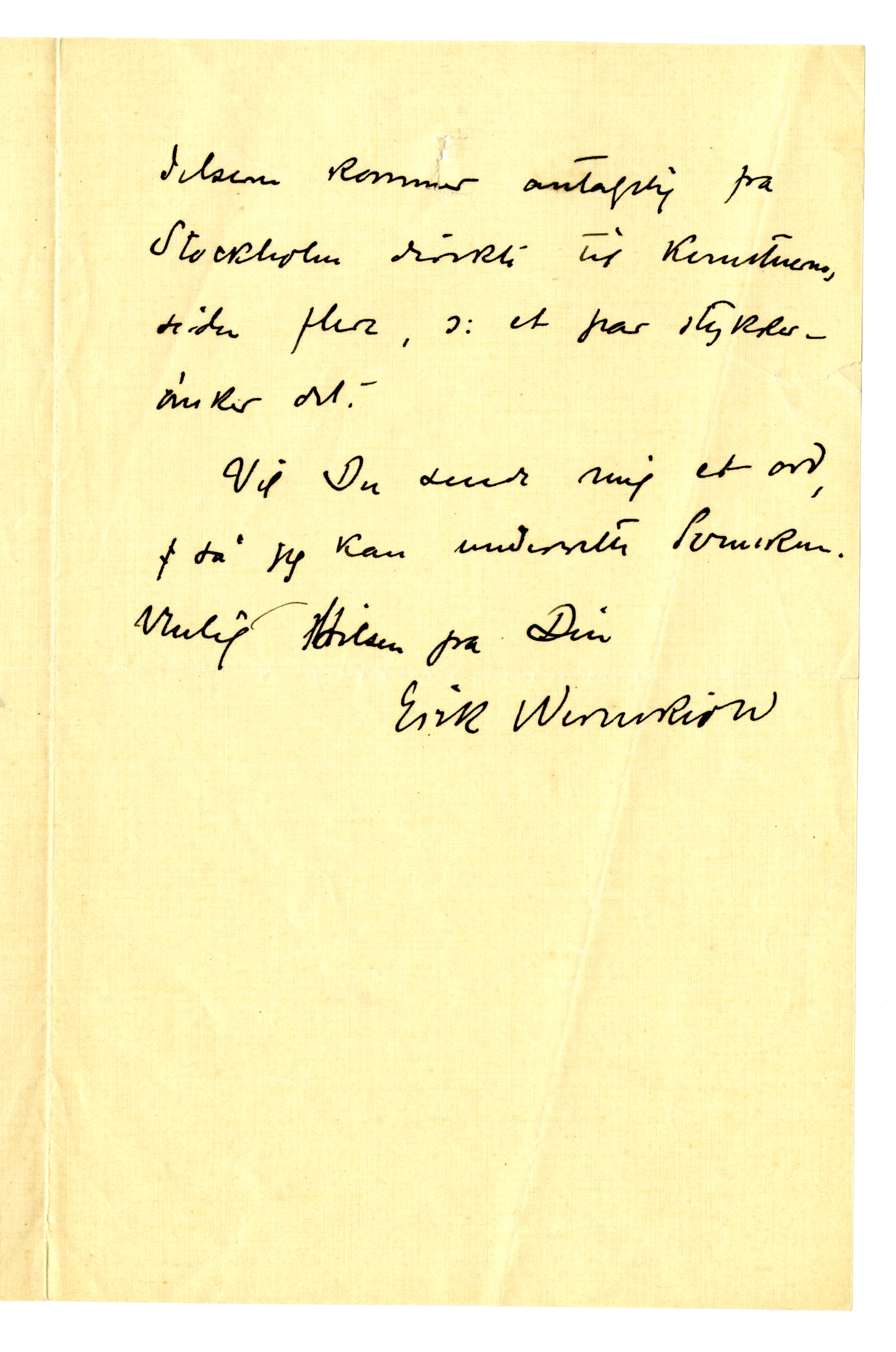 MM K 1247, Munchmuseet. Datert 20.12.1916. Brev fra Erik Werenskiold.