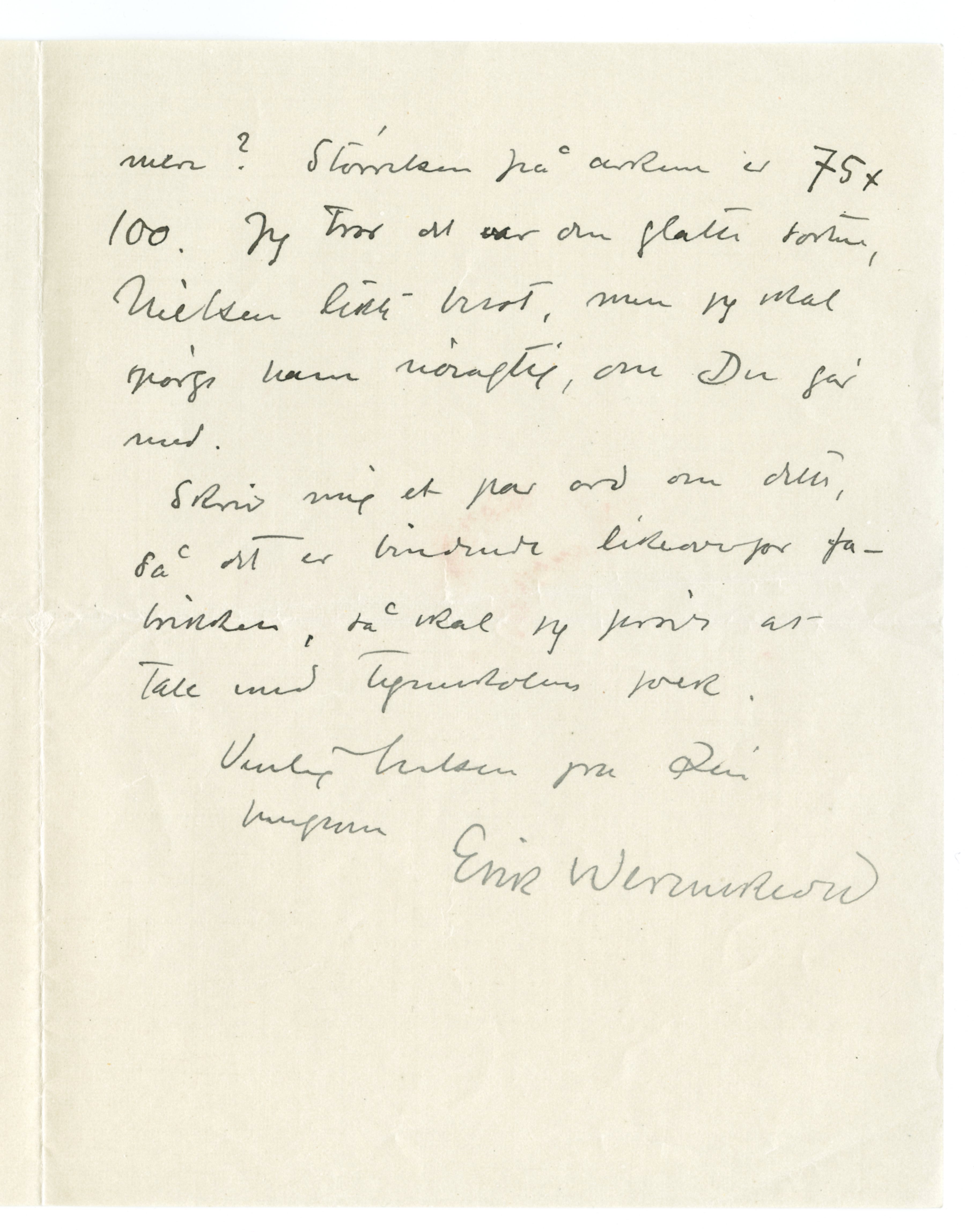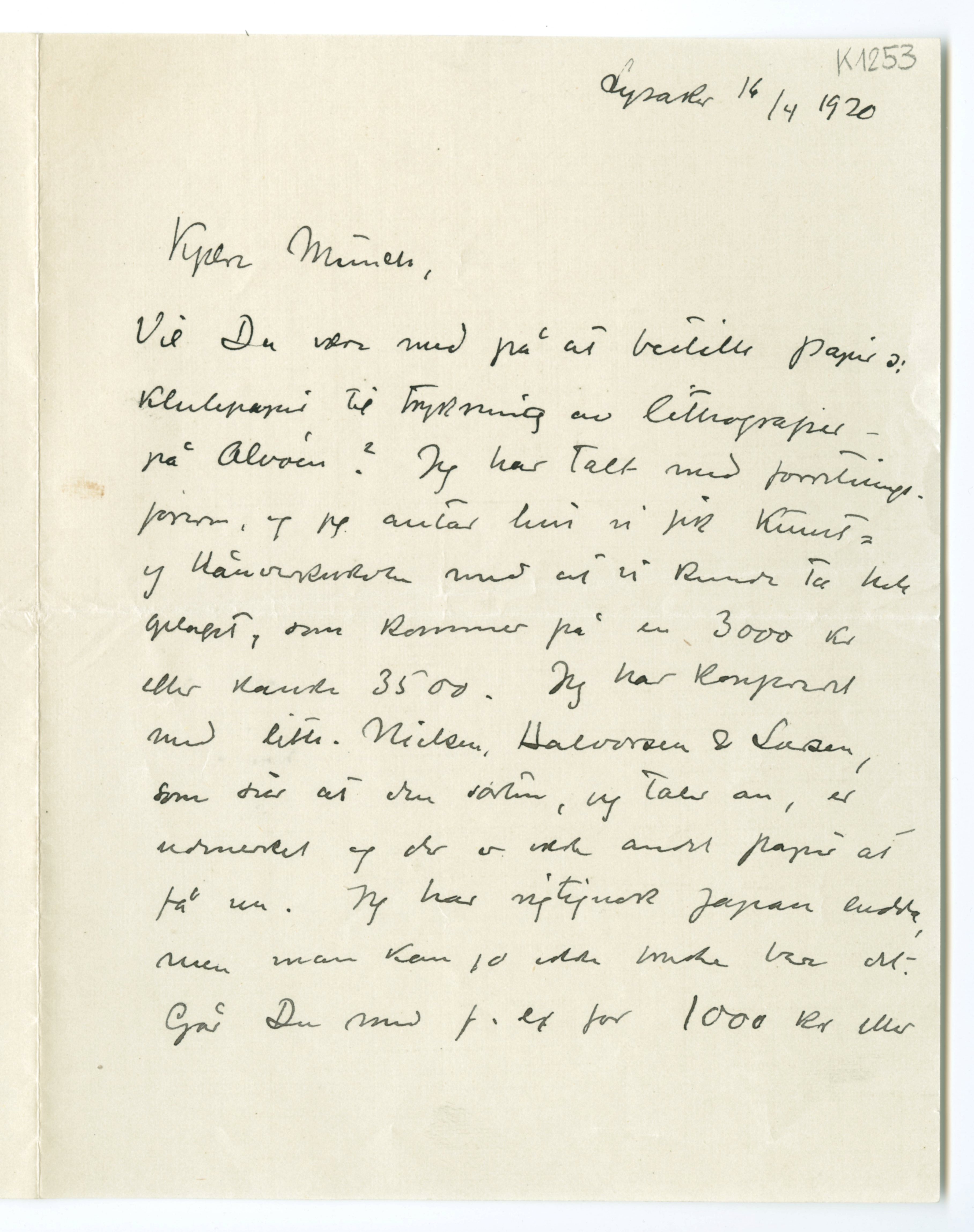 MM K 1253, Munchmuseet. Datert 16.04.1920. Brev fra Erik Werenskiold.