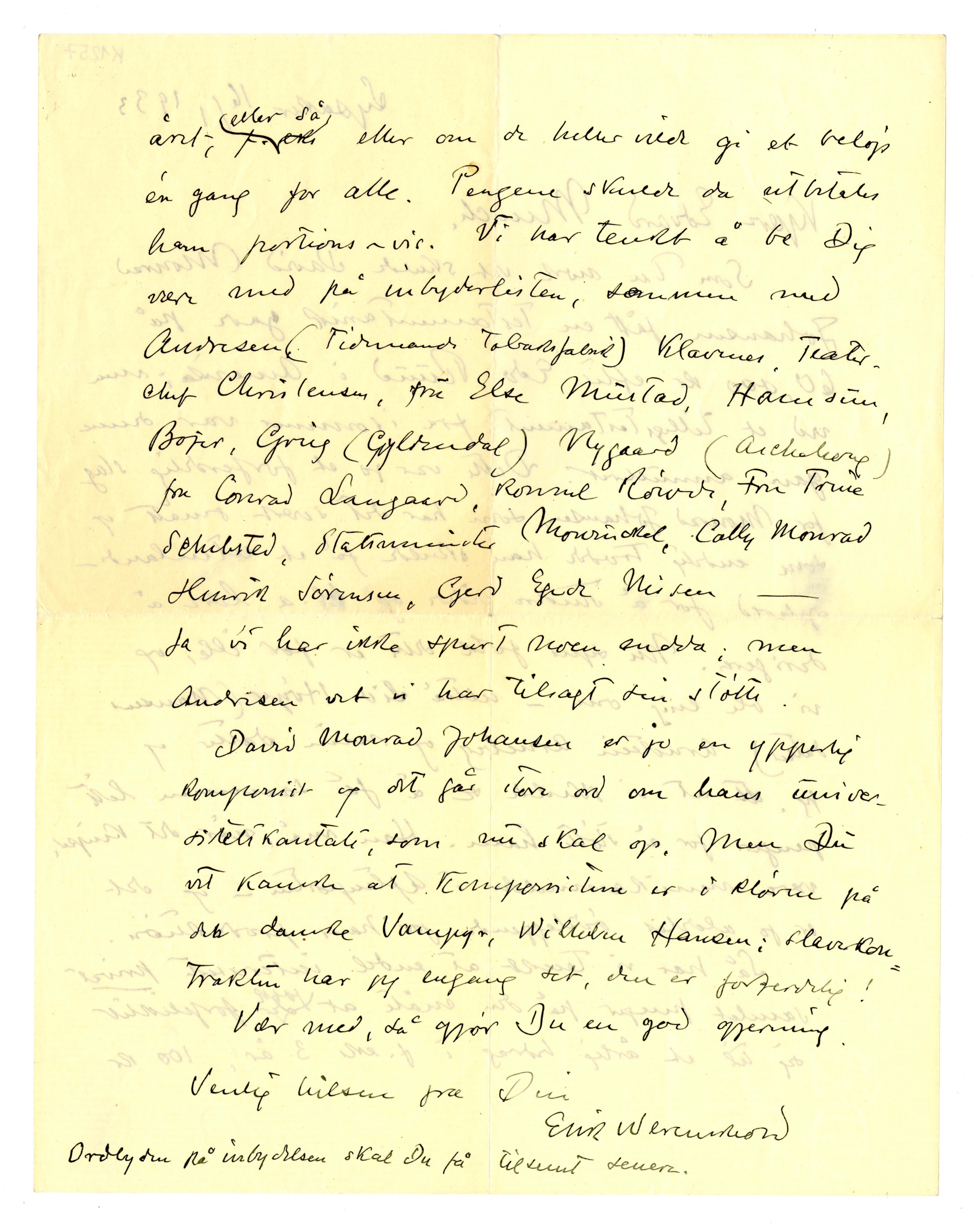 MM K 1257, Munchmuseet. Datert 16.01.1933. Brev fra Erik Werenskiold.