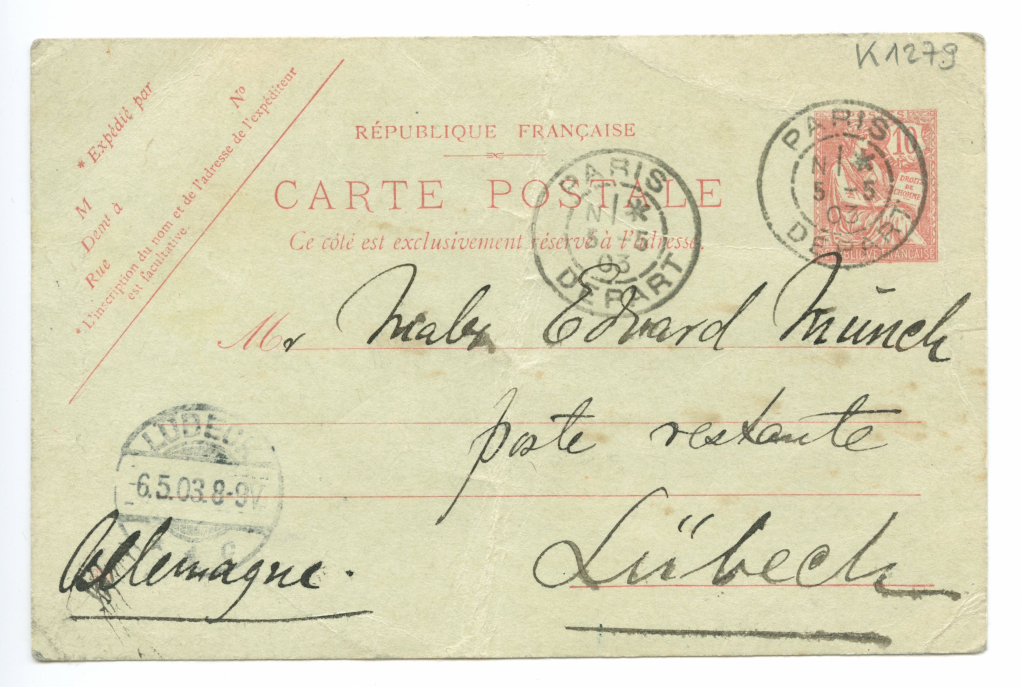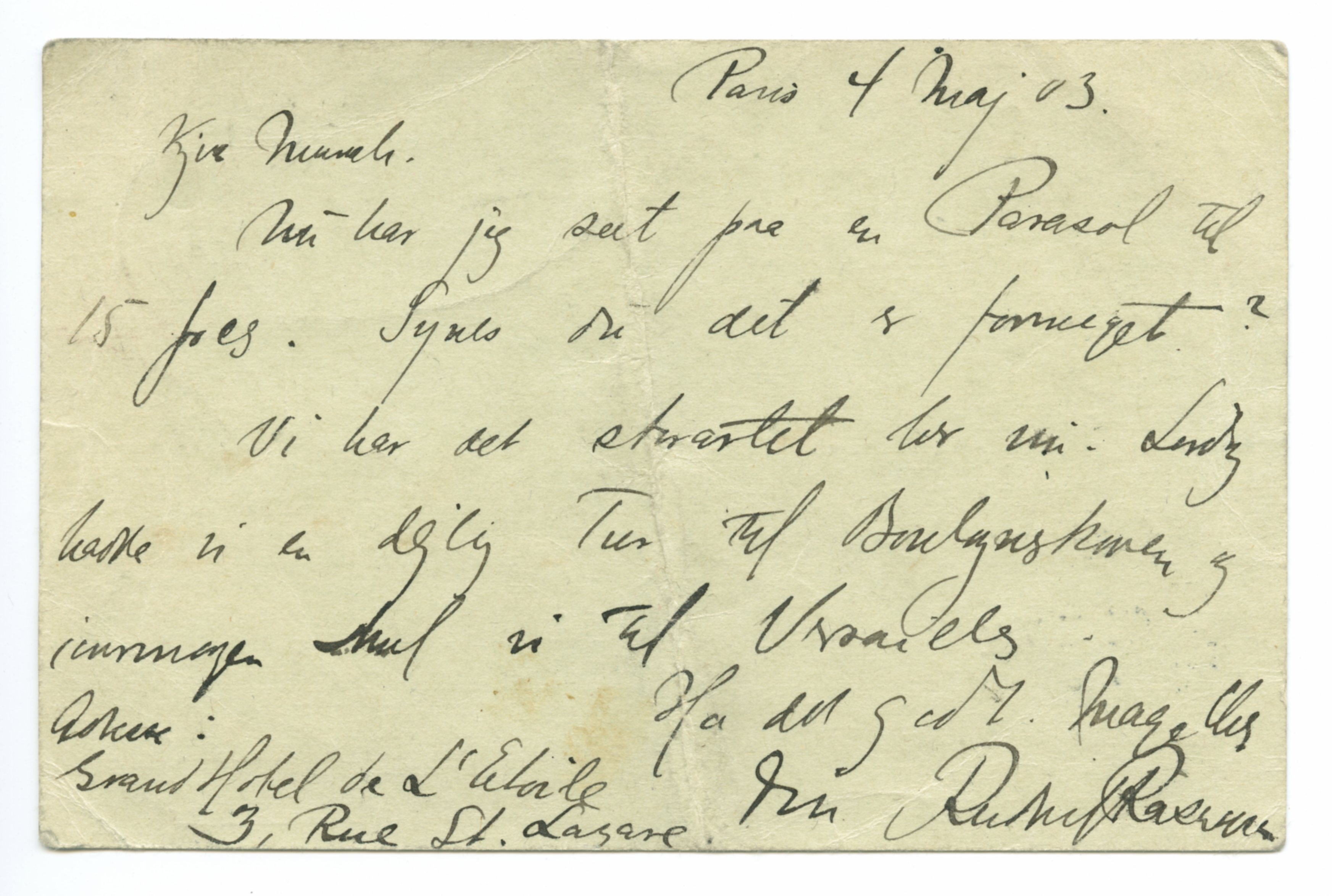 MM K 1279, Munchmuseet. Datert 04.05.1903. Brev fra Rudolf Rasmussen.