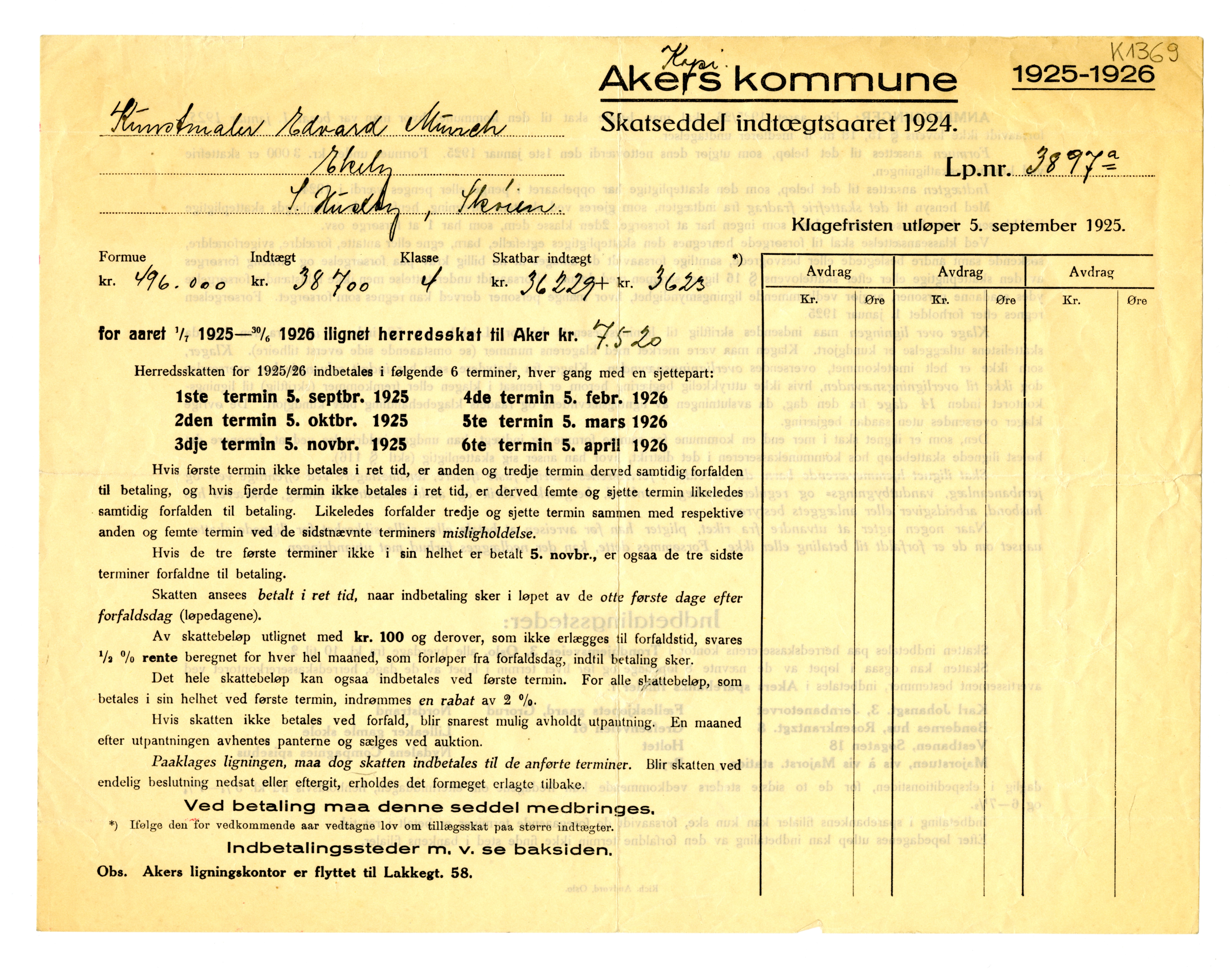MM K 1369, Munchmuseet. Ikke datert. Brev fra Akers kommune.