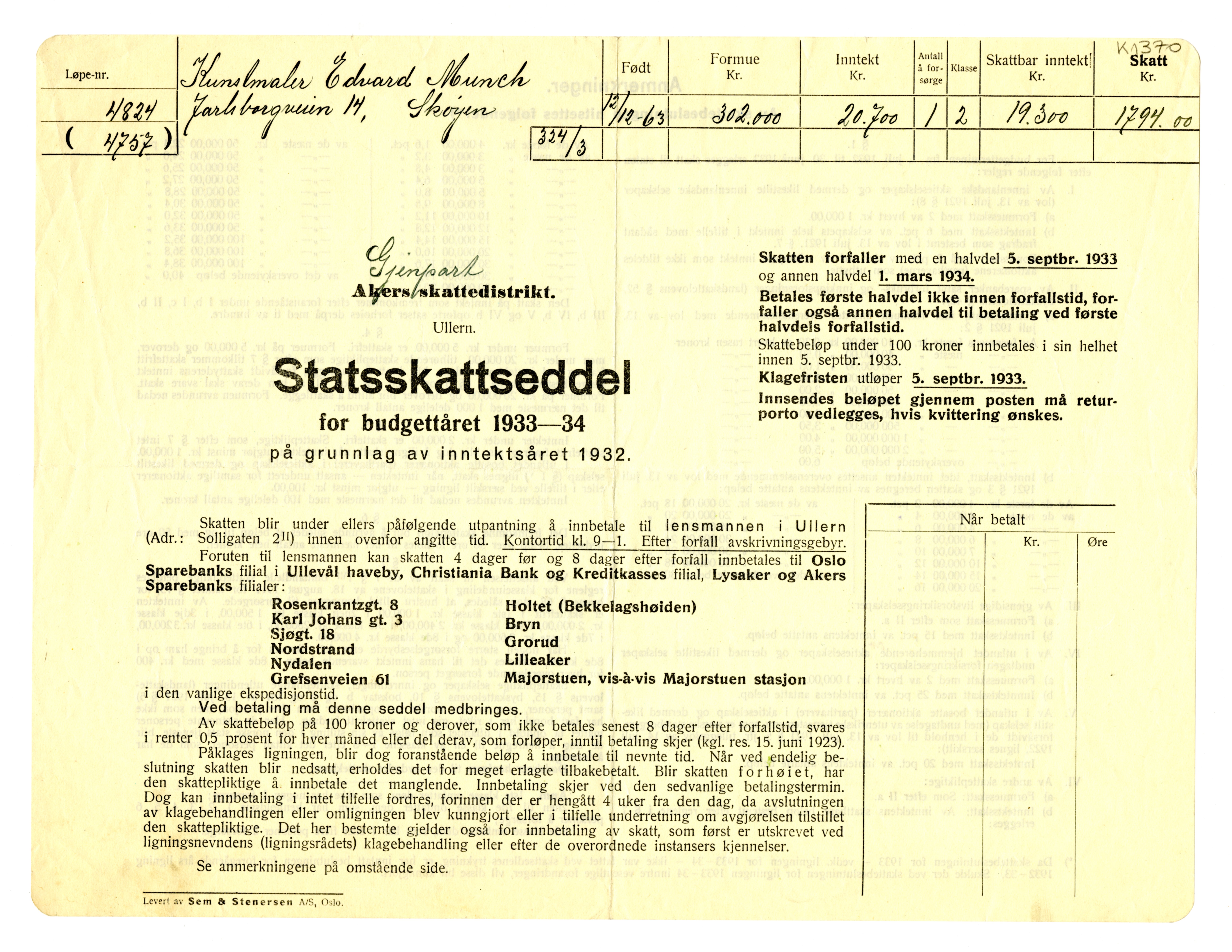 MM K 1370, Munchmuseet. Ikke datert. Brev fra Akers skattedistrikt.