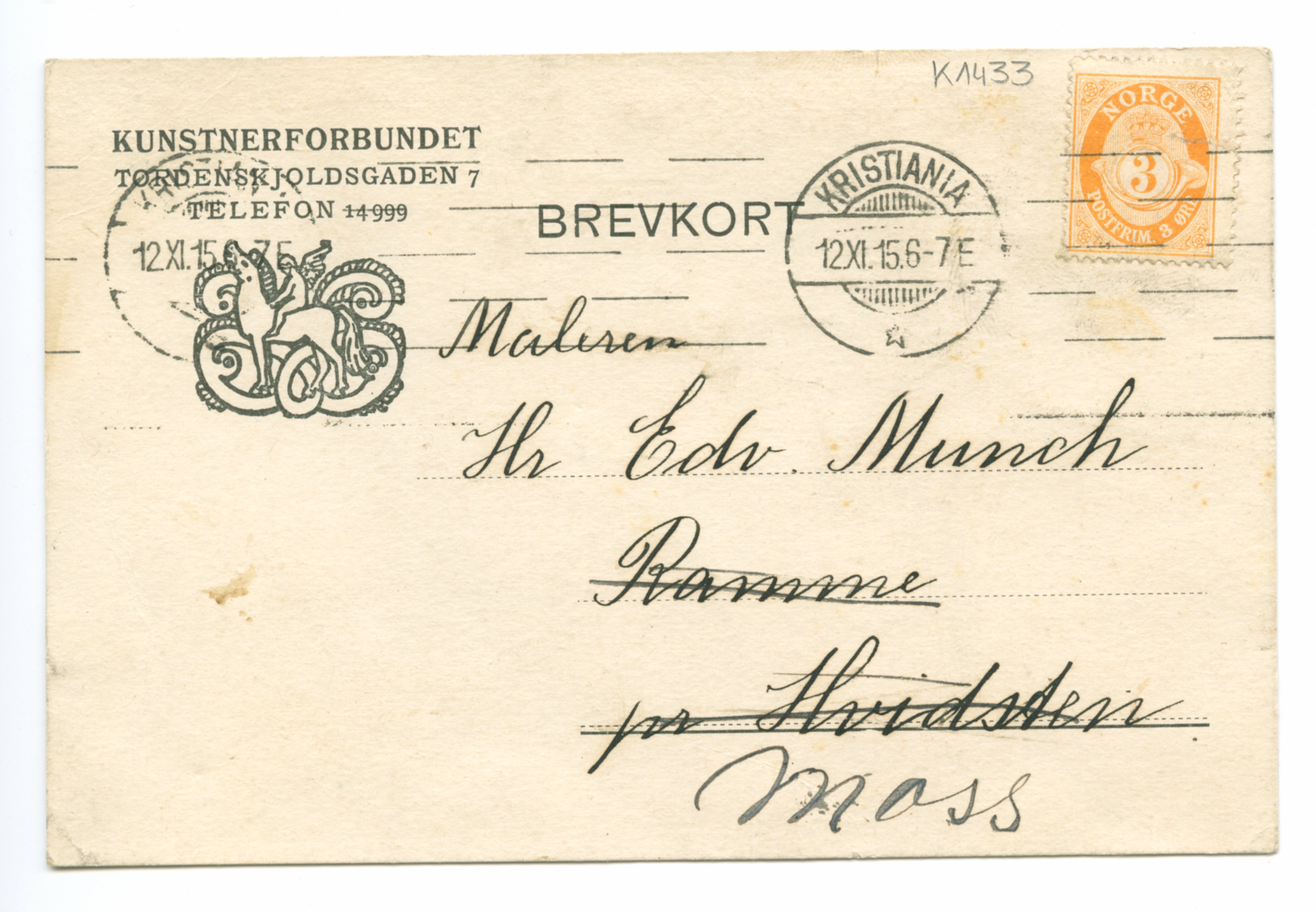 MM K 1433, Munchmuseet. Datert 11.11.1915. Brev fra Kunstnerforbundet.