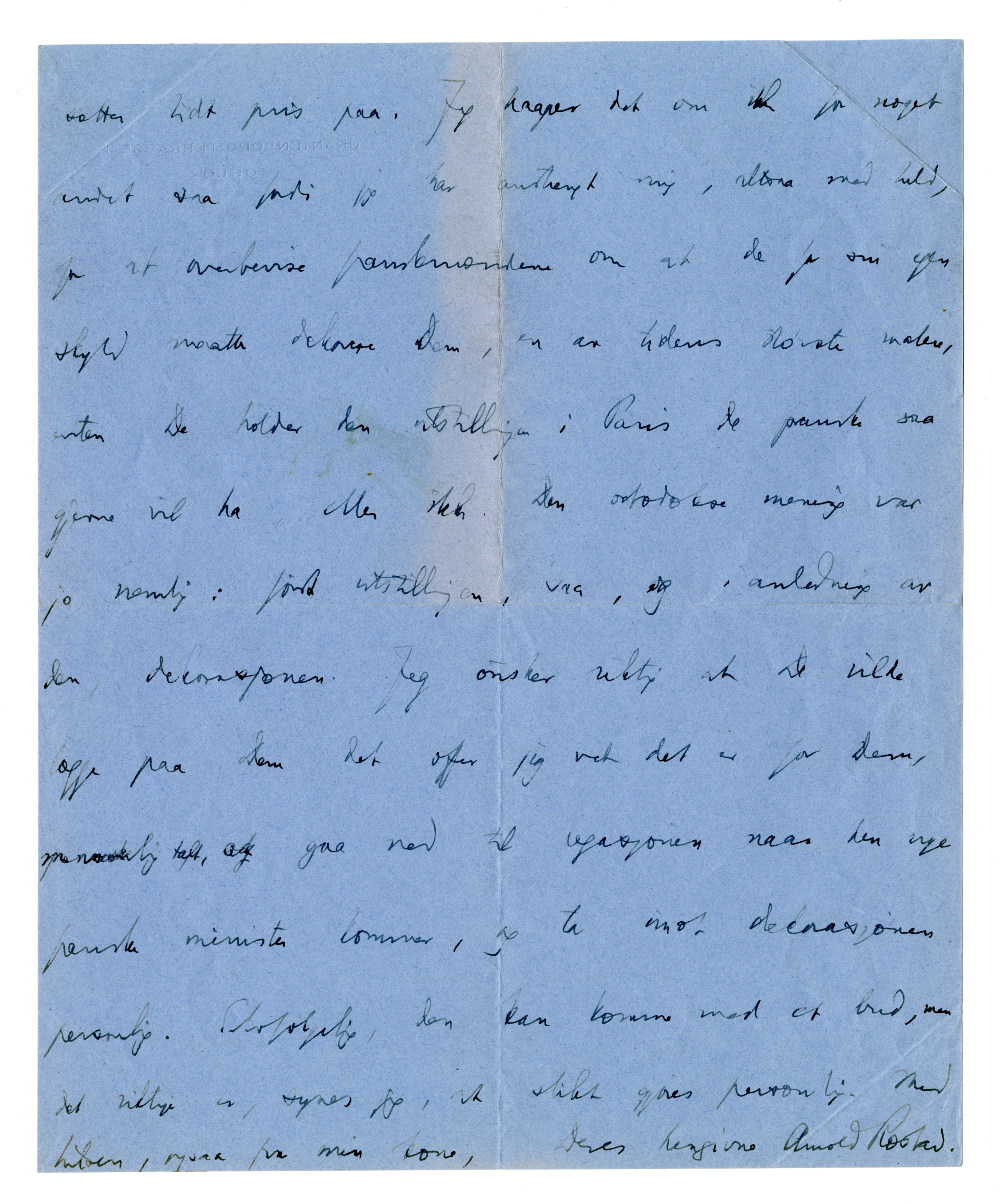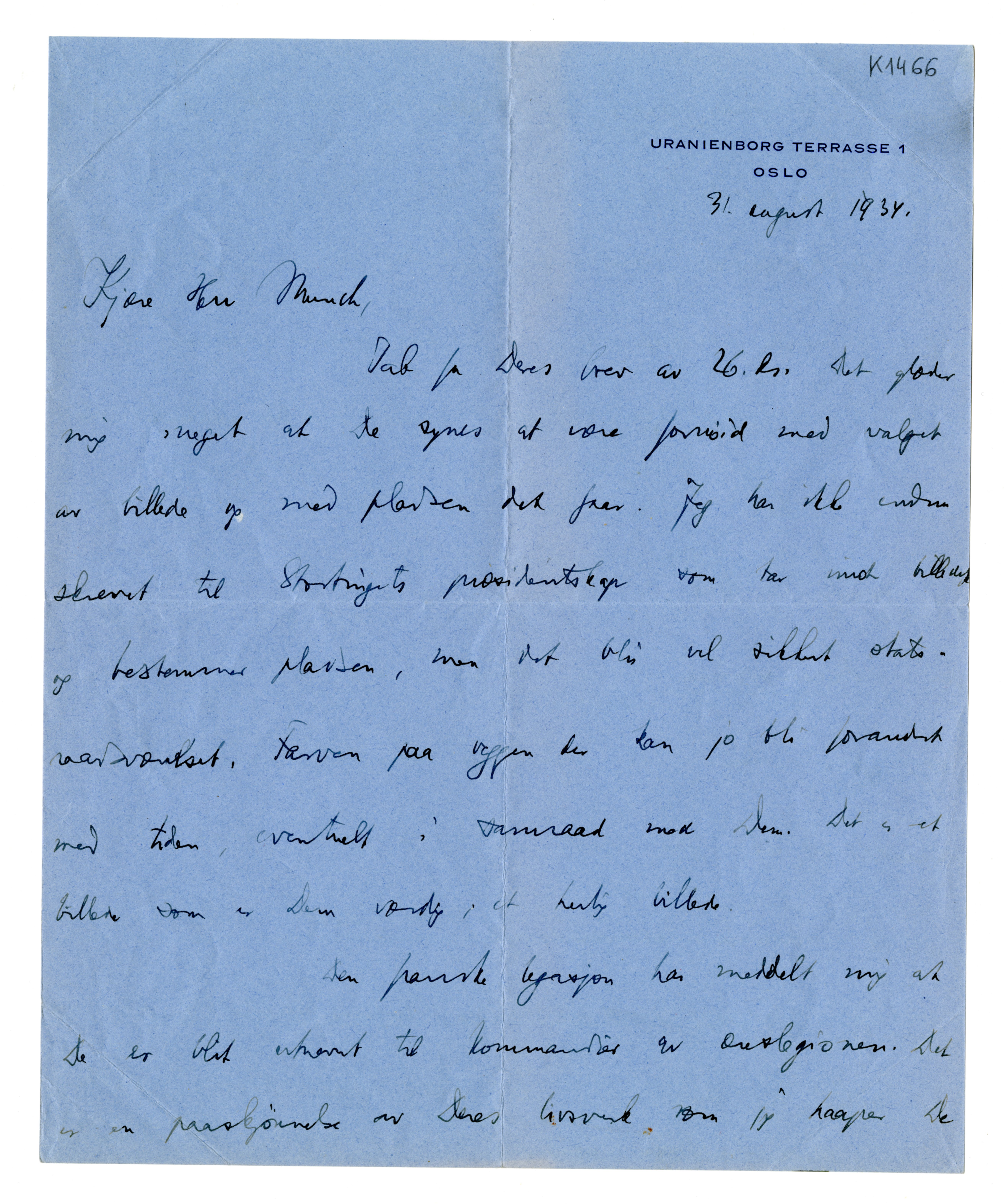 MM K 1466, Munchmuseet. Datert 31.08.1934. Brev fra Arnold Ræstad, Stortinget.