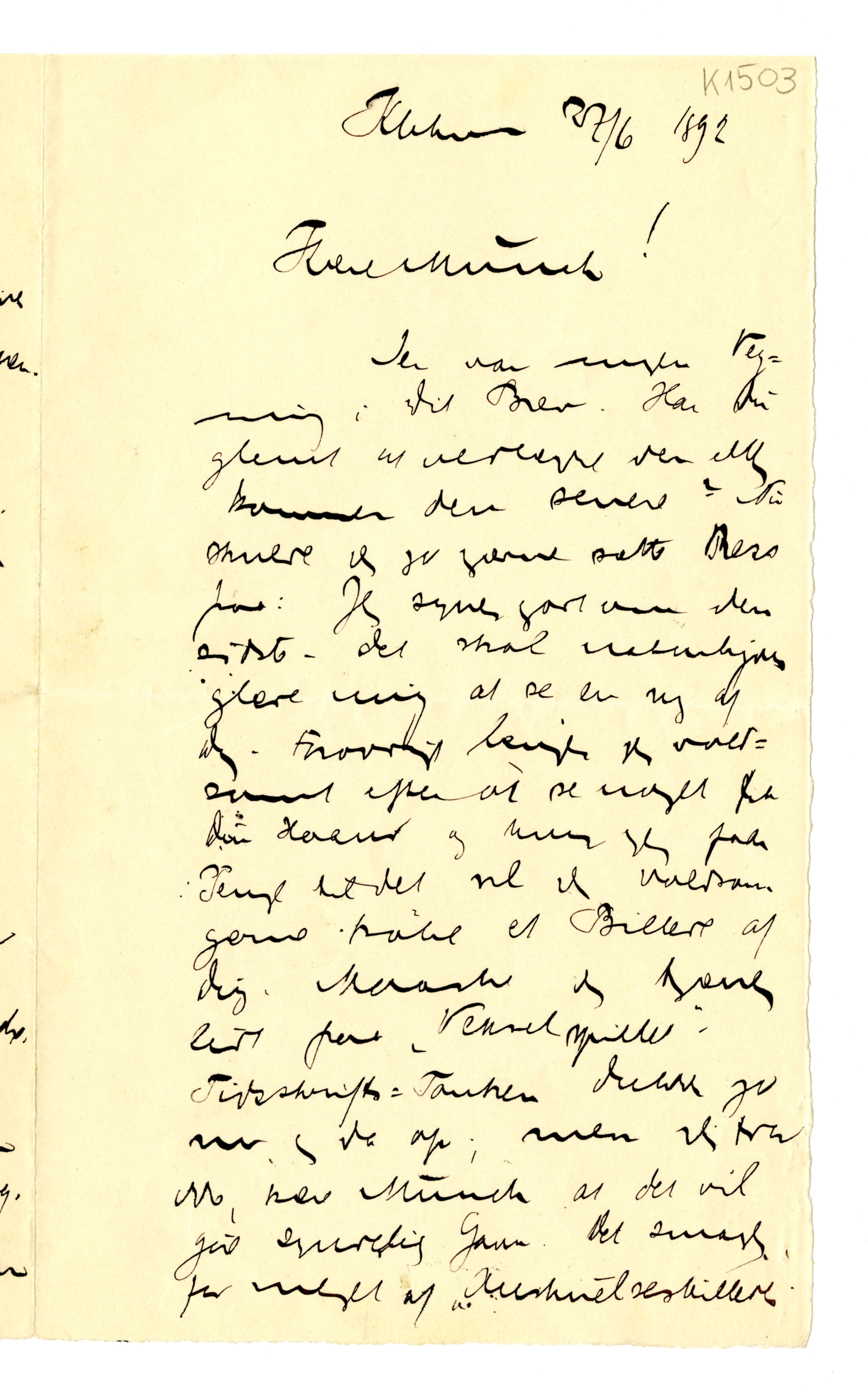 MM K 1503, Munchmuseet. Datert 27.06.1892. Brev fra Emanuel Goldstein.