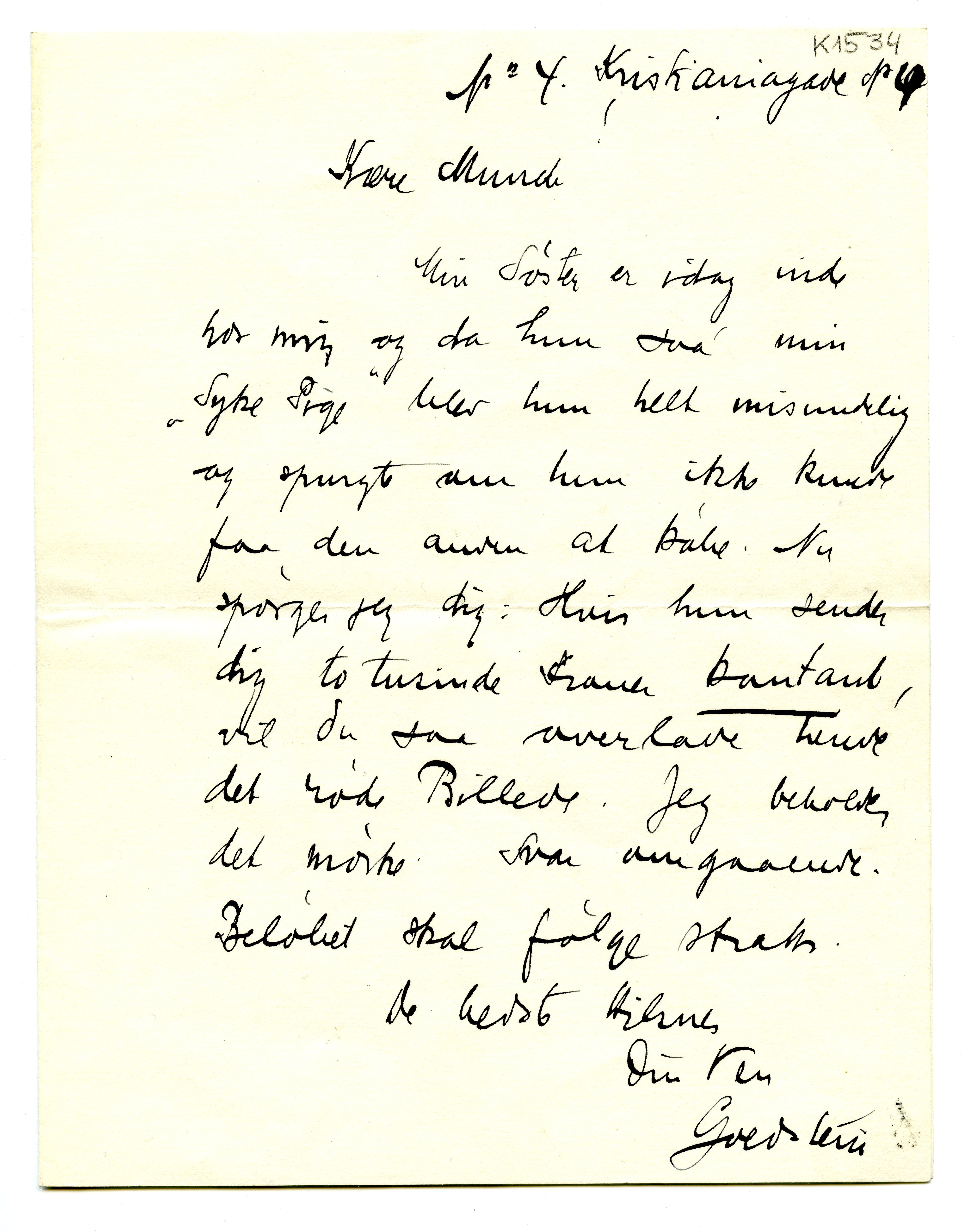 MM K 1534, Munchmuseet. Ikke datert. Brev fra Emanuel Goldstein.