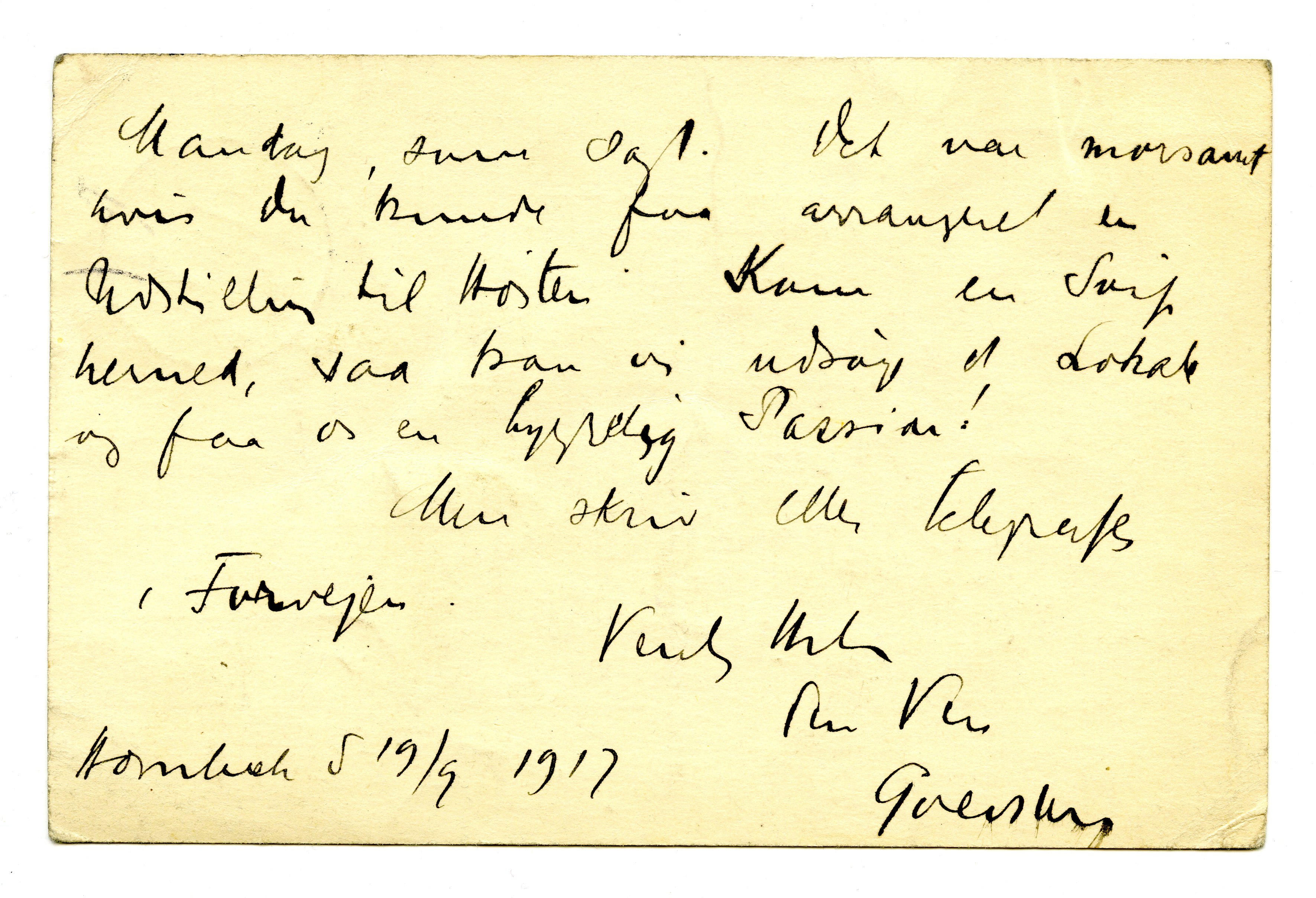 MM K 1539, Munchmuseet. Datert 19.09.1917. Brev fra Emanuel Goldstein.