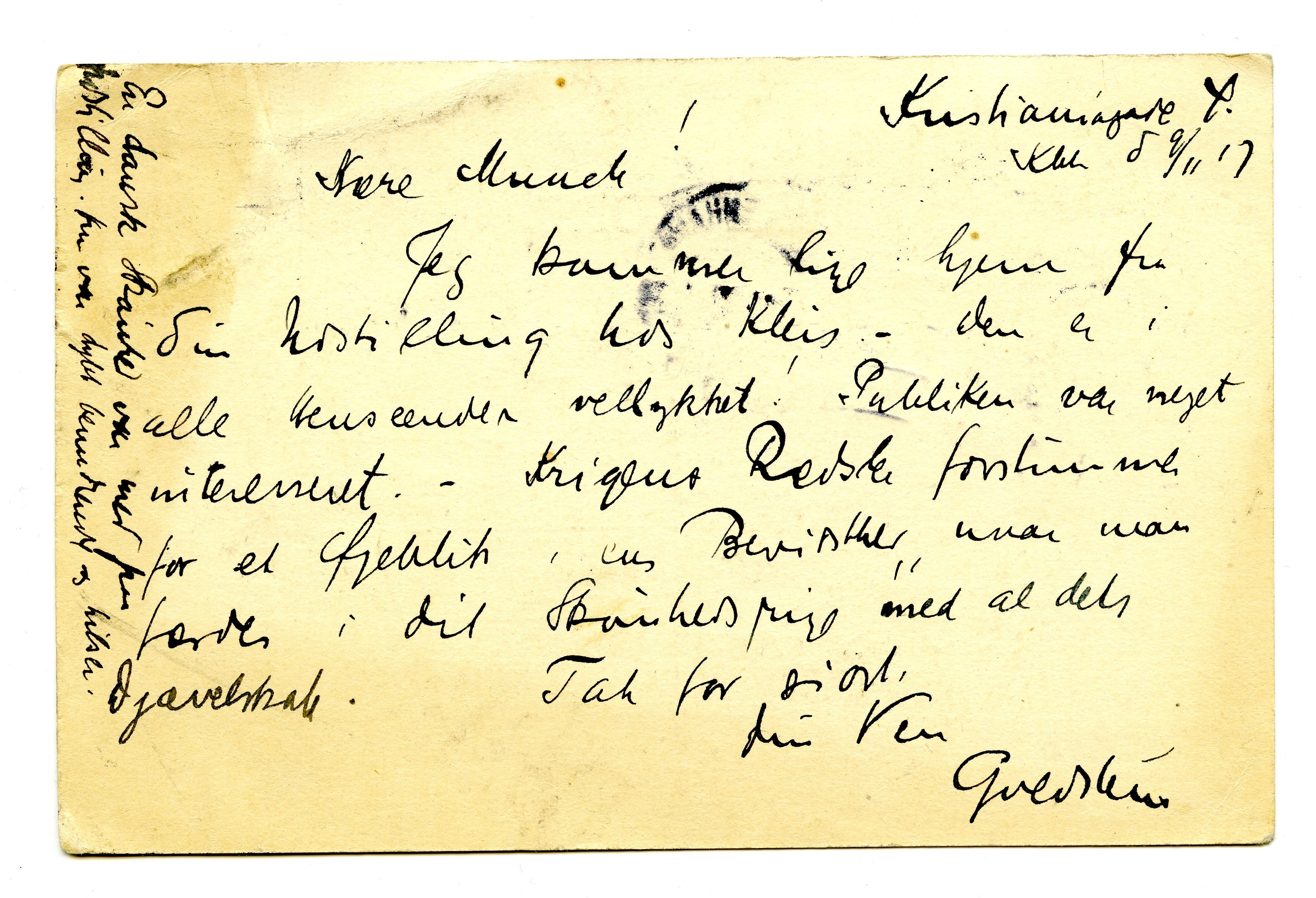 MM K 1540, Munchmuseet. Datert 09.11.1917. Brev fra Emanuel Goldstein.
