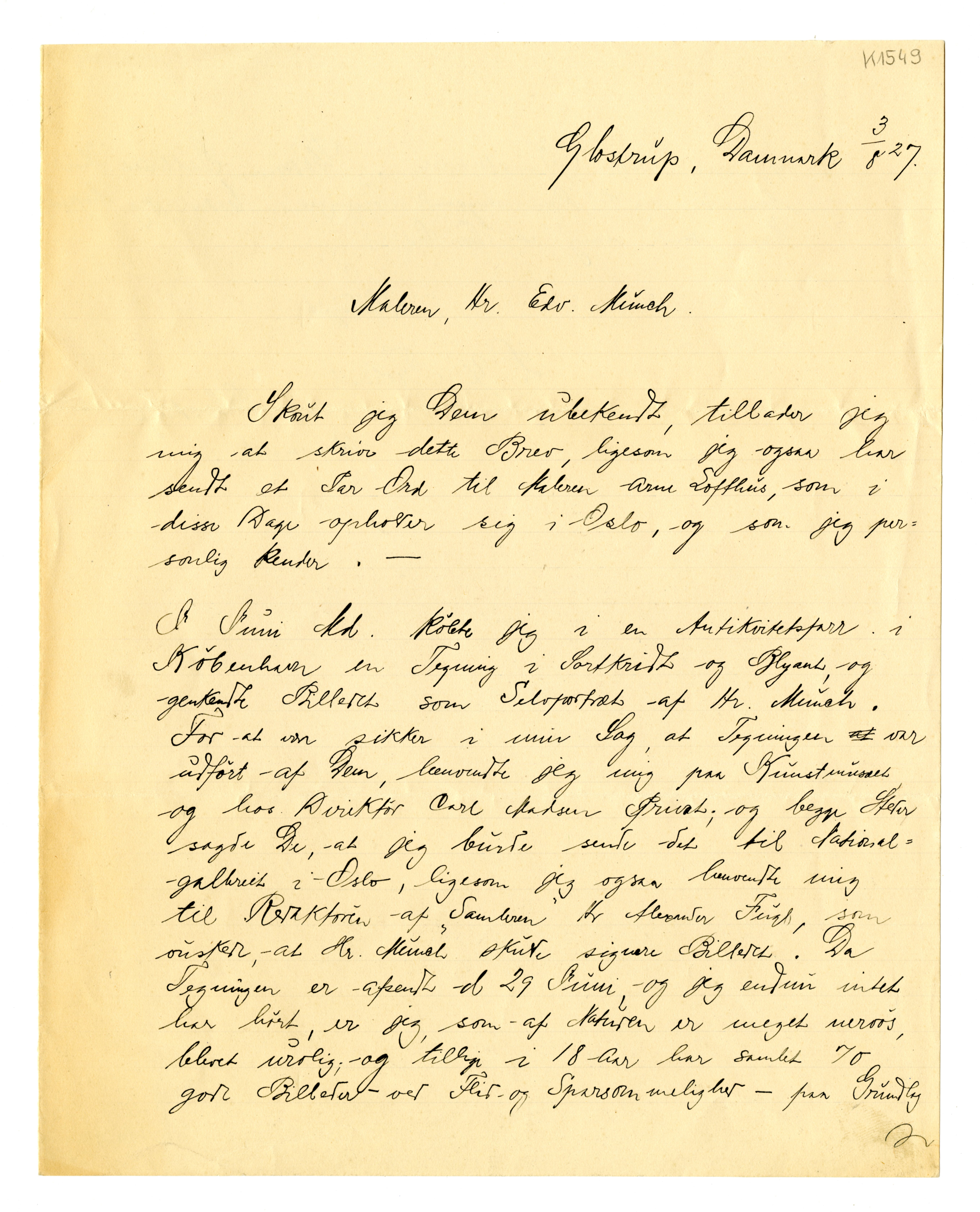 MM K 1549, Munchmuseet. Datert 03.08.1927. Brev fra L. Y. Frölund.