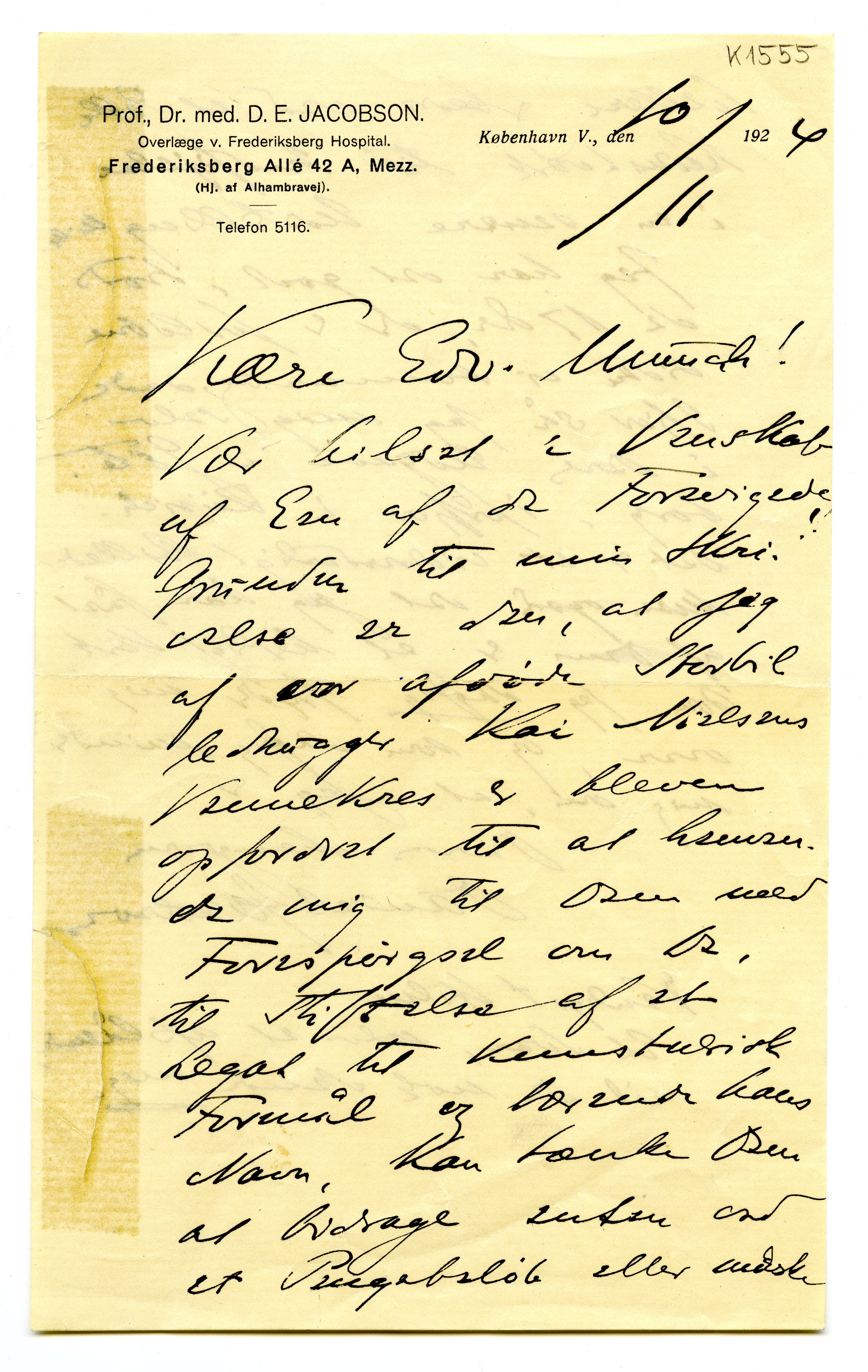 MM K 1555, Munchmuseet. Datert 10.11.1924. Brev fra Daniel Jacobson.