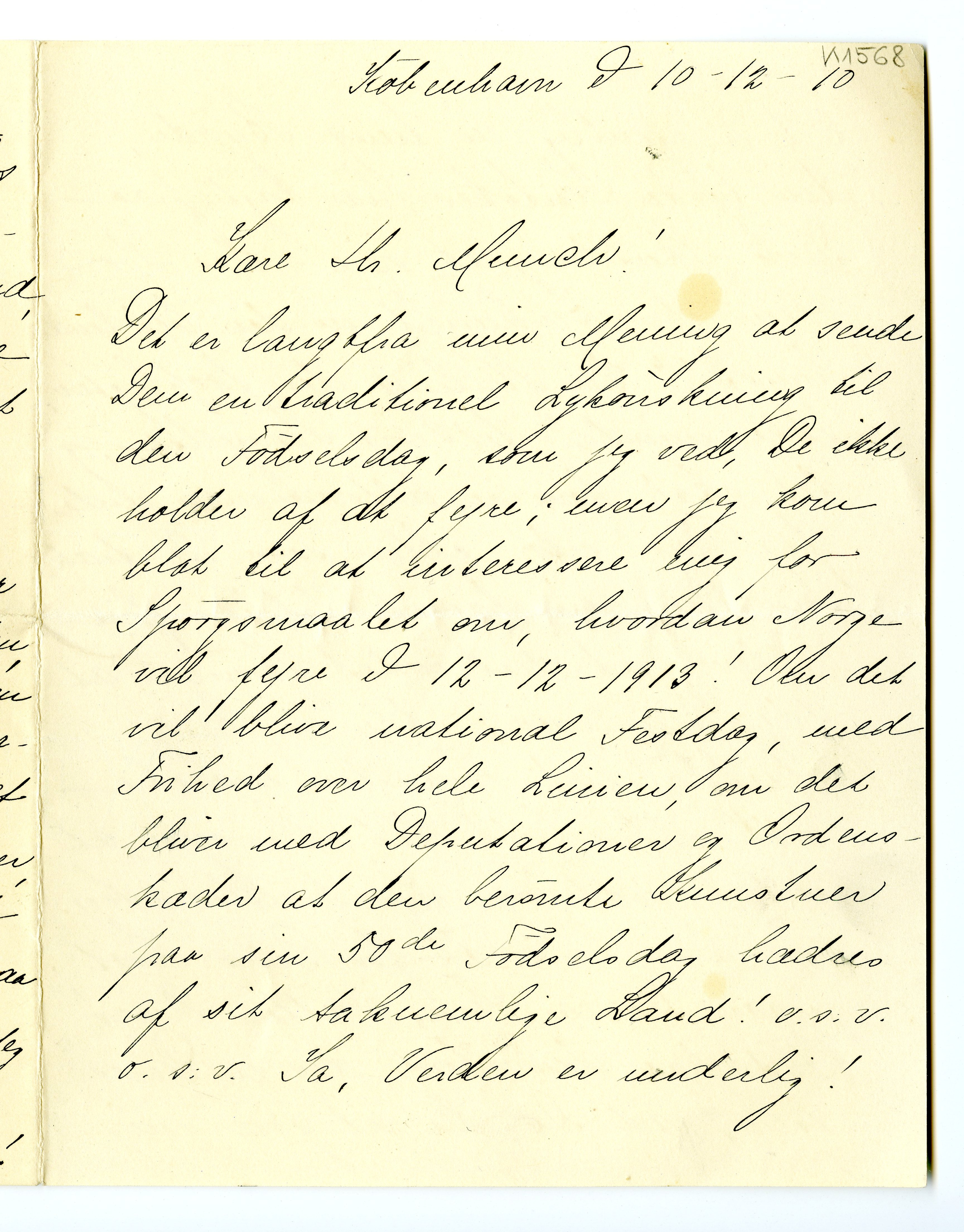 MM K 1568, Munchmuseet. Datert 10.12.1910. Brev fra Linke Jørgensen.
