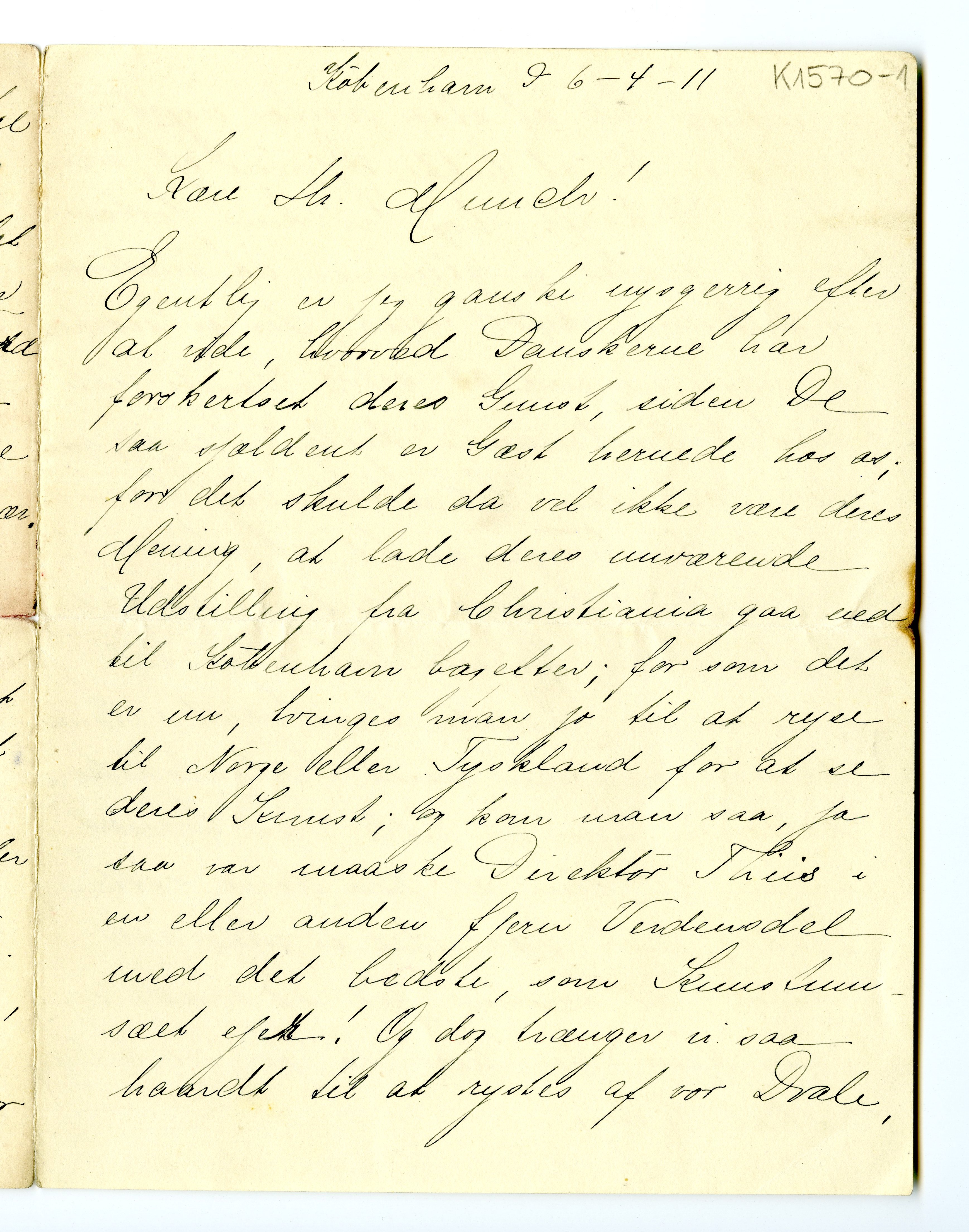 MM K 1570, Munchmuseet. Datert 06.04.1911. Brev fra Linke Jørgensen.