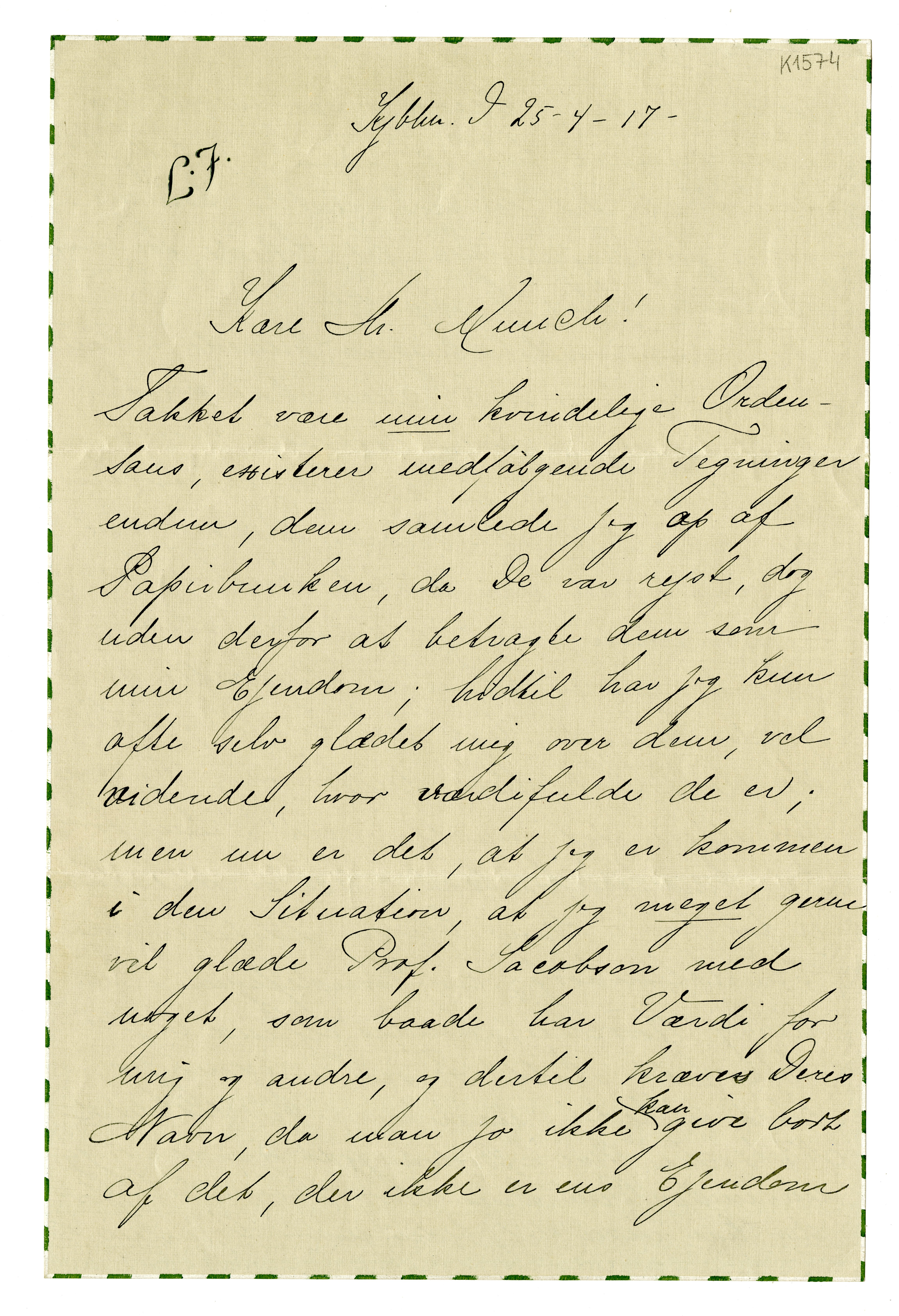 MM K 1574, Munchmuseet. Datert 25.04.1917. Brev fra Linke Jørgensen.