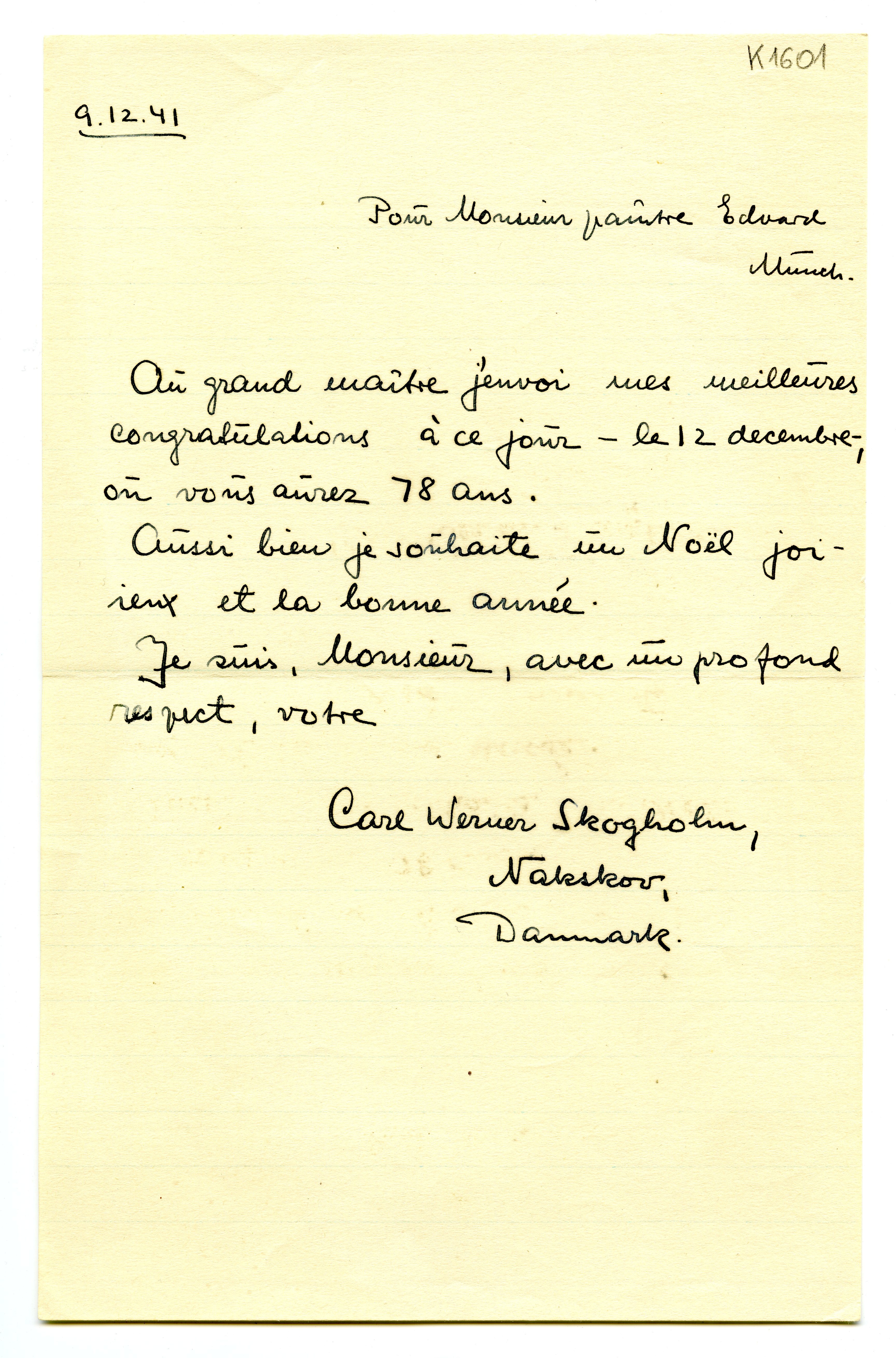 MM K 1601, Munchmuseet. Datert 09.12.1941. Brev fra Carl Werner Skogholm.